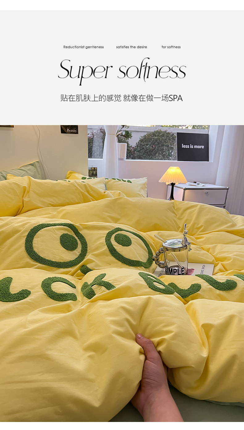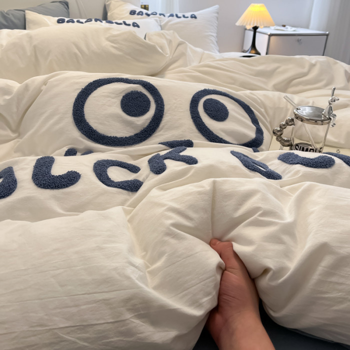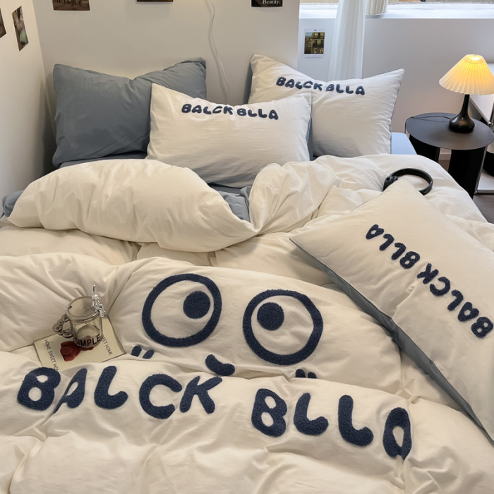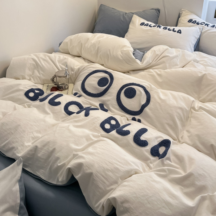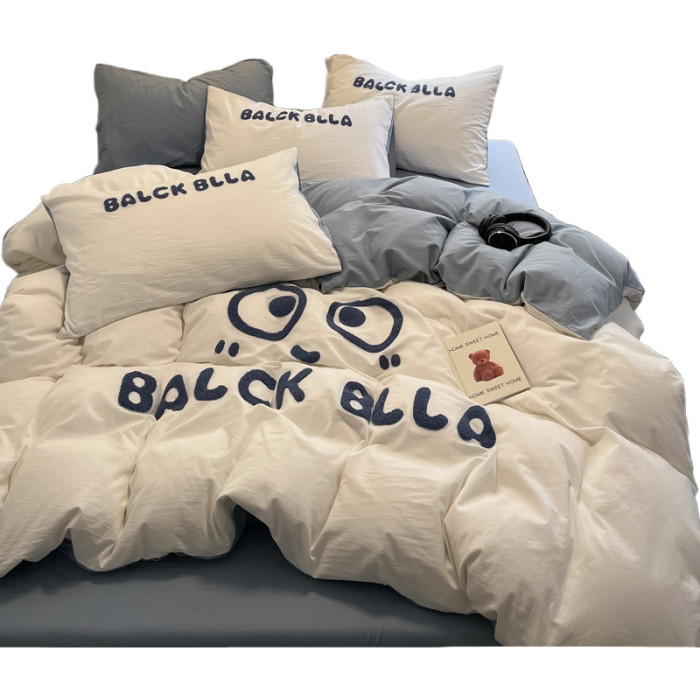 A類可愛煤球純棉四件套100全棉被套床單床包款單人宿捨三件套床品