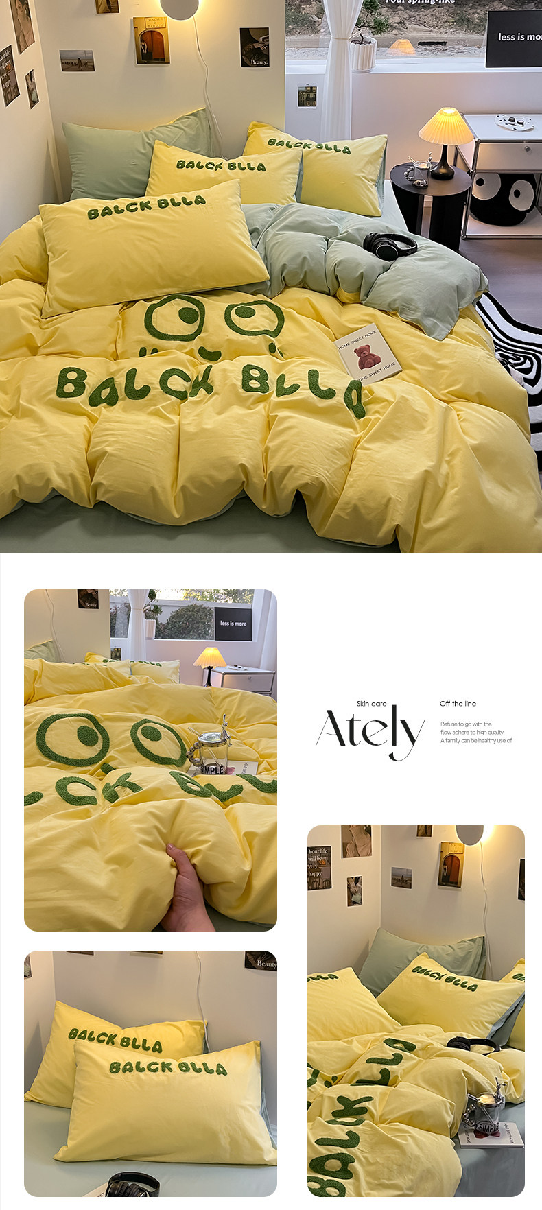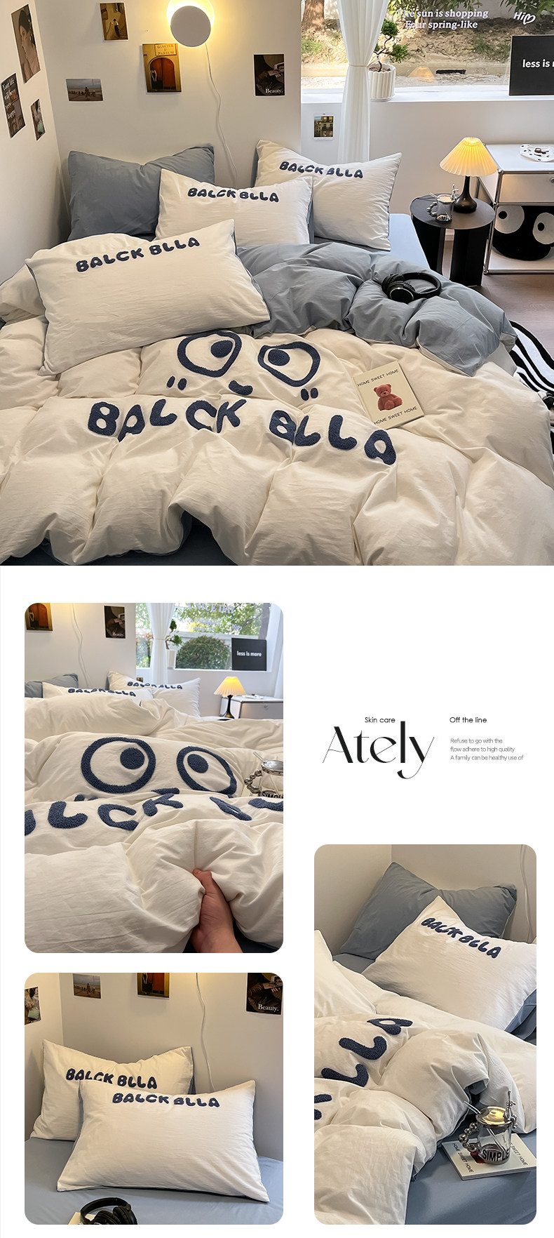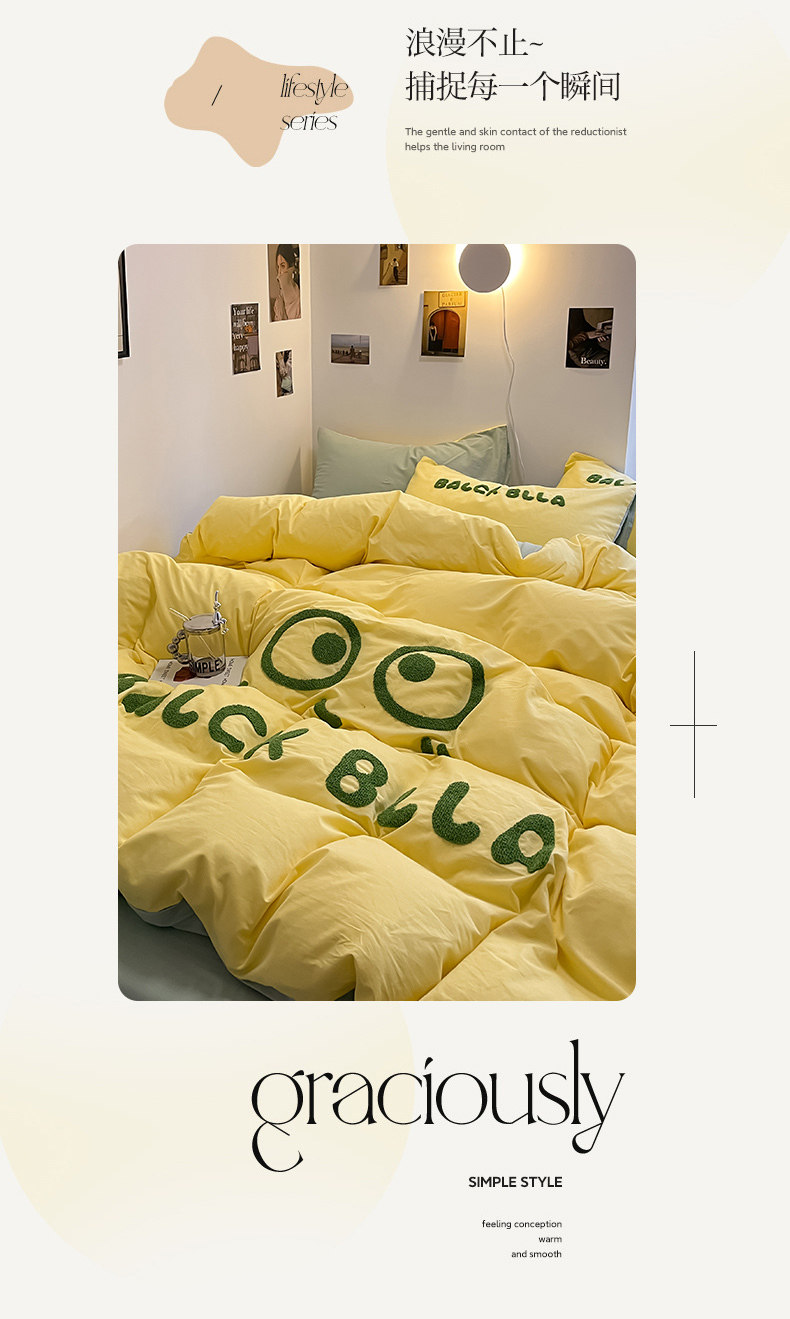 A類可愛煤球純棉四件套100全棉被套床單床包款單人宿捨三件套床品
