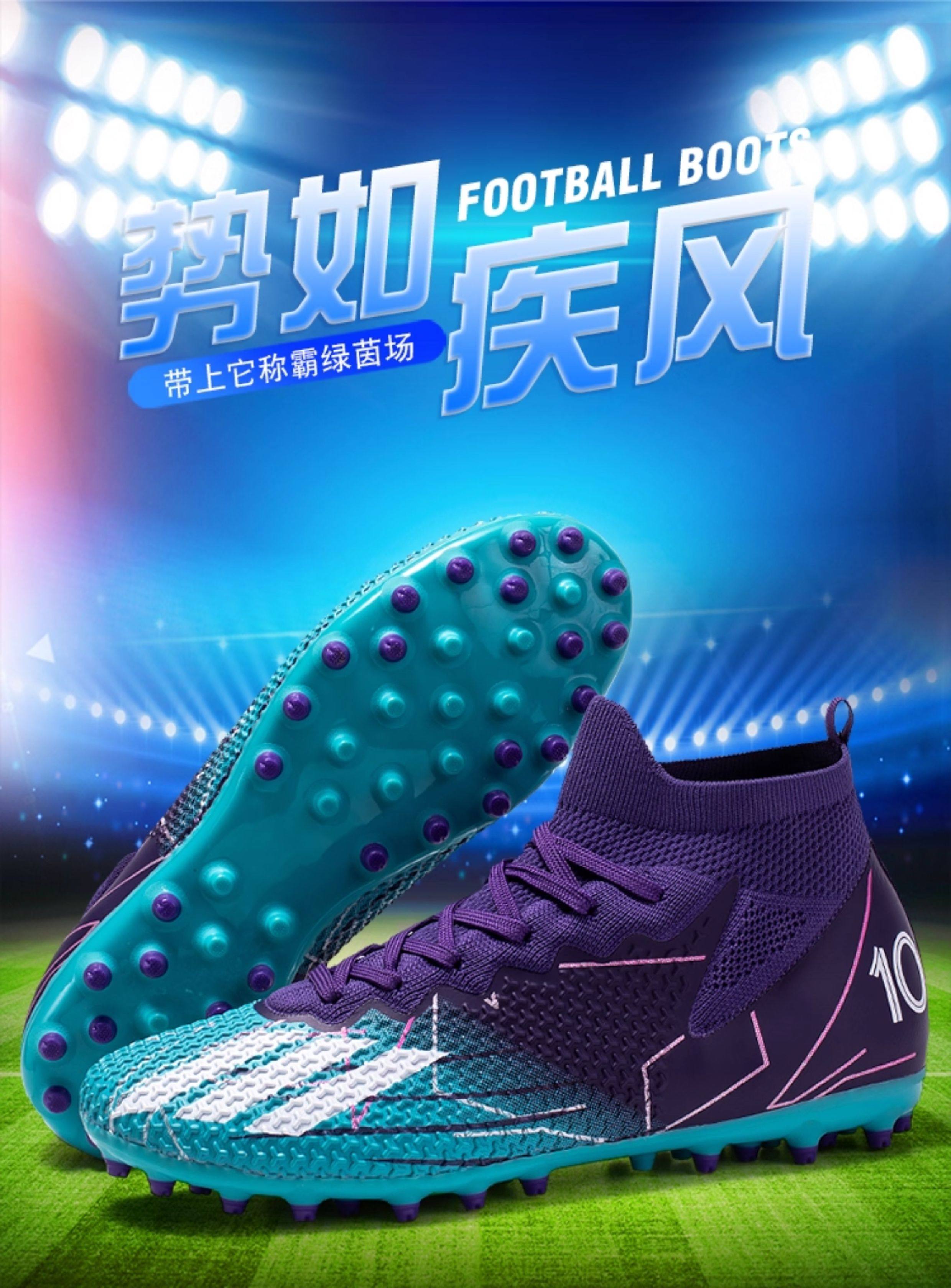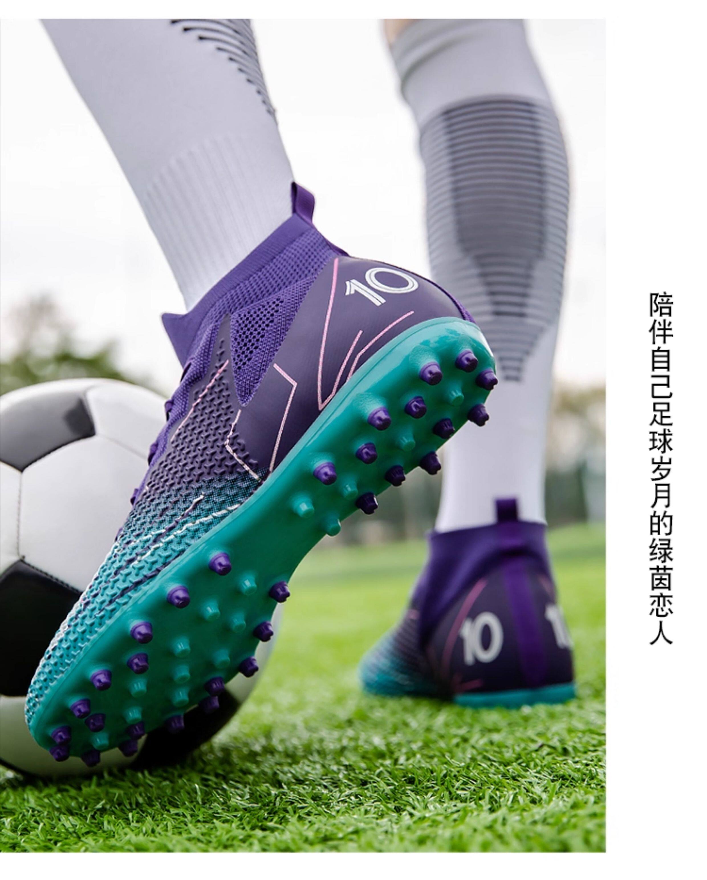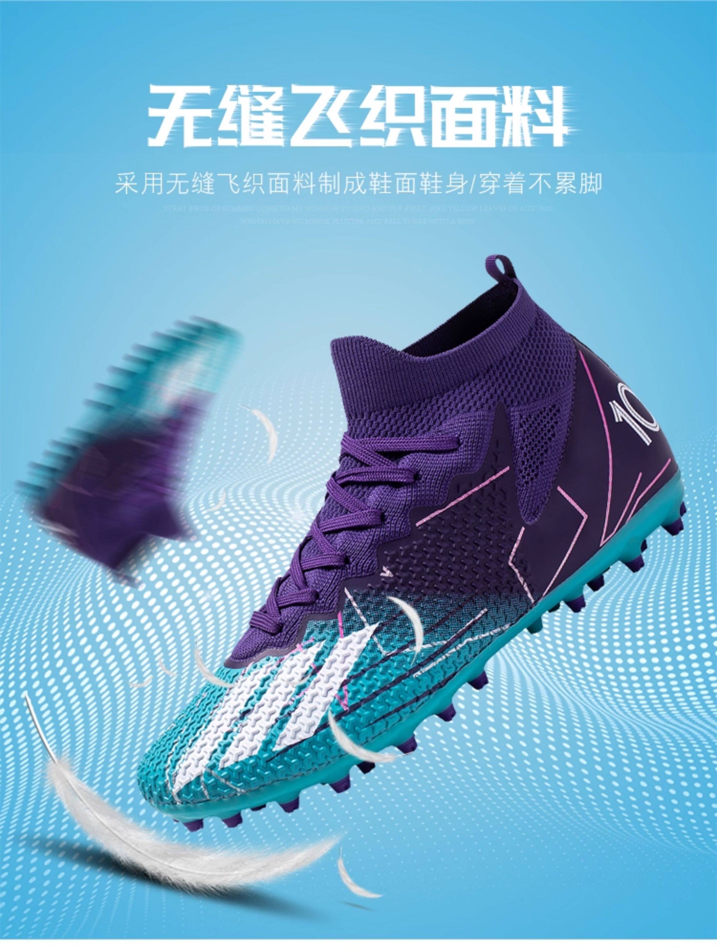 梅西短釘足球鞋高幫刺客中小學生長釘AG碎釘TF男童兒童透氣訓練鞋