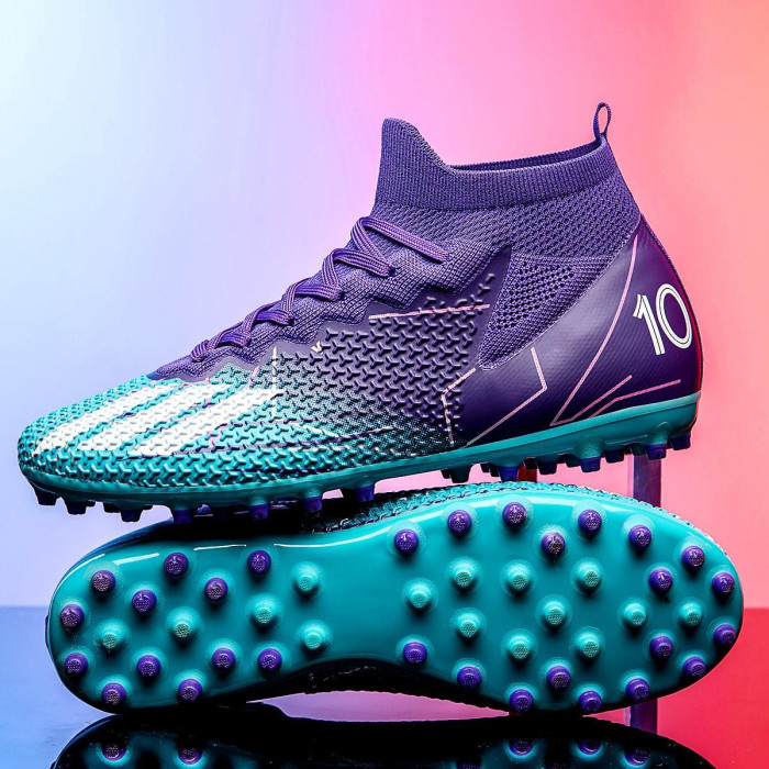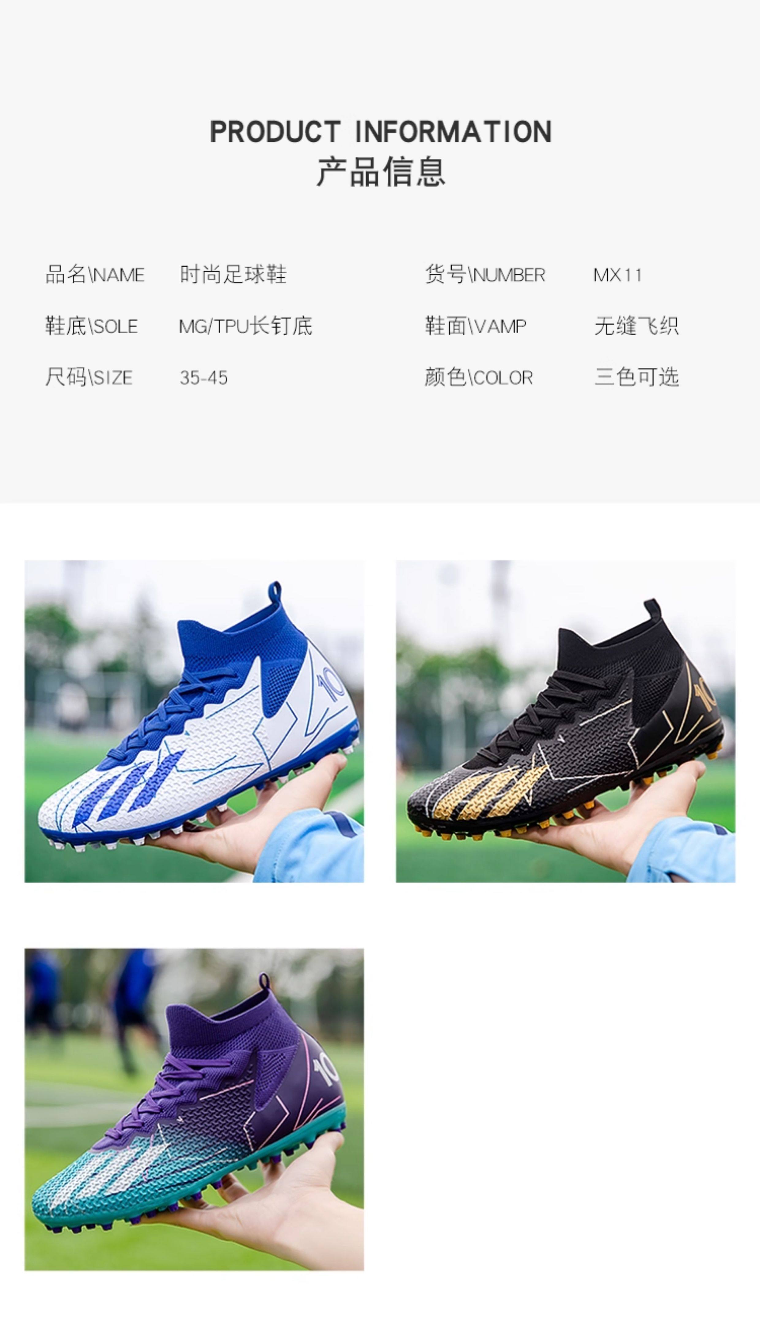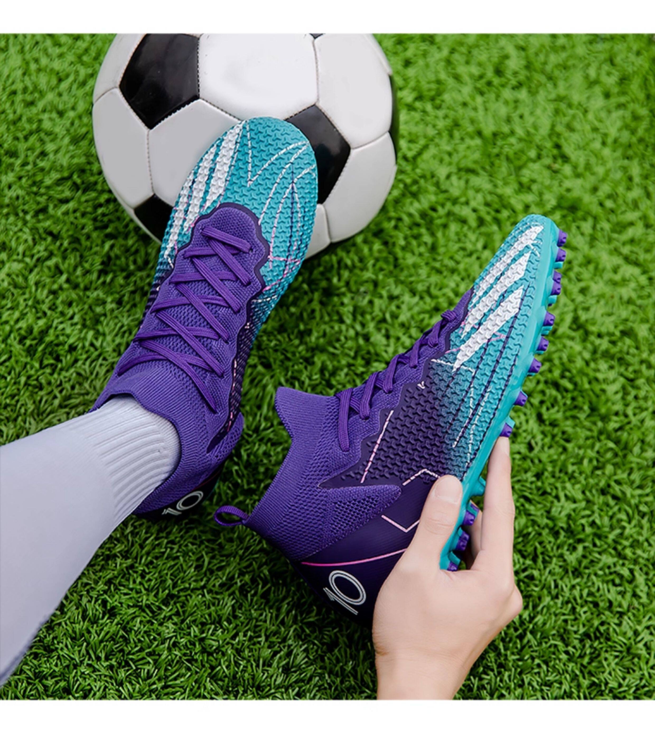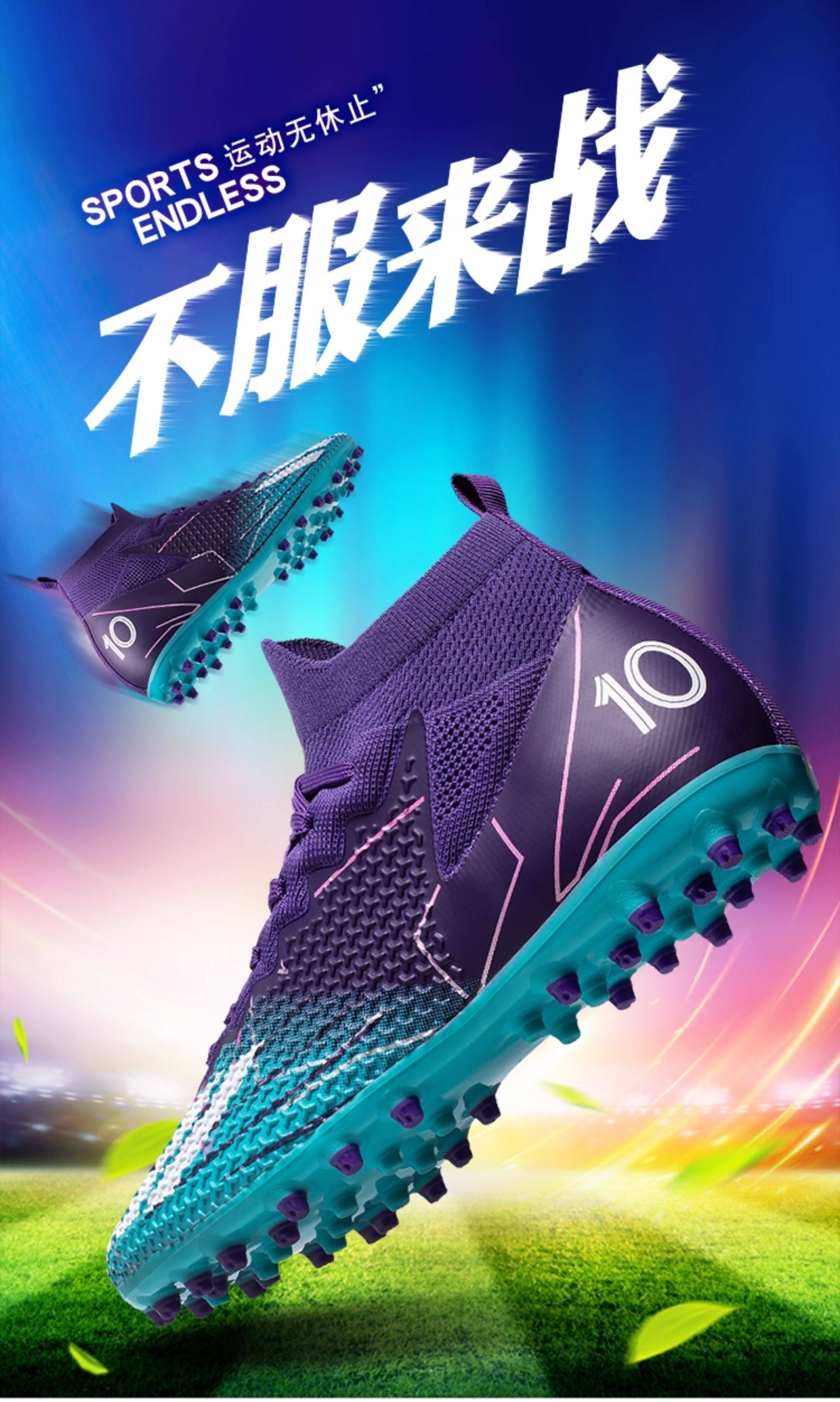 梅西短釘足球鞋高幫刺客中小學生長釘AG碎釘TF男童兒童透氣訓練鞋