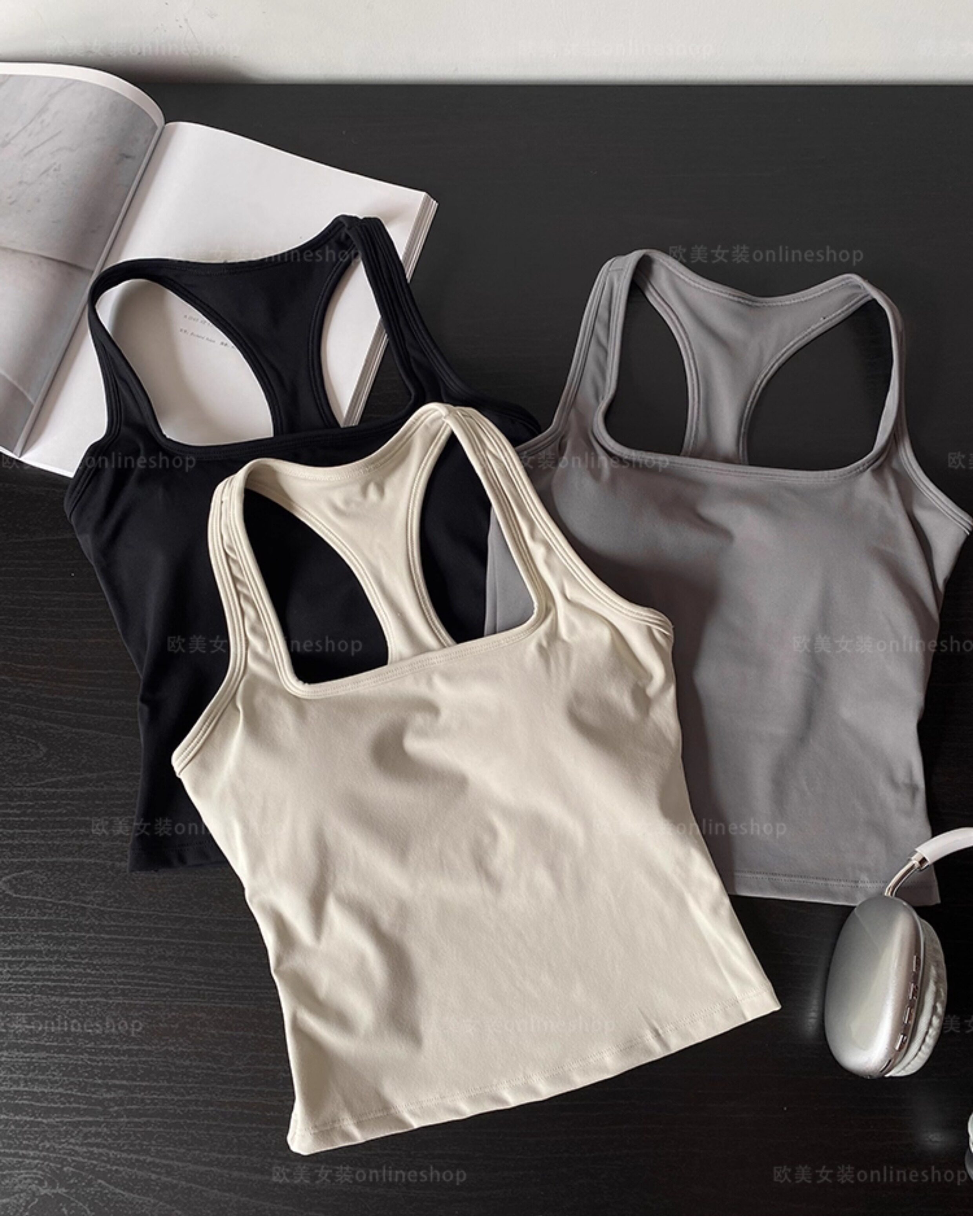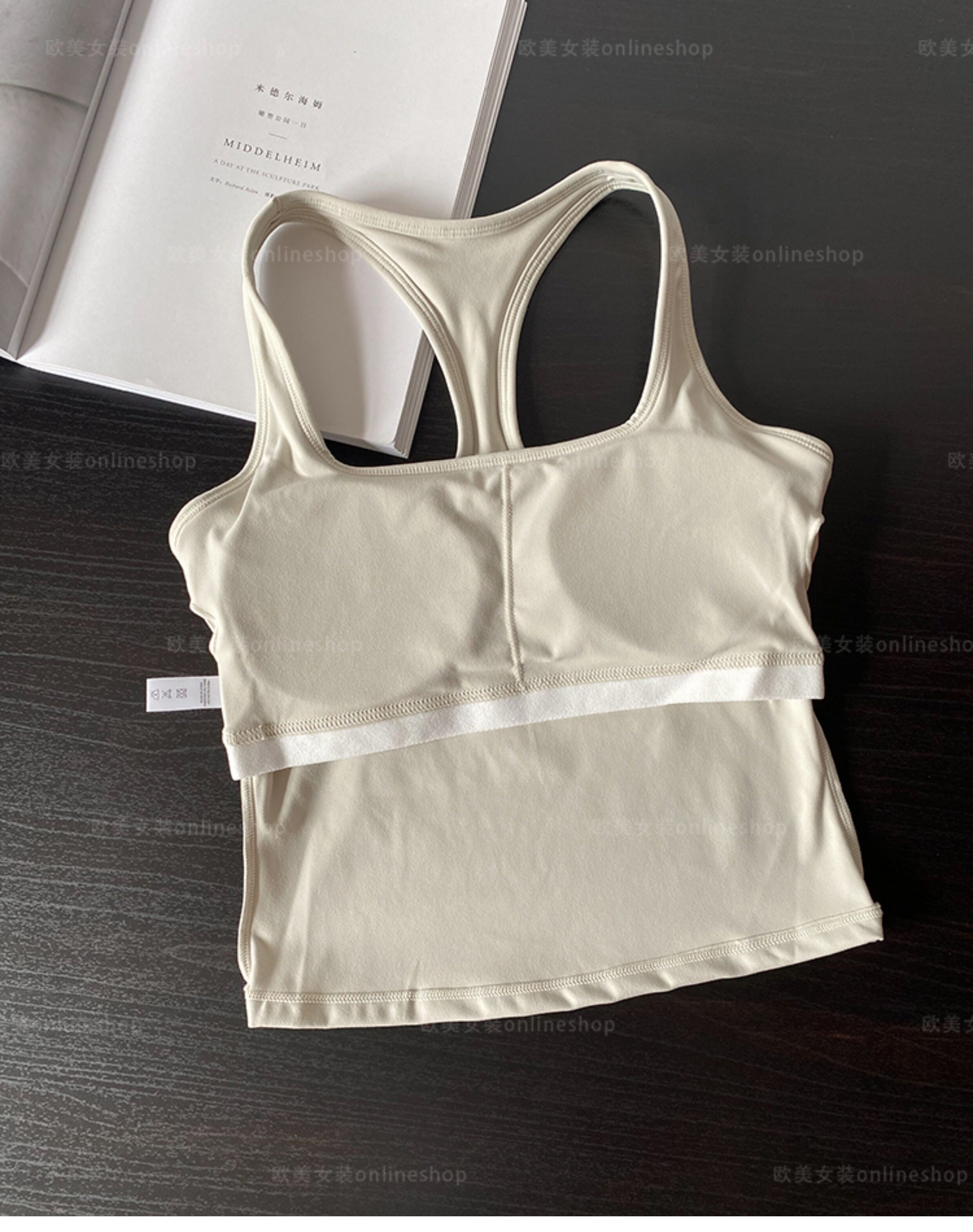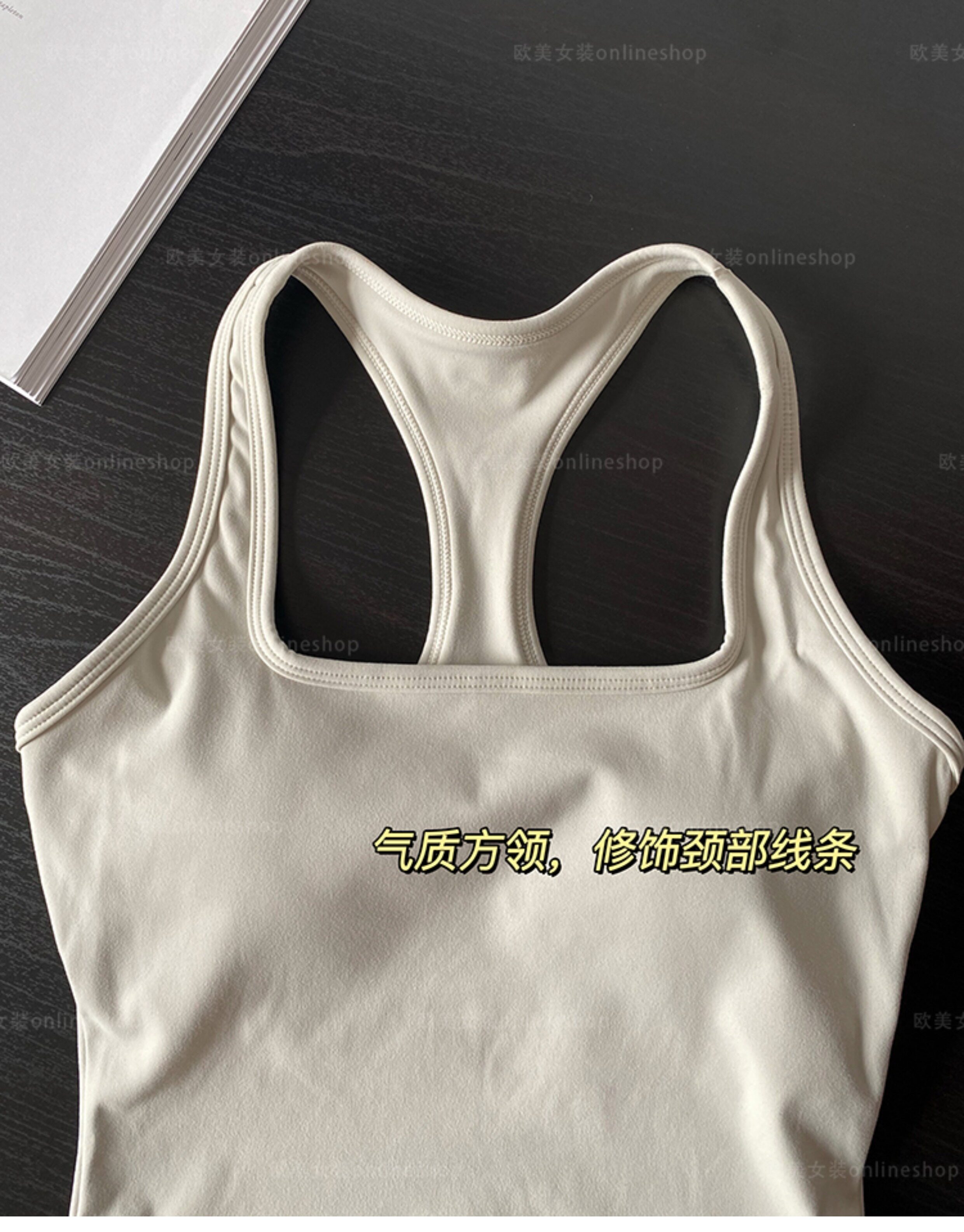 小胸天菜-方領運動背心帶胸墊跑步健身文胸工字美背瑜珈服可外穿