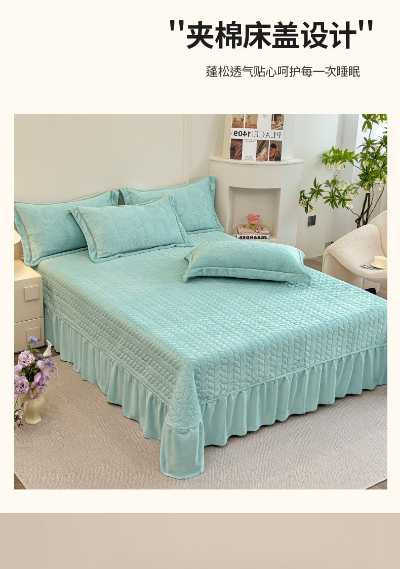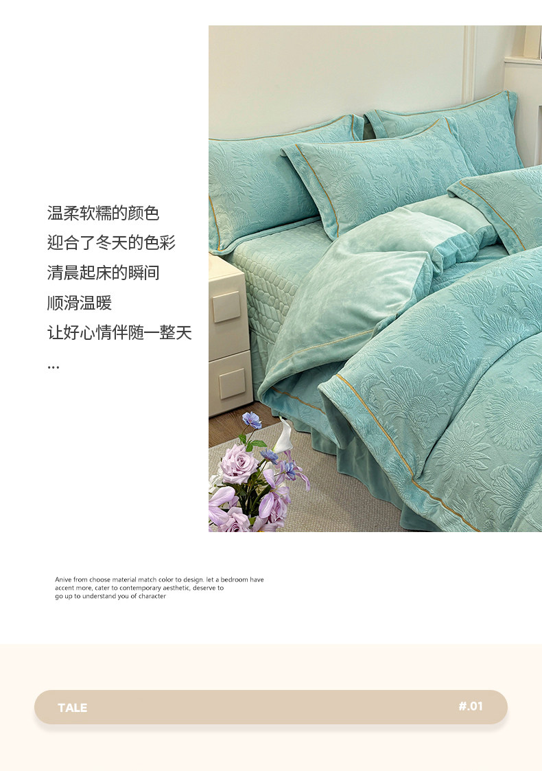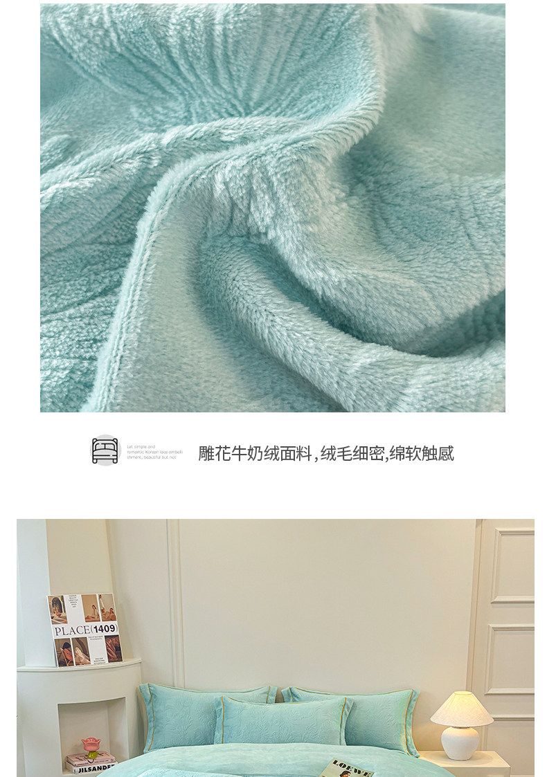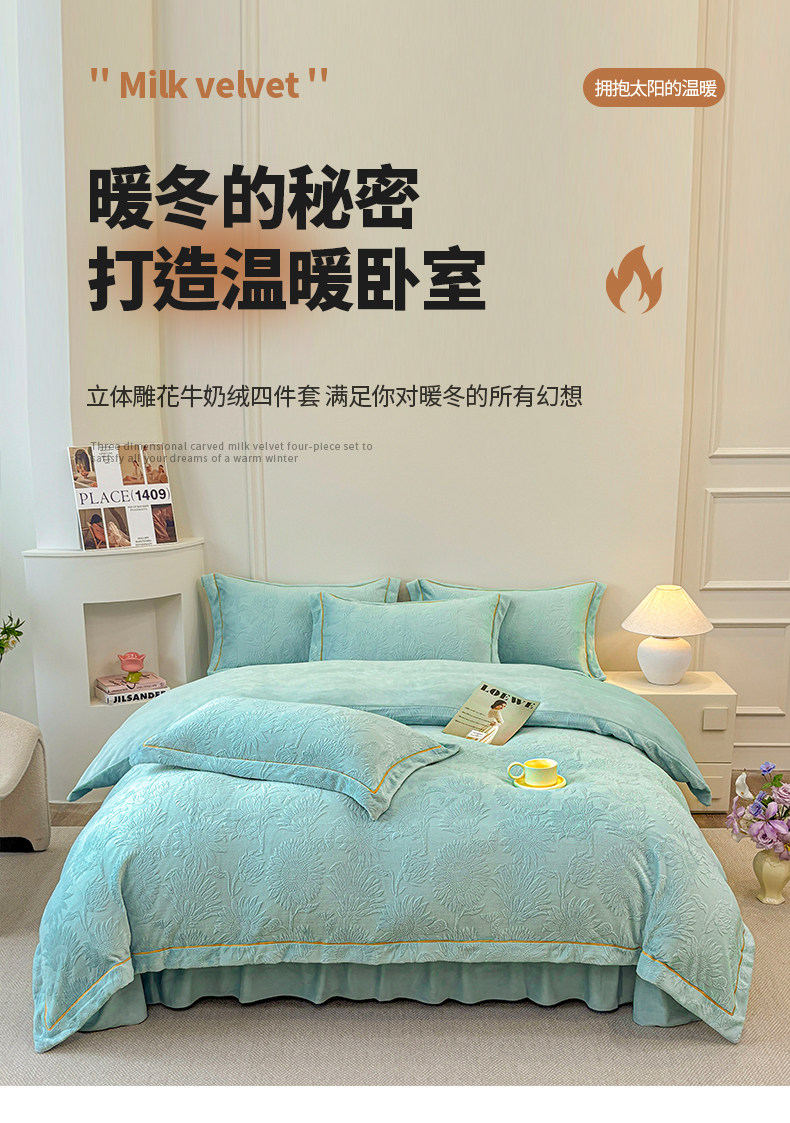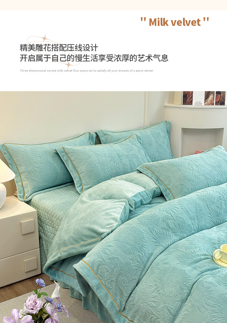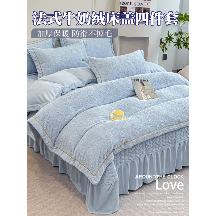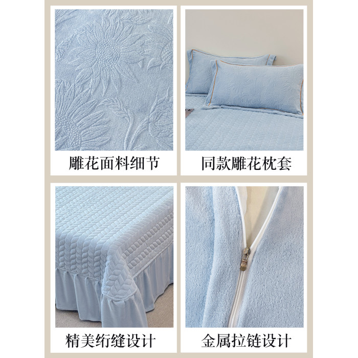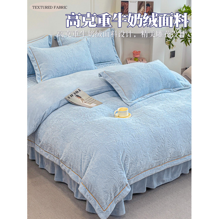 雕花牛奶絨四件套床蓋款冬季雙面加厚法蘭珊瑚絨床上被套夾棉床裙