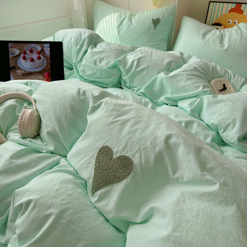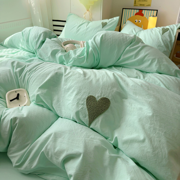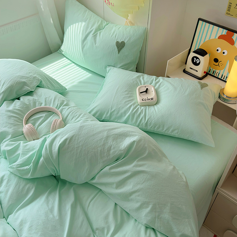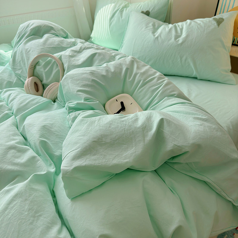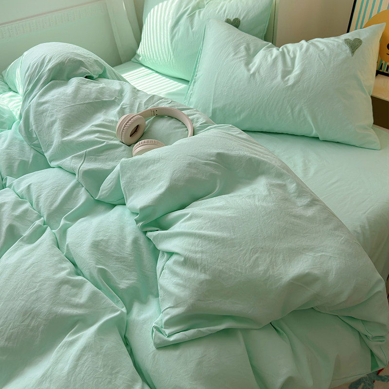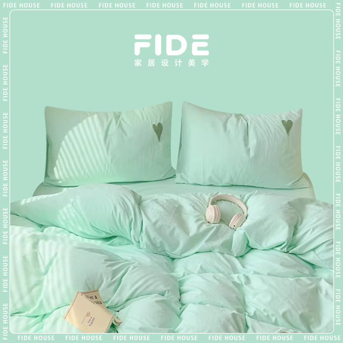 FIDE美學家居柔軟舒適親膚四件套新款綠色純色簡約風床單床包床上