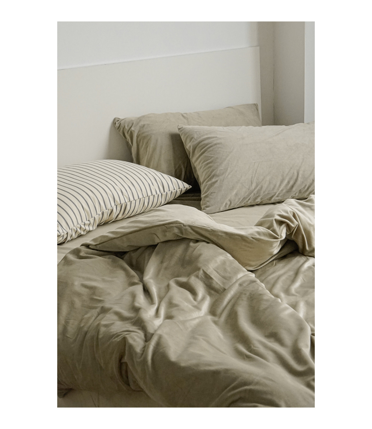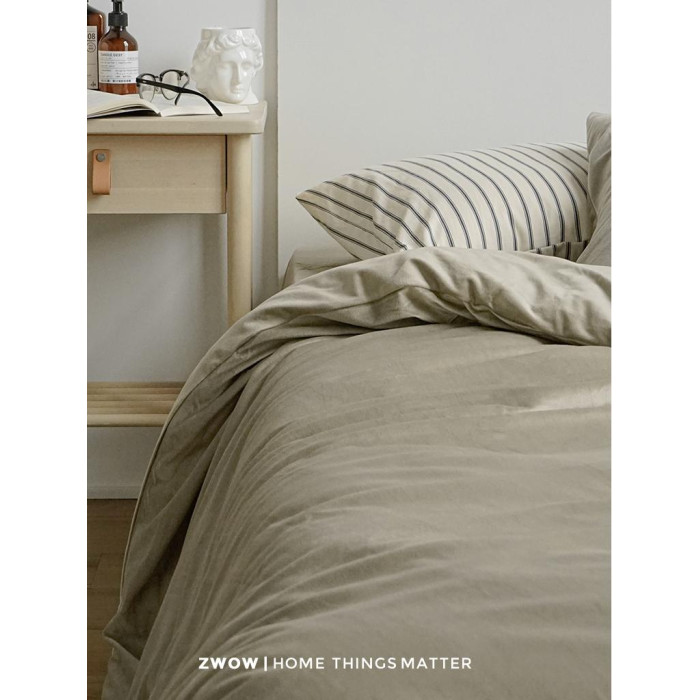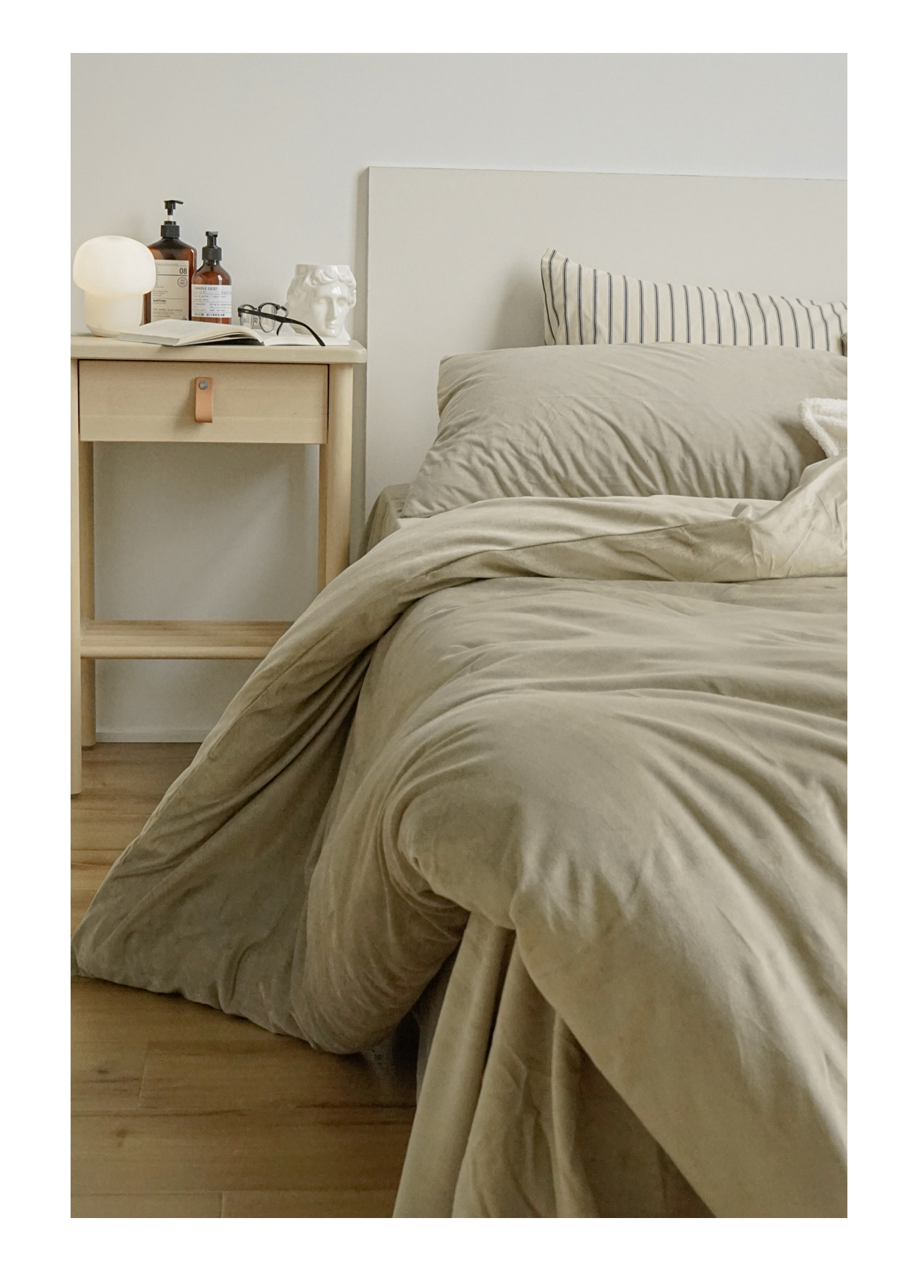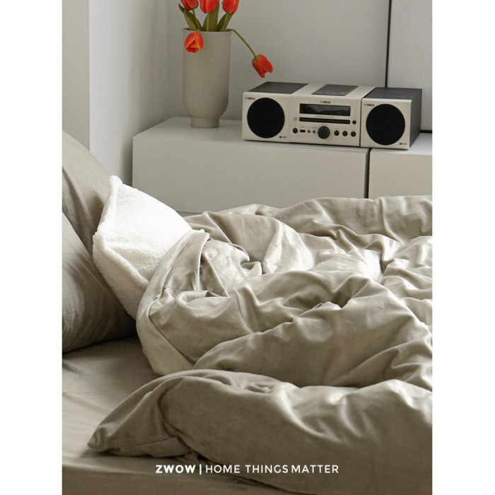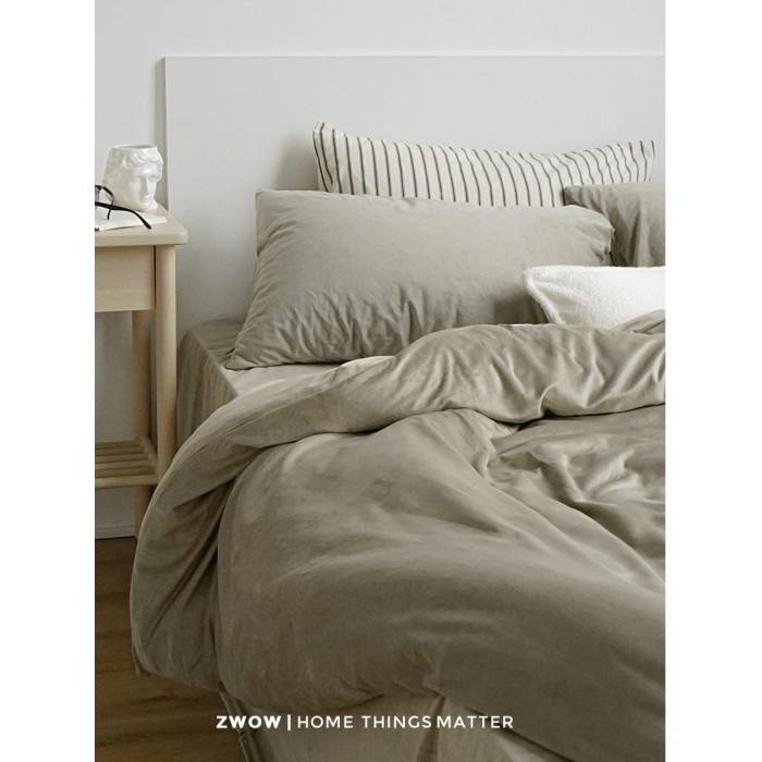 造臥zwow秋冬季北歐簡約侘寂風柔軟卡其色防靜電INS天鵞絨四件套