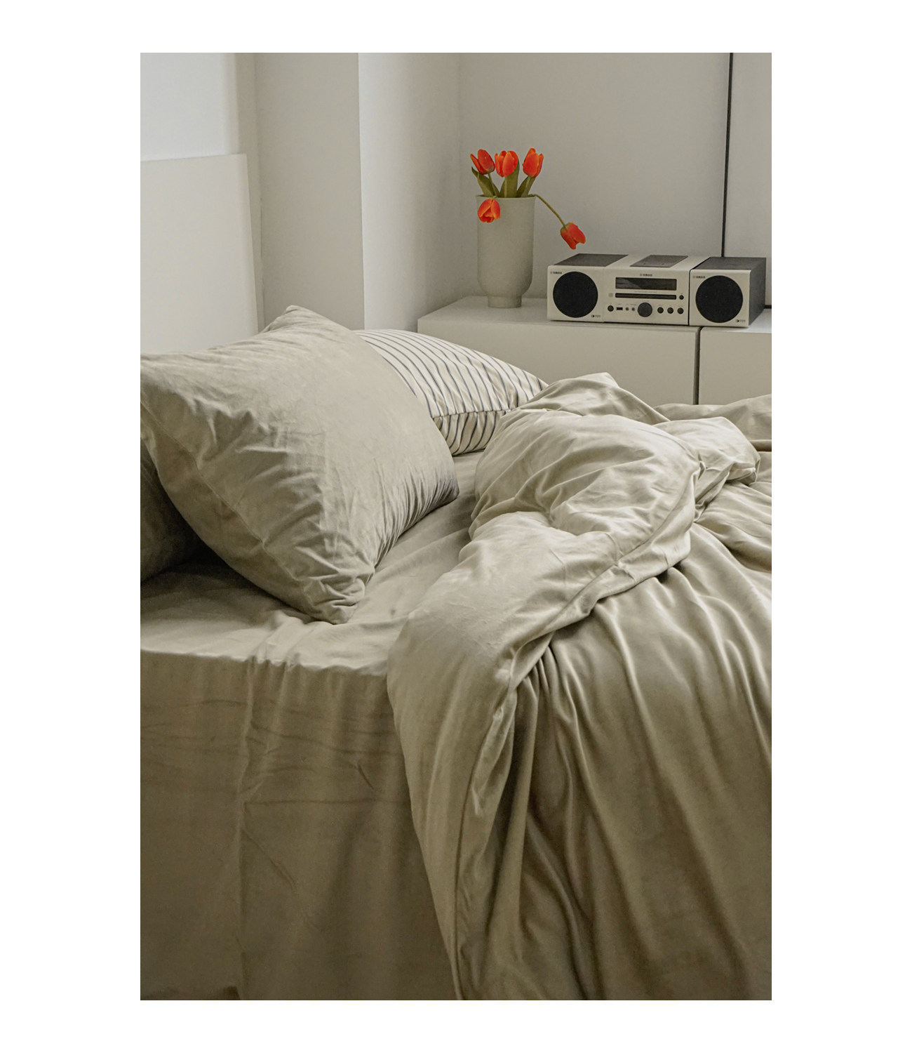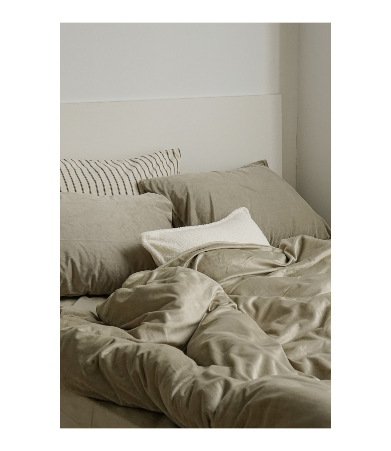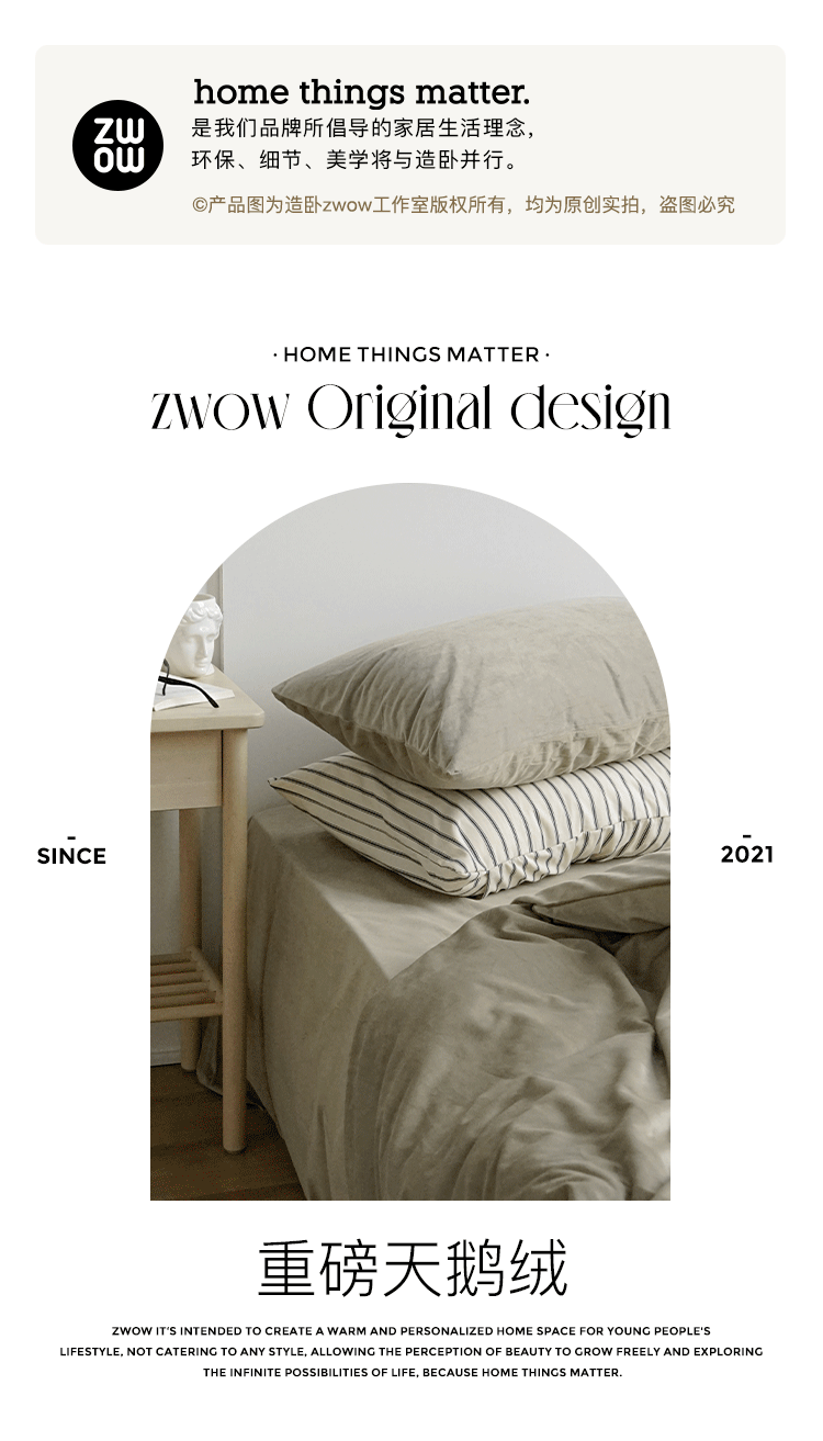 造臥zwow秋冬季北歐簡約侘寂風柔軟卡其色防靜電INS天鵞絨四件套