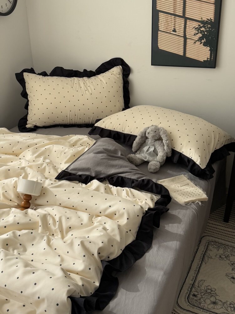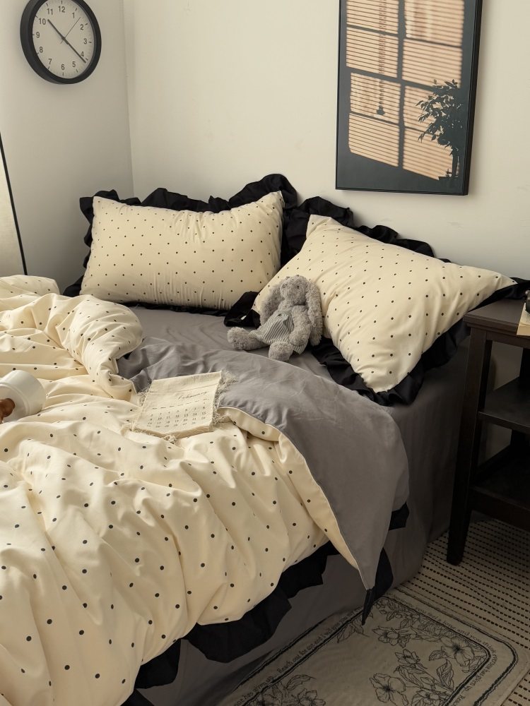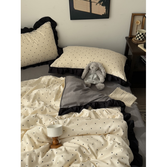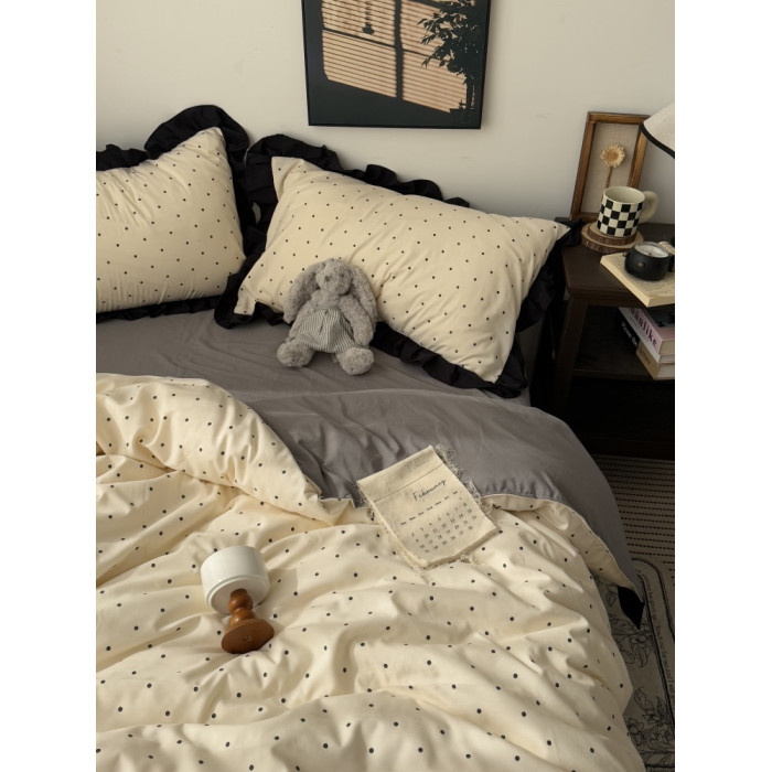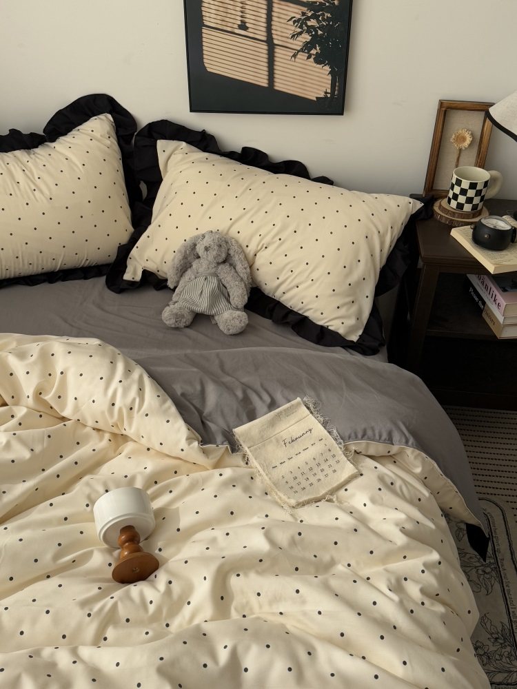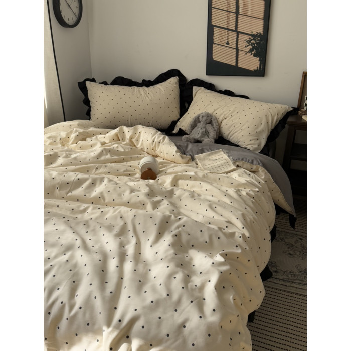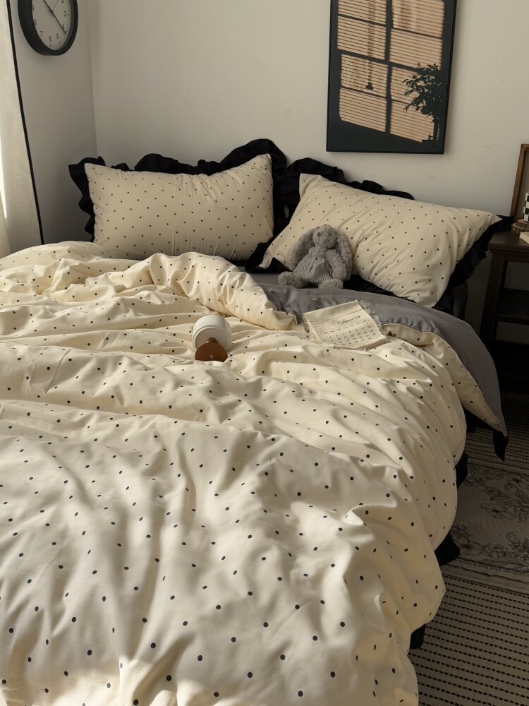 溫柔ins復古少女心波點水洗棉四件套床單純色學生宿捨三件套床包
