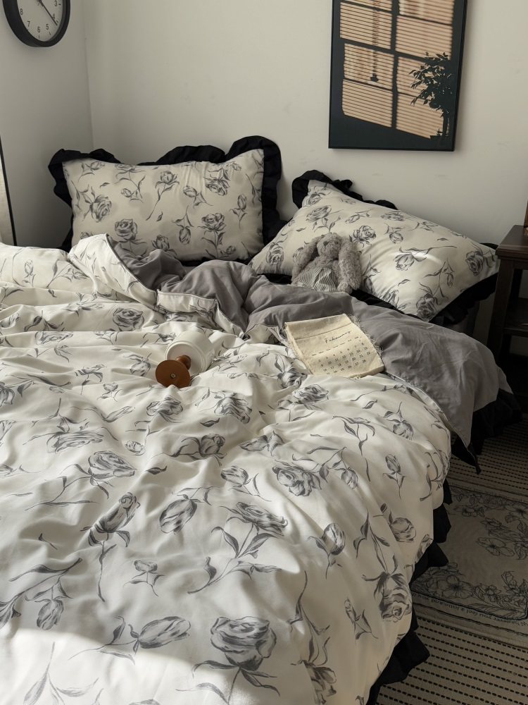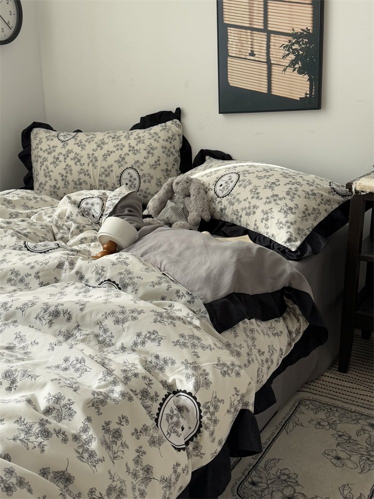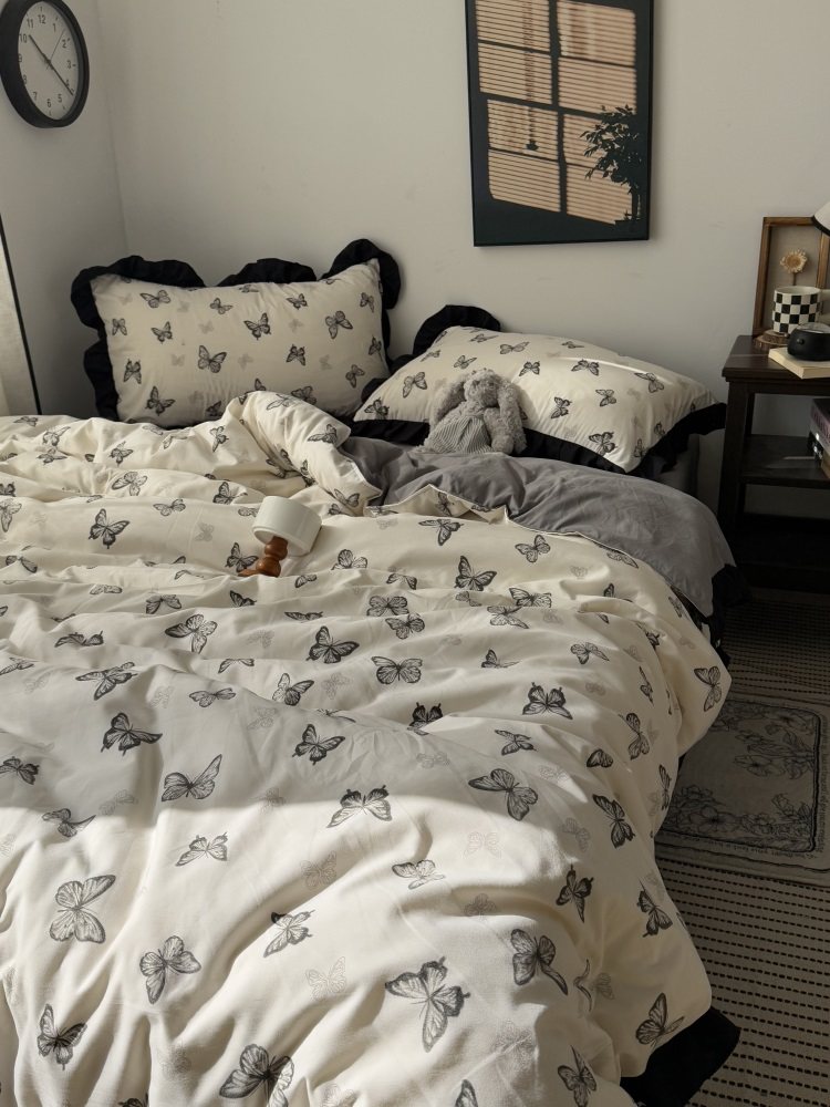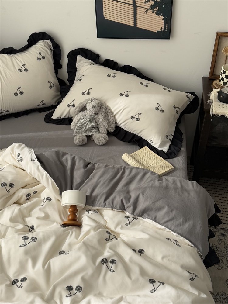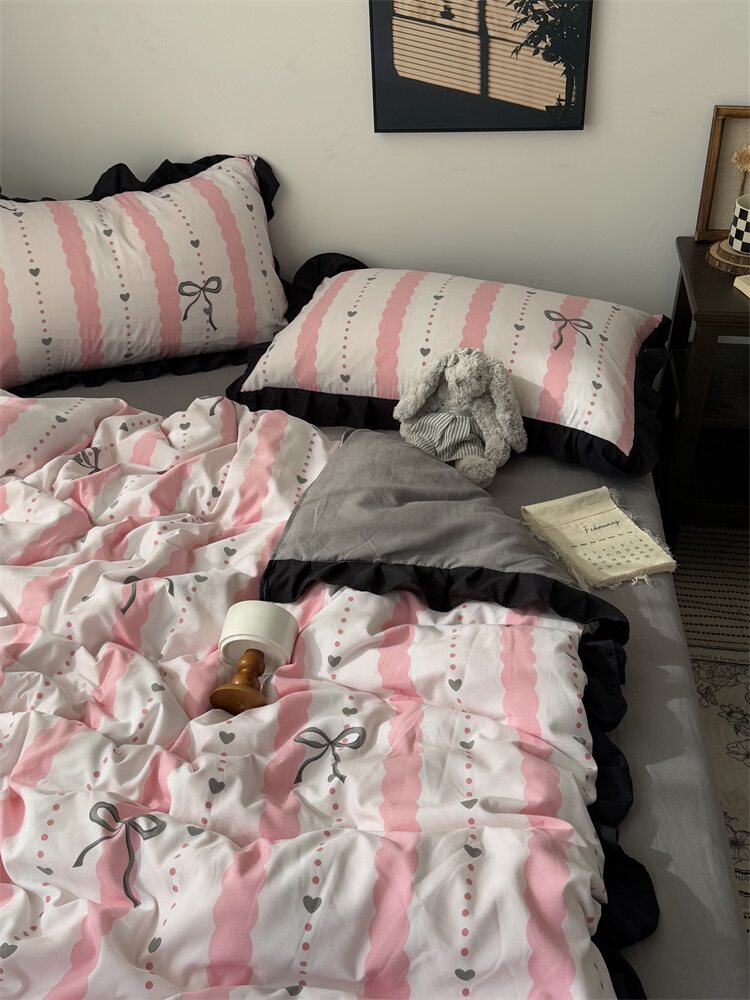 溫柔ins復古少女心波點水洗棉四件套床單純色學生宿捨三件套床包