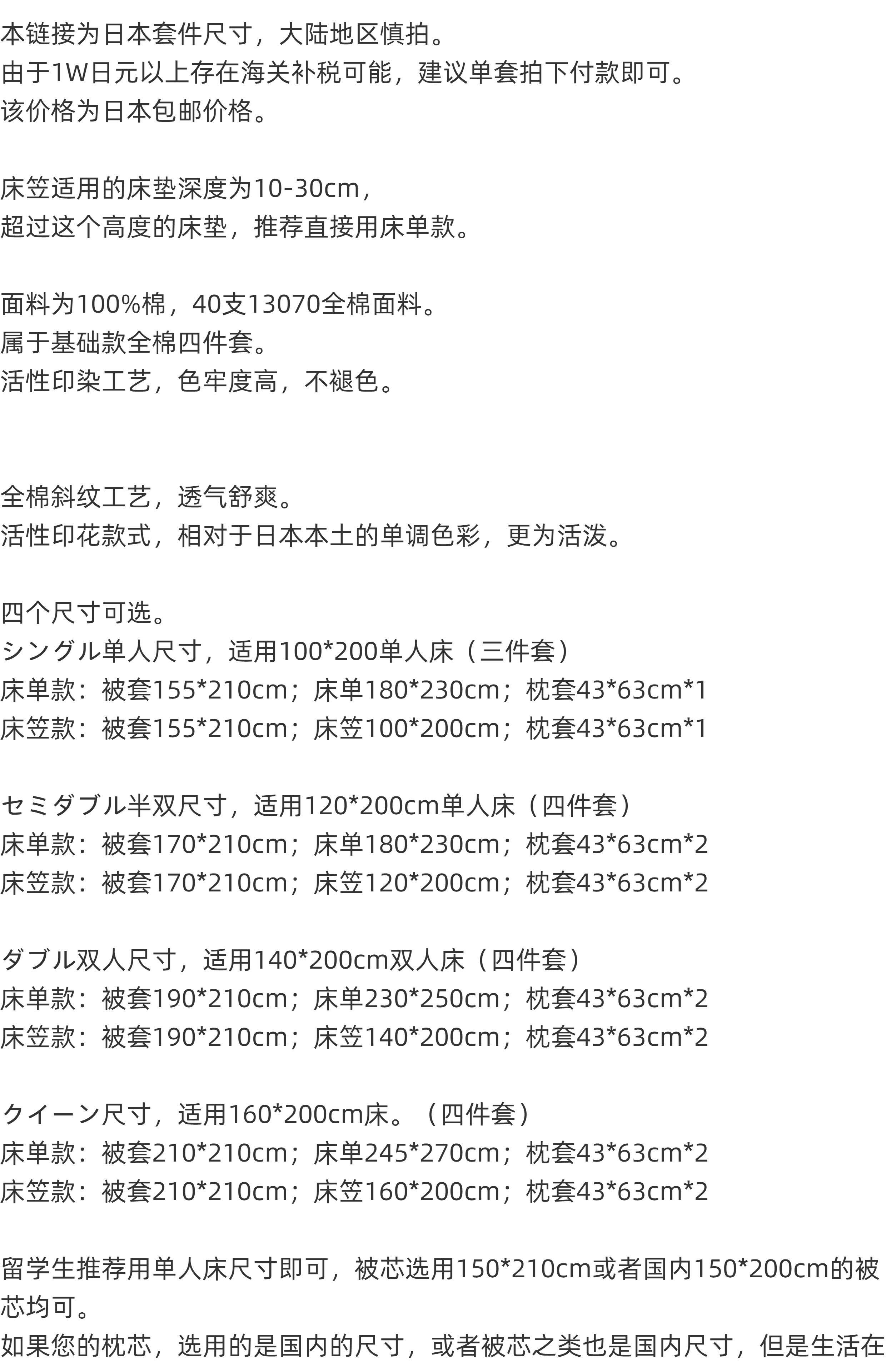 【日本尺寸】北歐小清新印花三四件套全棉純棉親膚床上用品