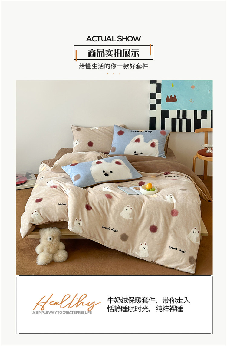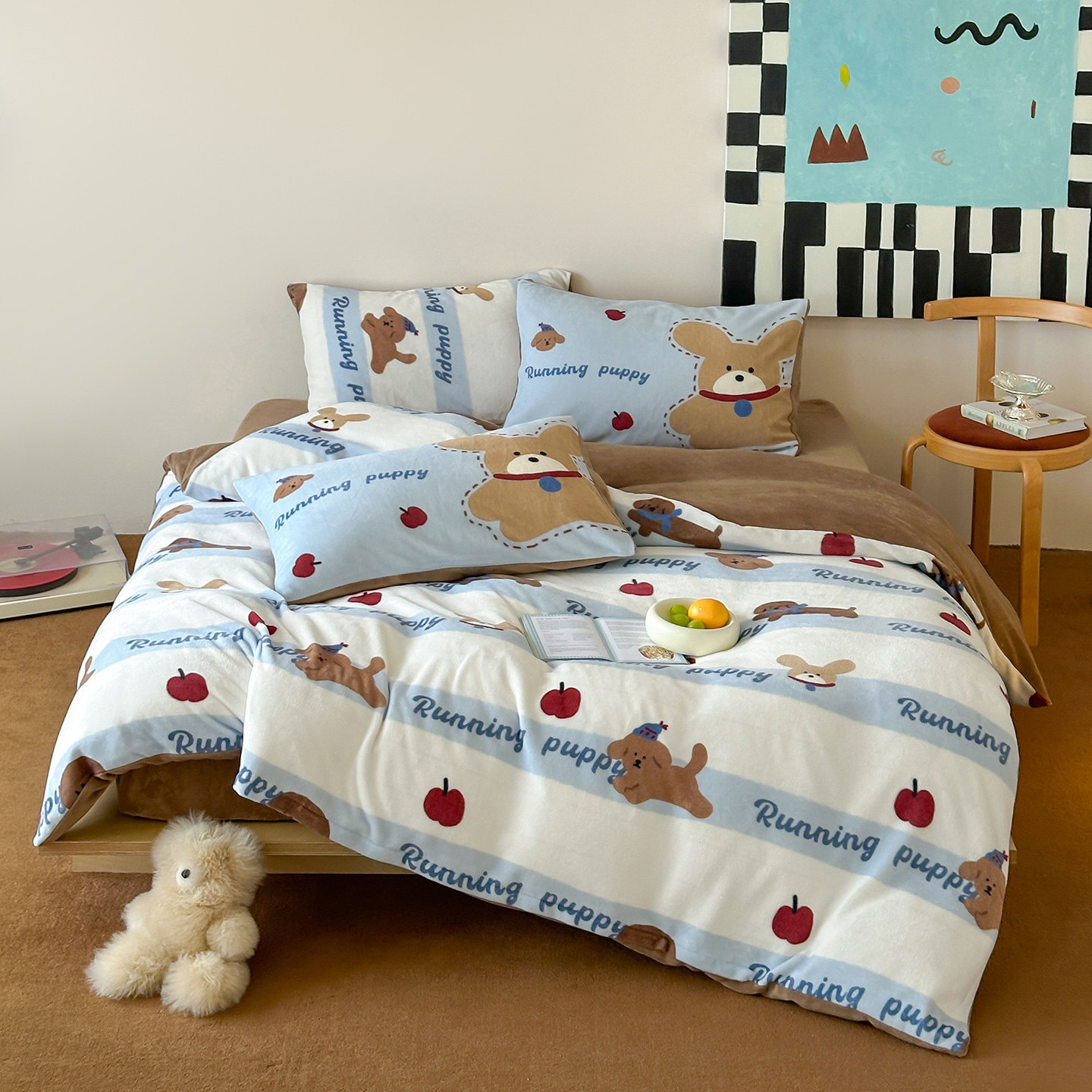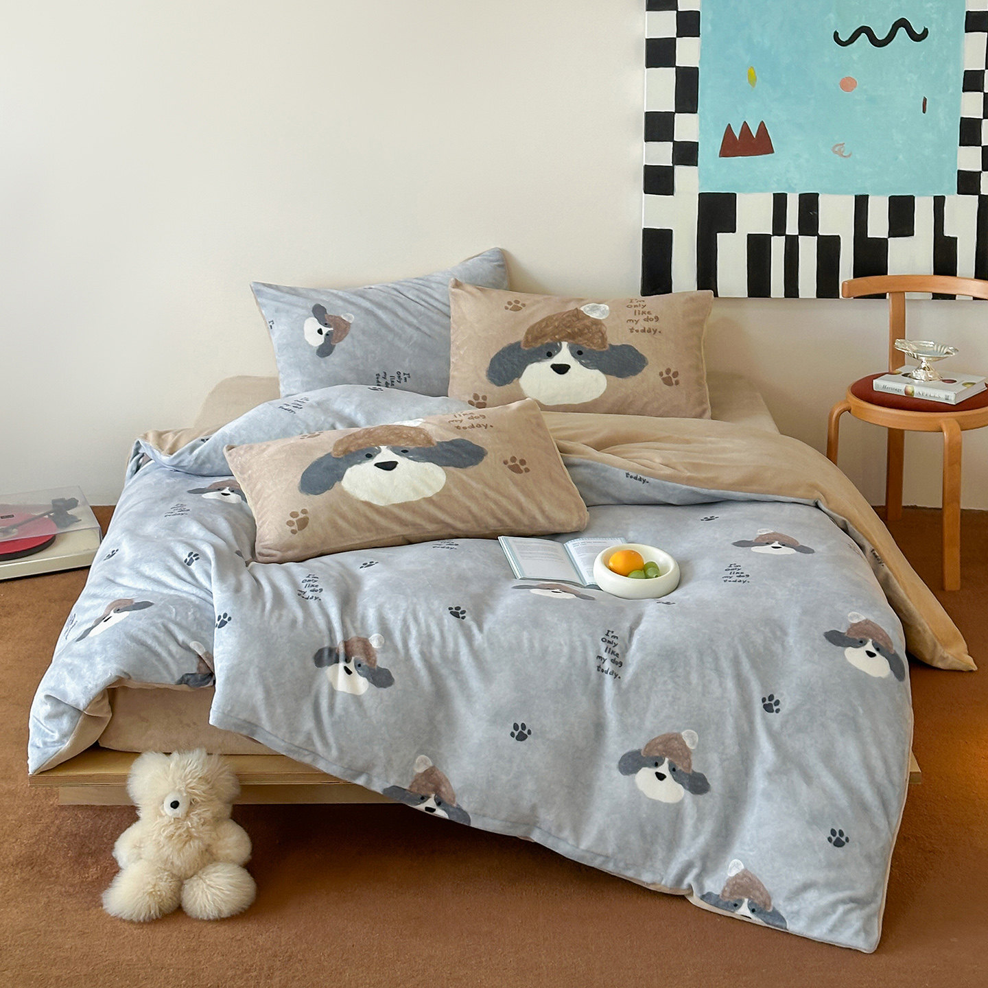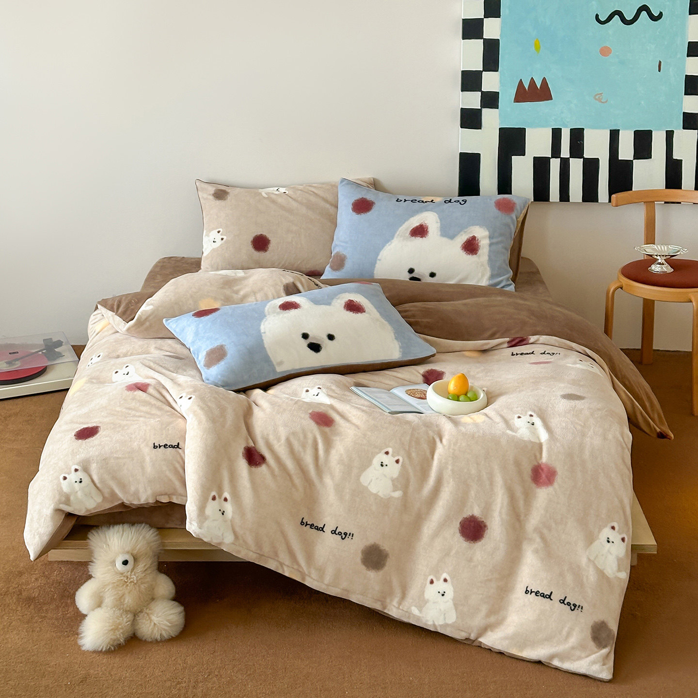 【泡芙狗】秋冬牛奶絨四件套卡通可愛少女心加絨保暖宿捨三件套
