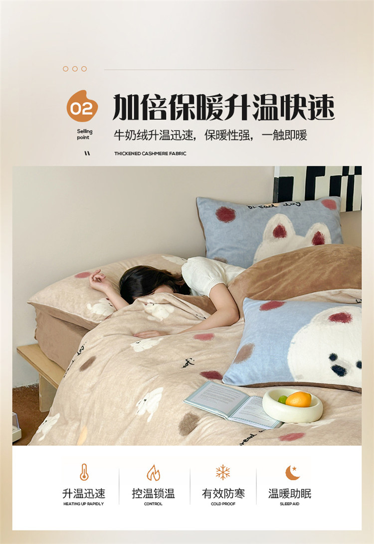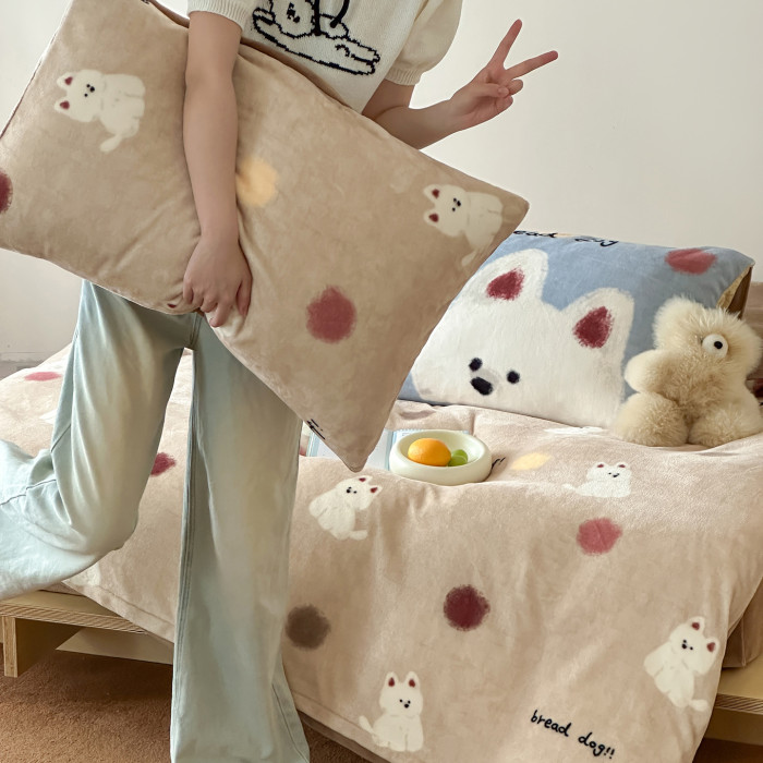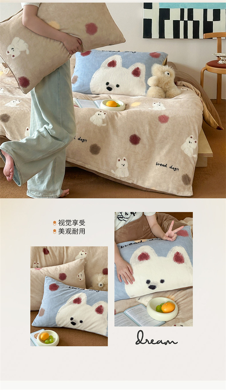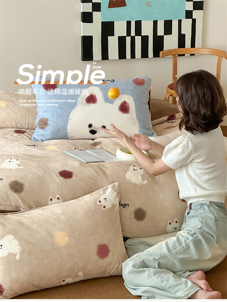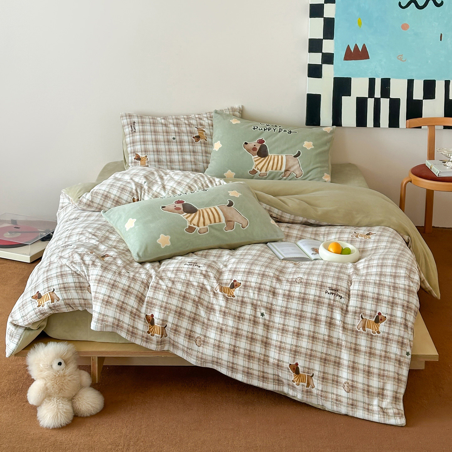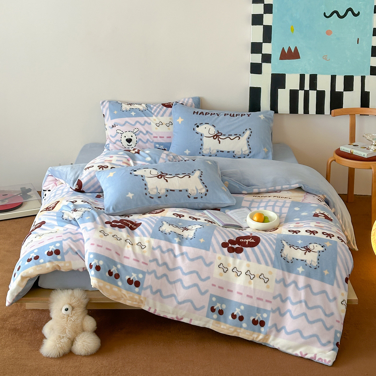 【泡芙狗】秋冬牛奶絨四件套卡通可愛少女心加絨保暖宿捨三件套