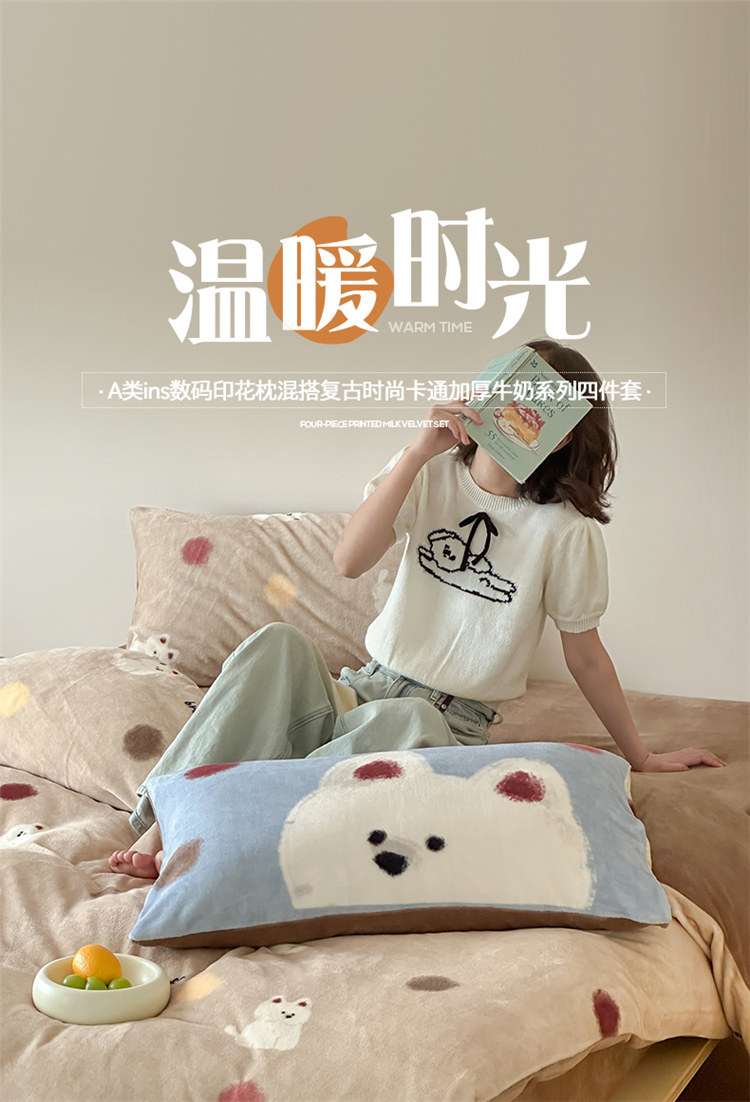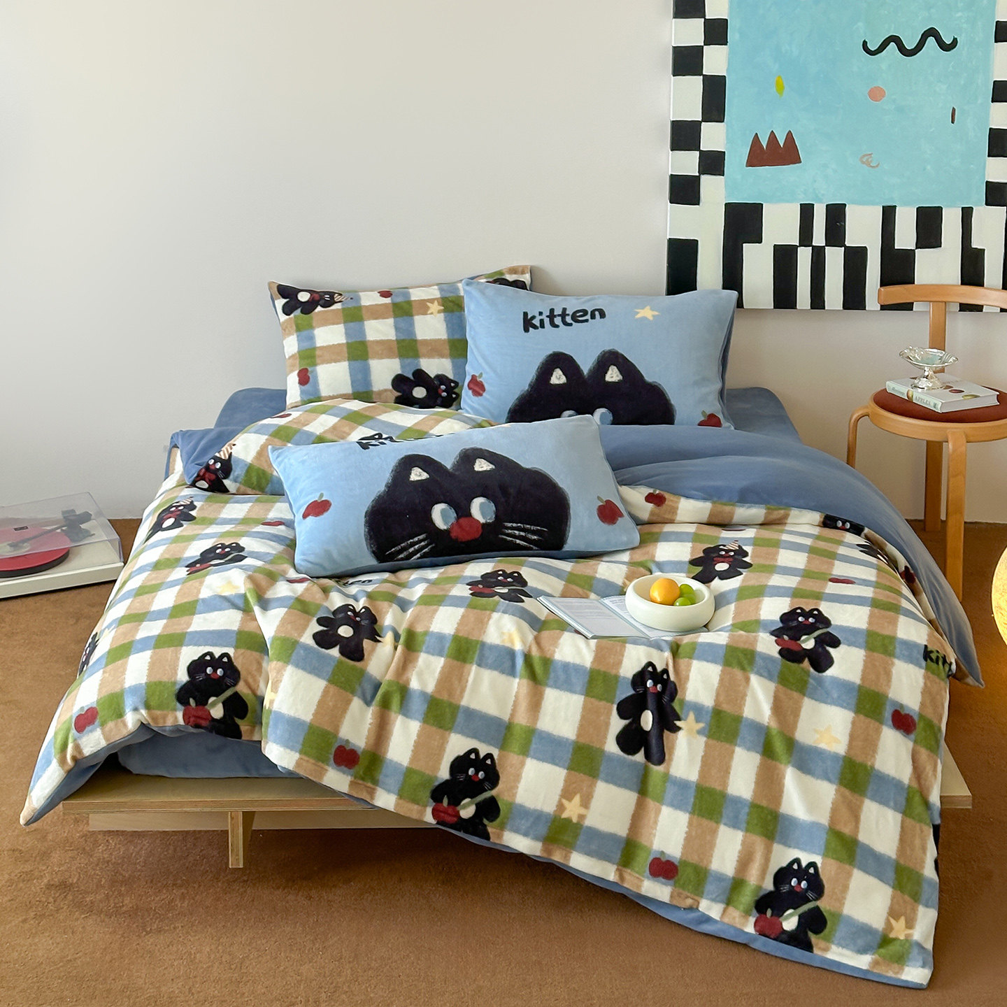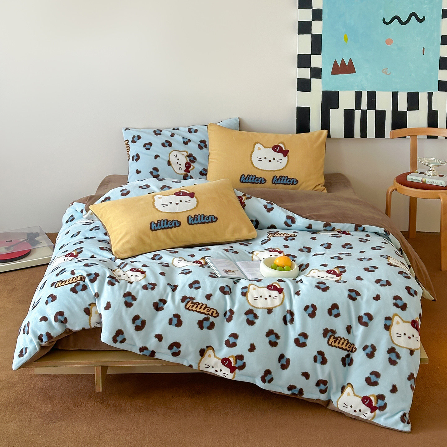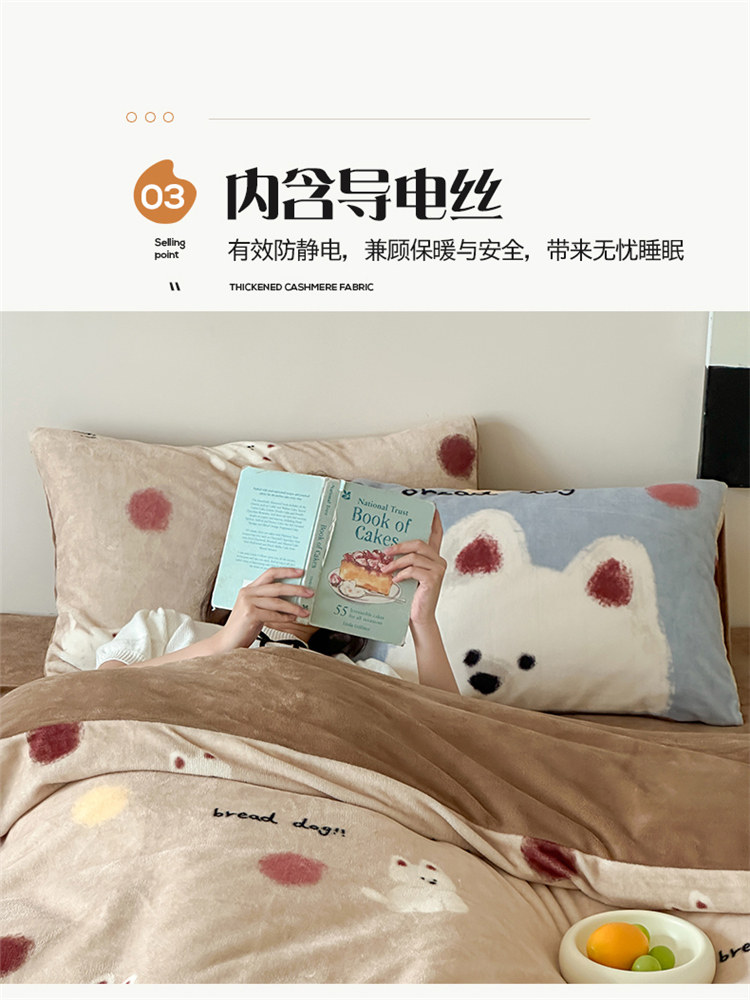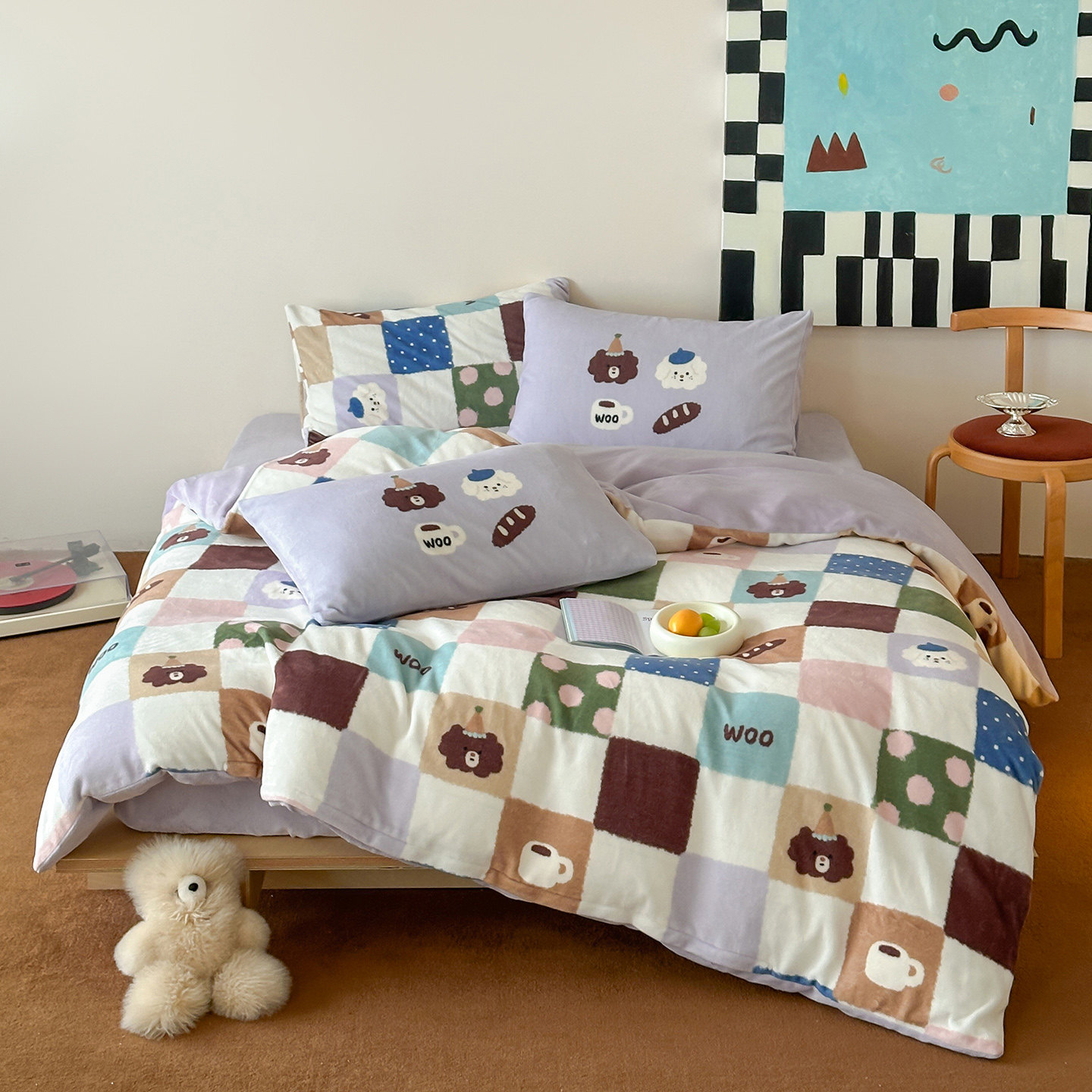 【泡芙狗】秋冬牛奶絨四件套卡通可愛少女心加絨保暖宿捨三件套