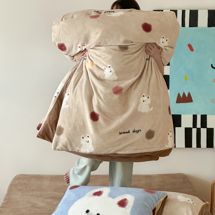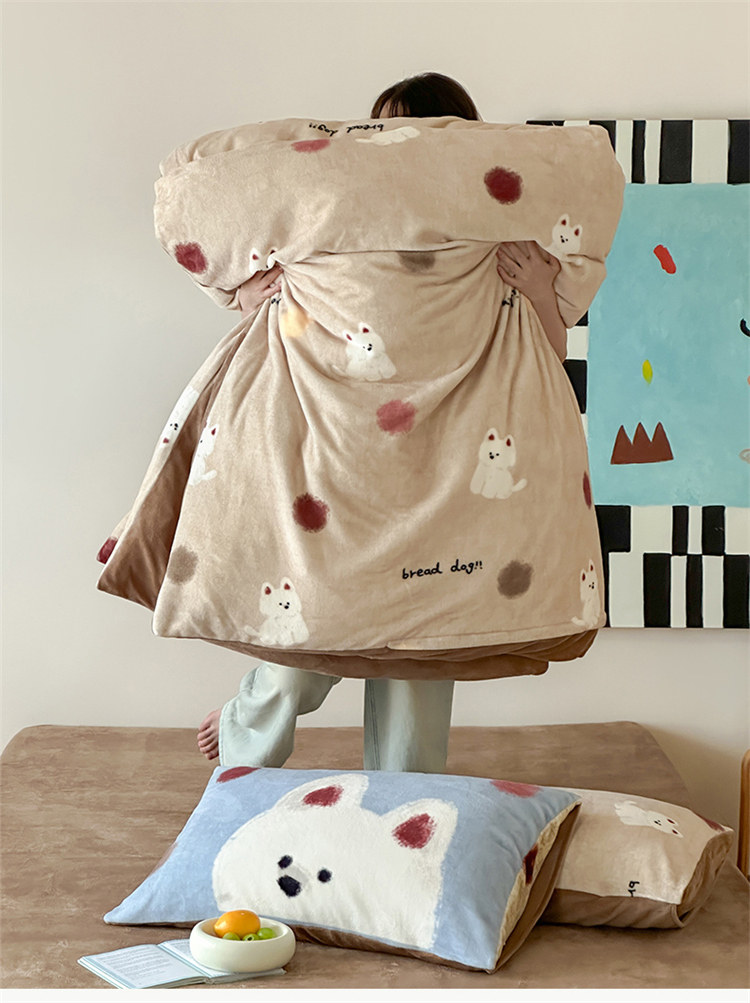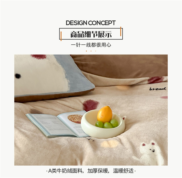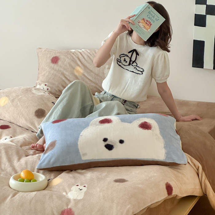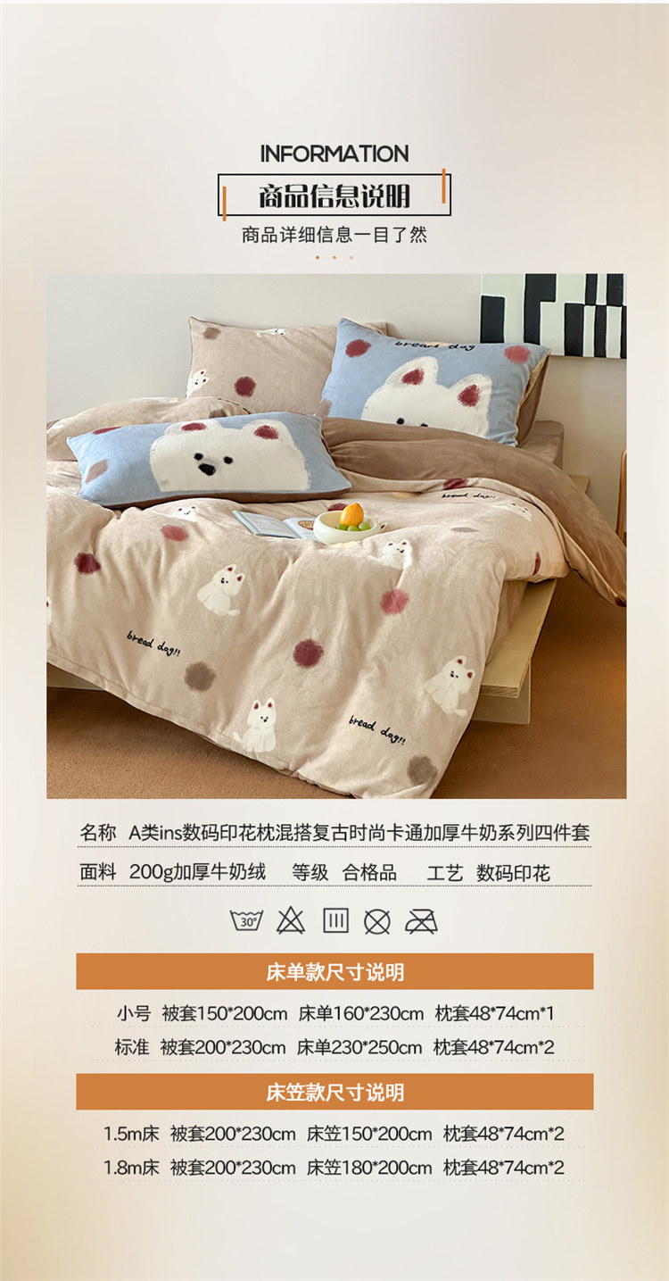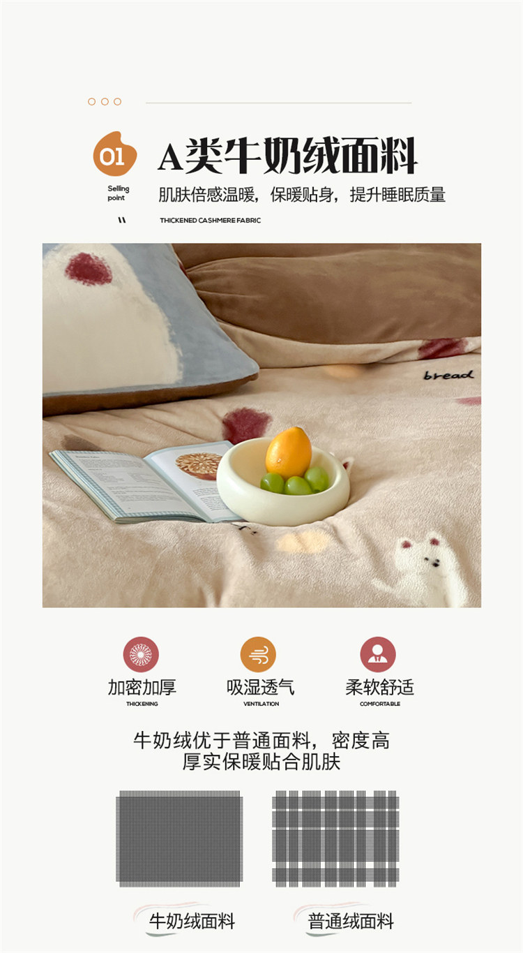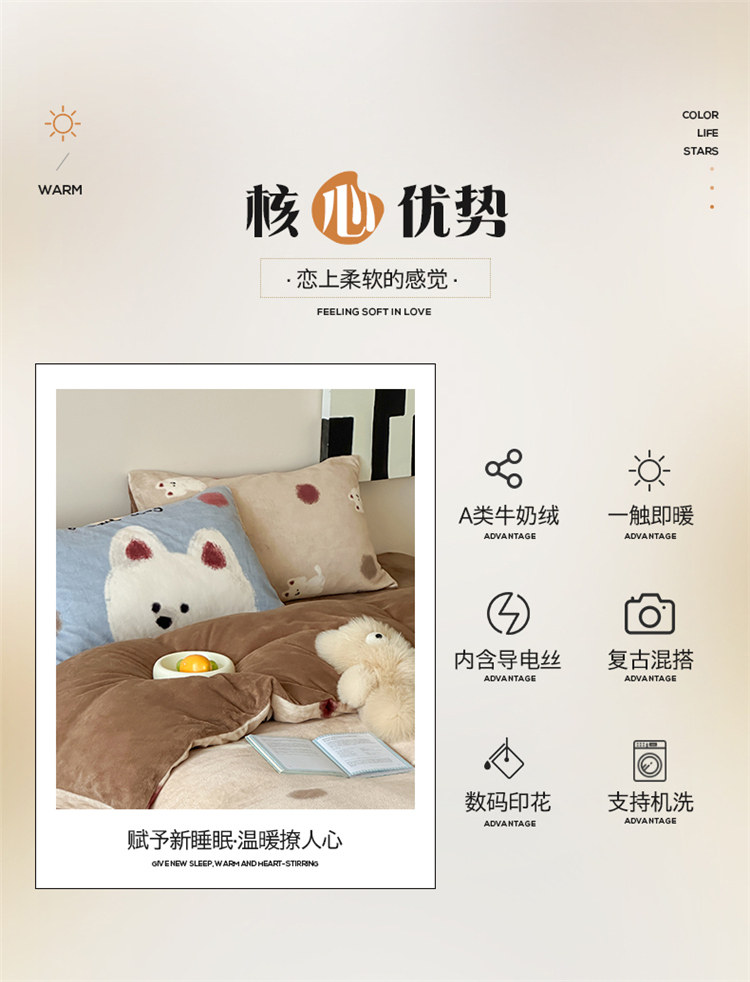 【泡芙狗】秋冬牛奶絨四件套卡通可愛少女心加絨保暖宿捨三件套