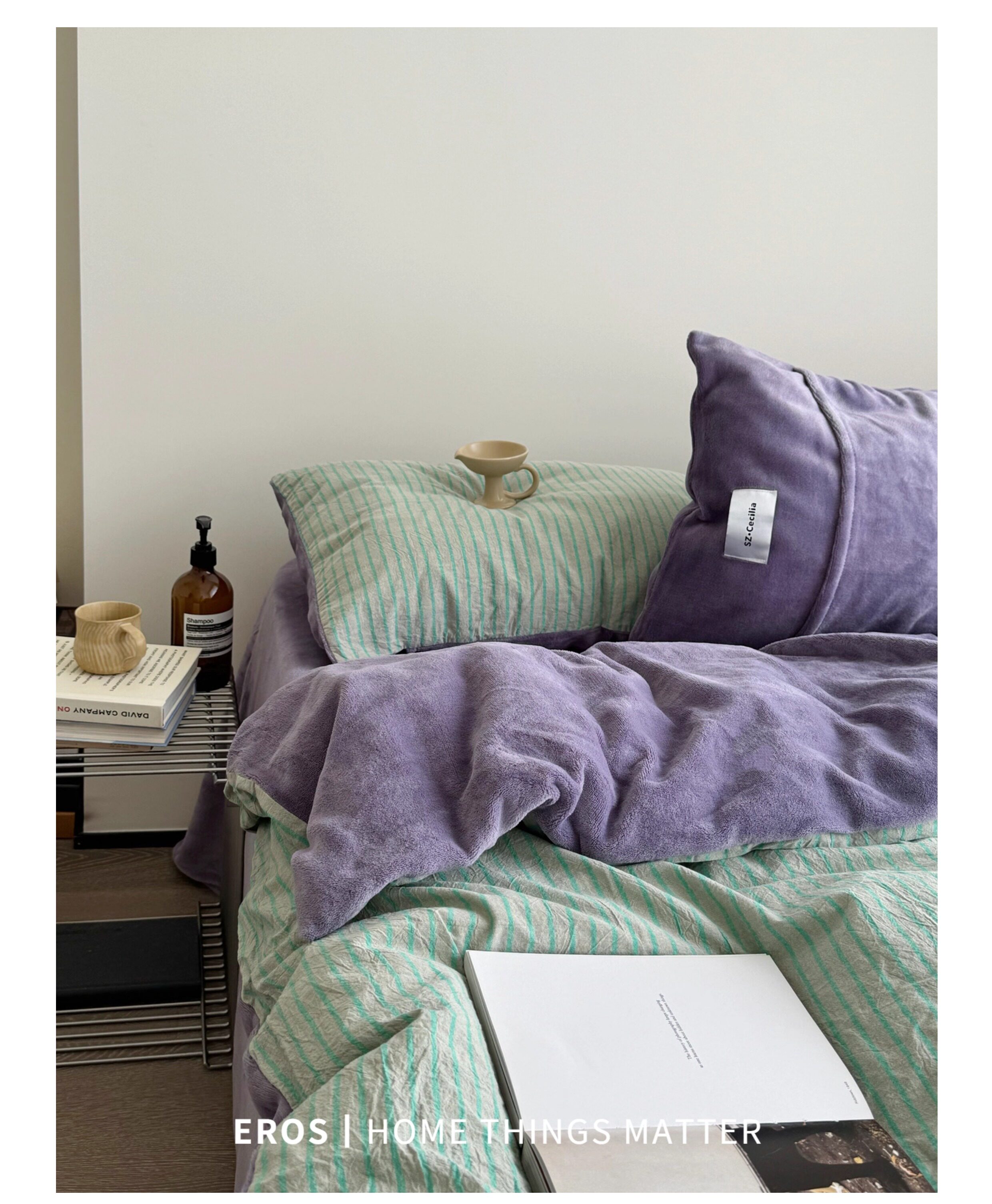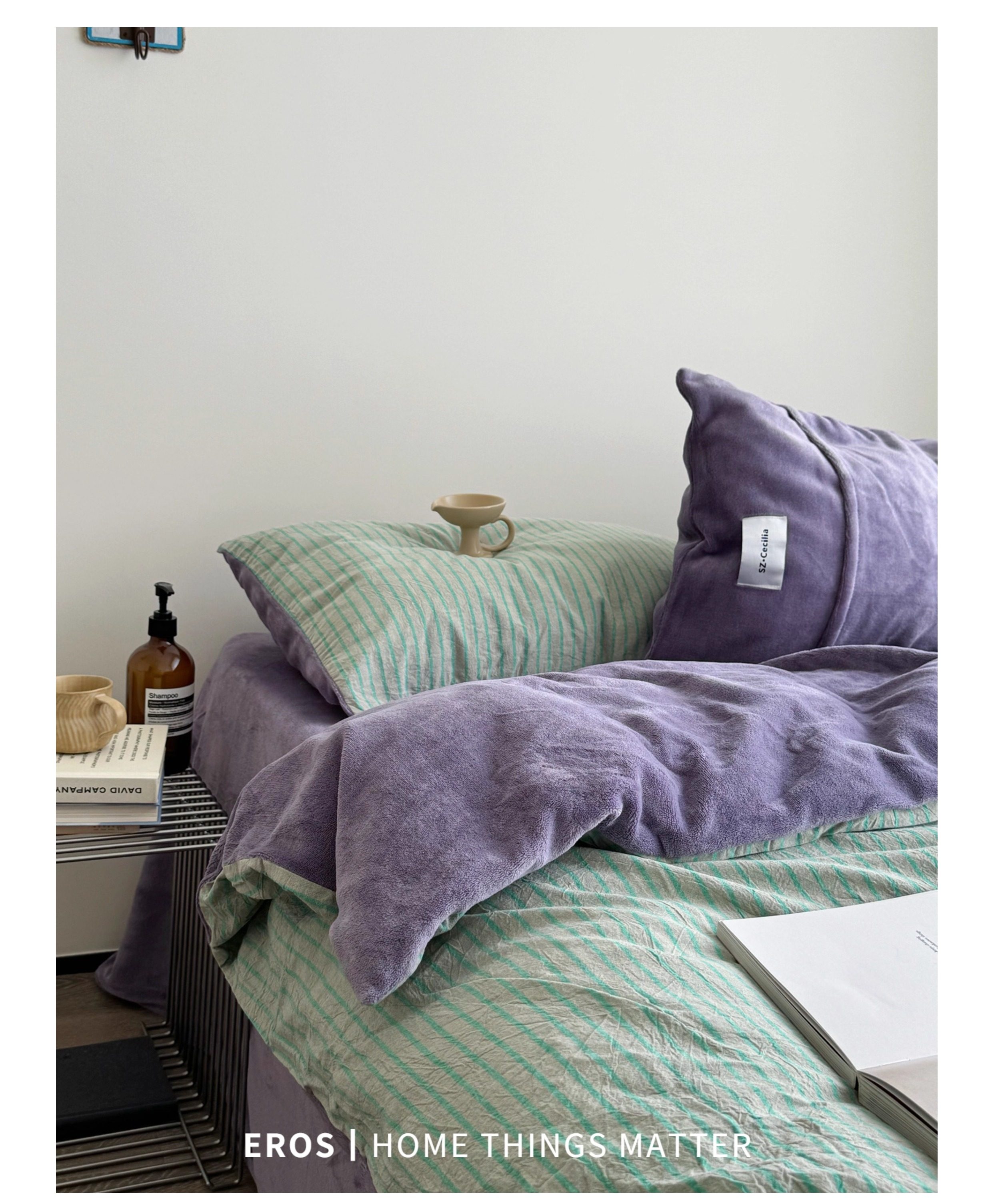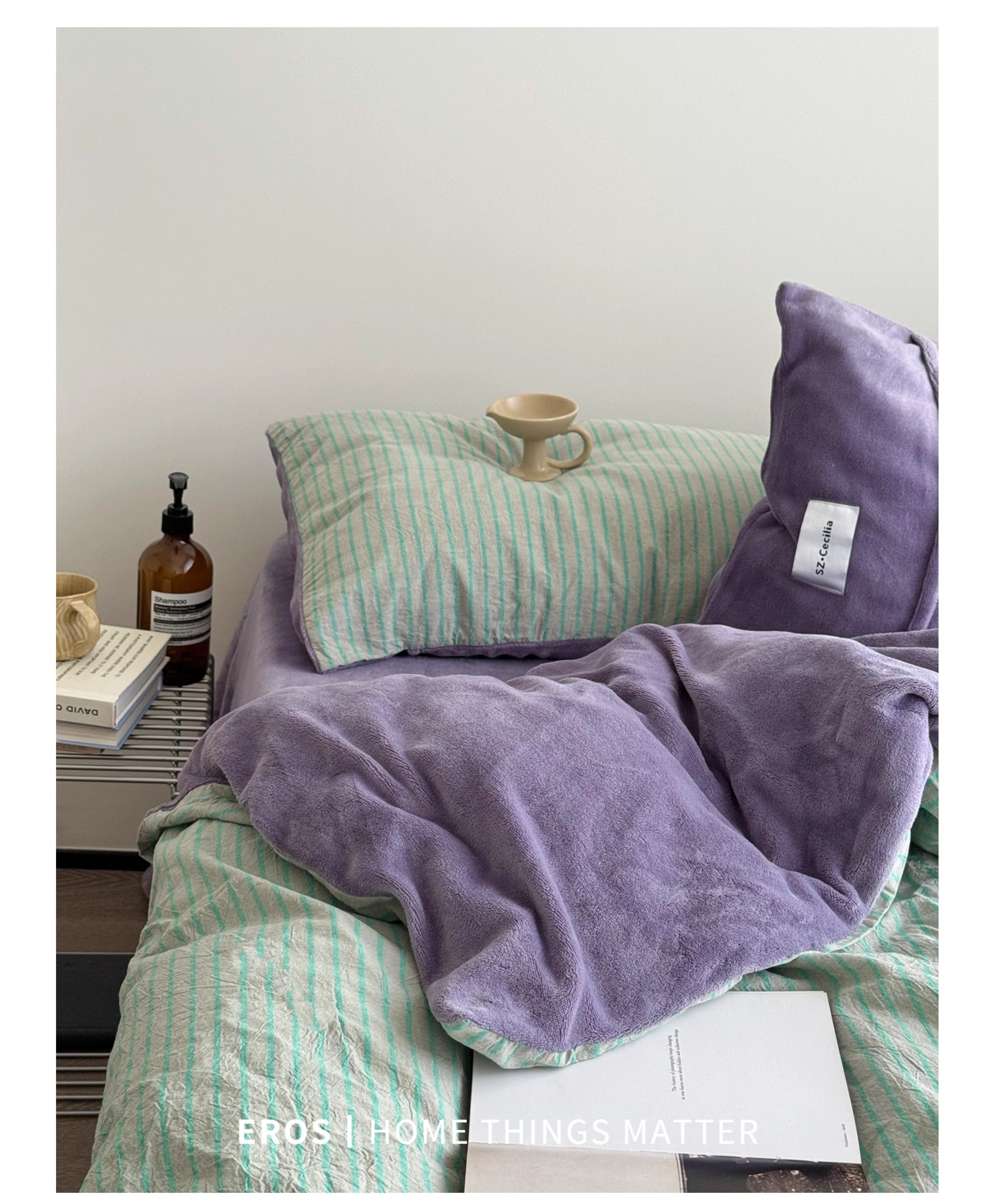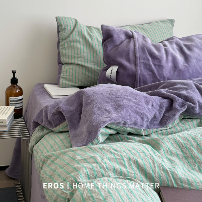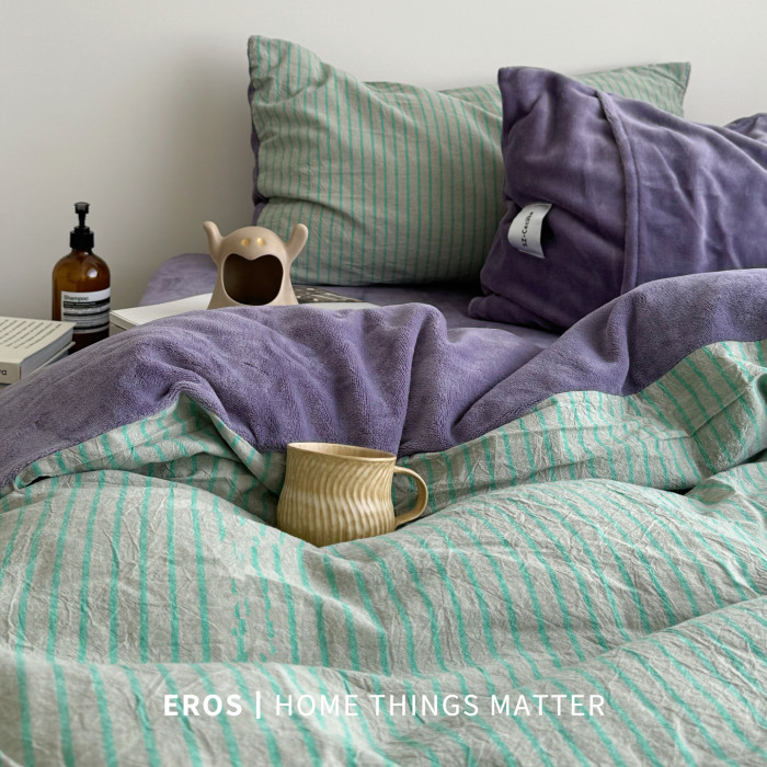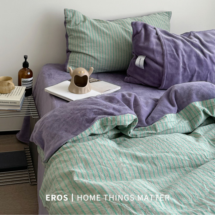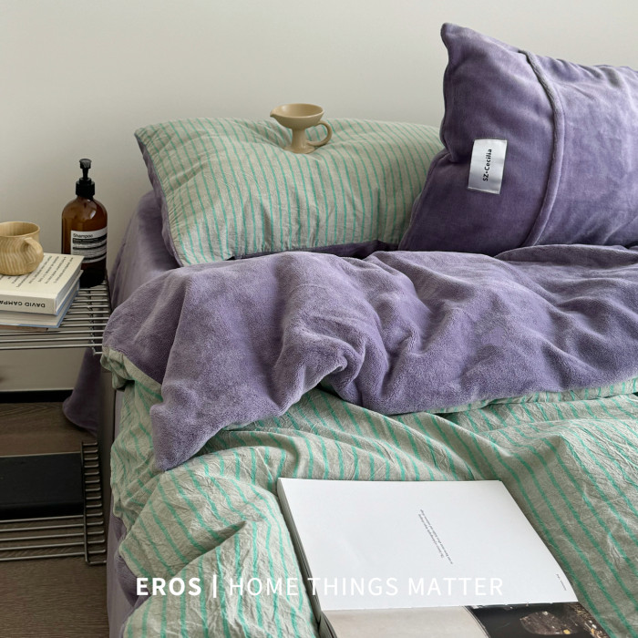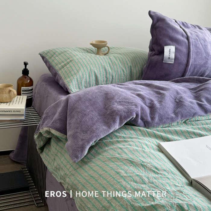 EROS自製︱暮光綠~中古風牛奶絨四件套加厚復古珊瑚絨被套ins秋冬