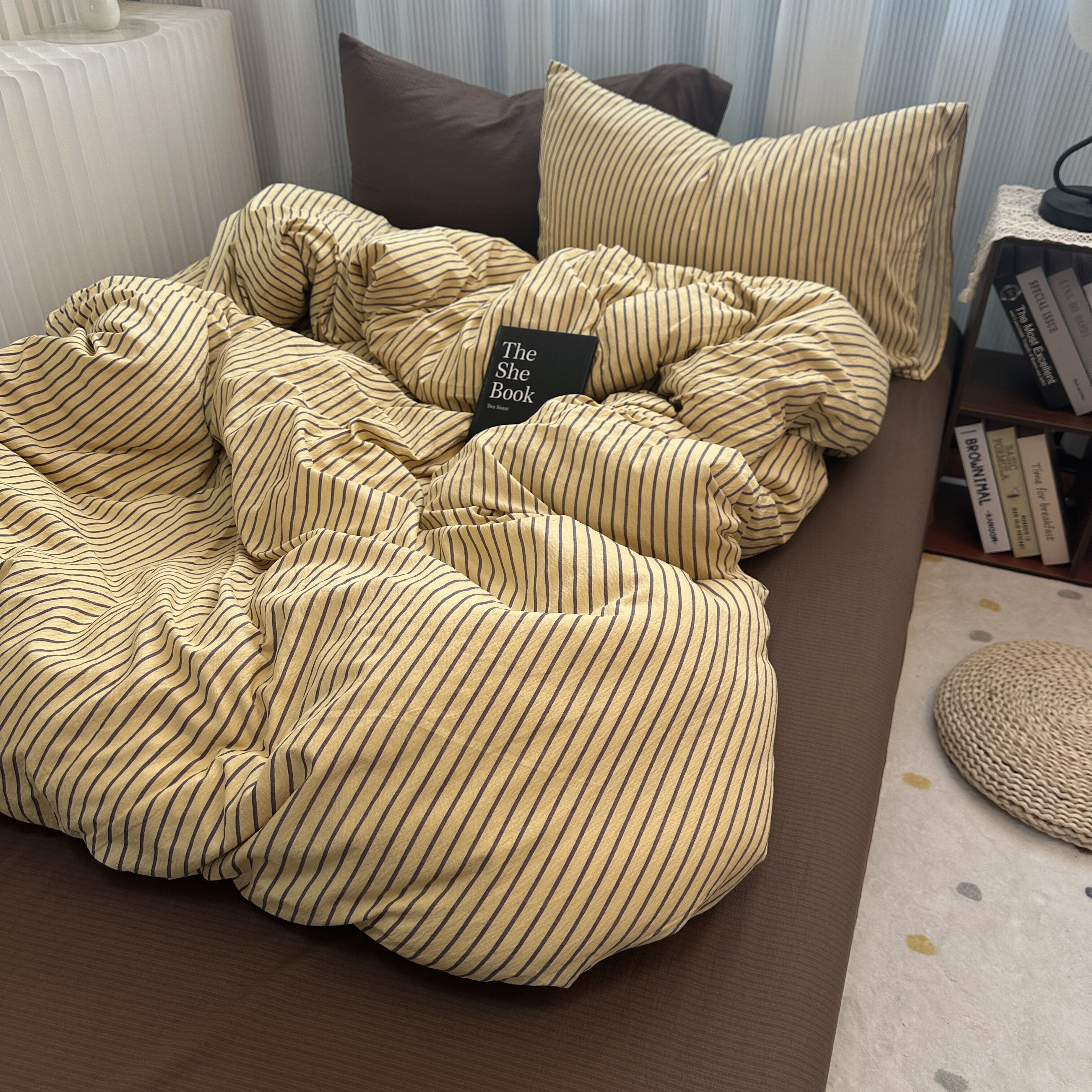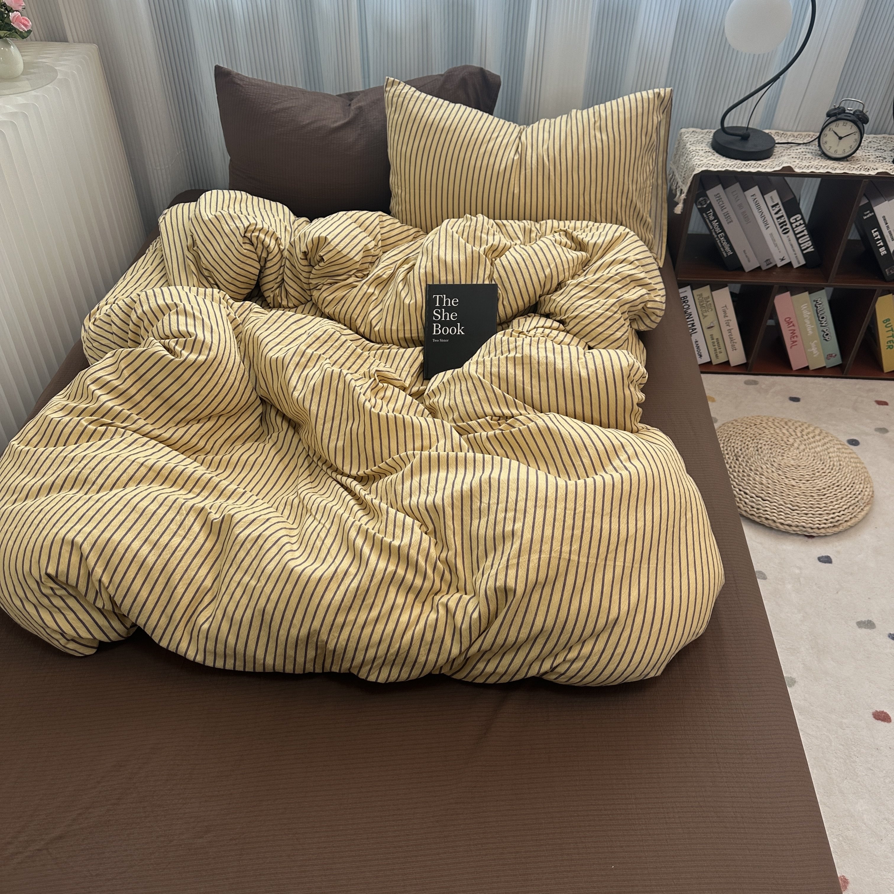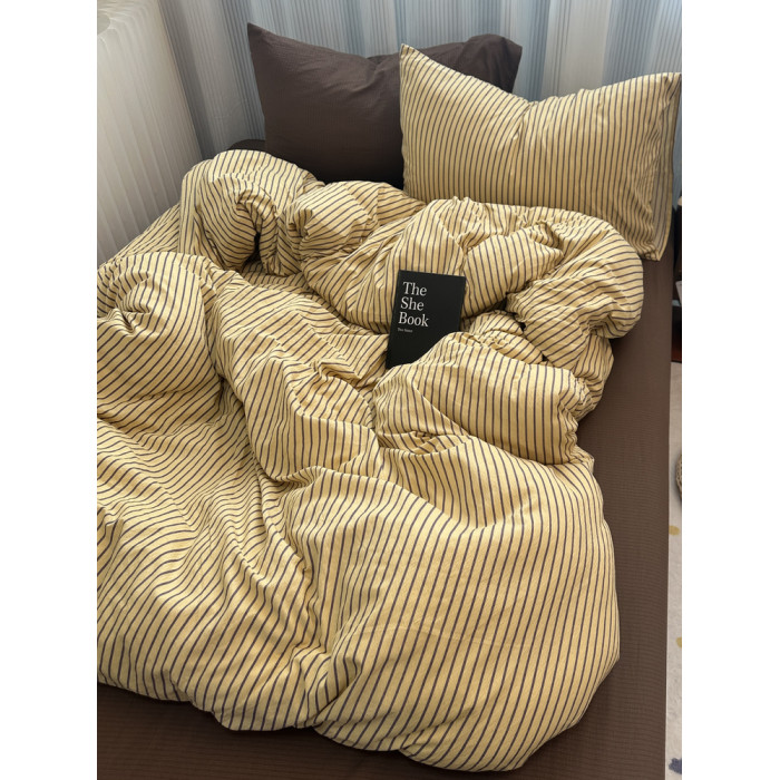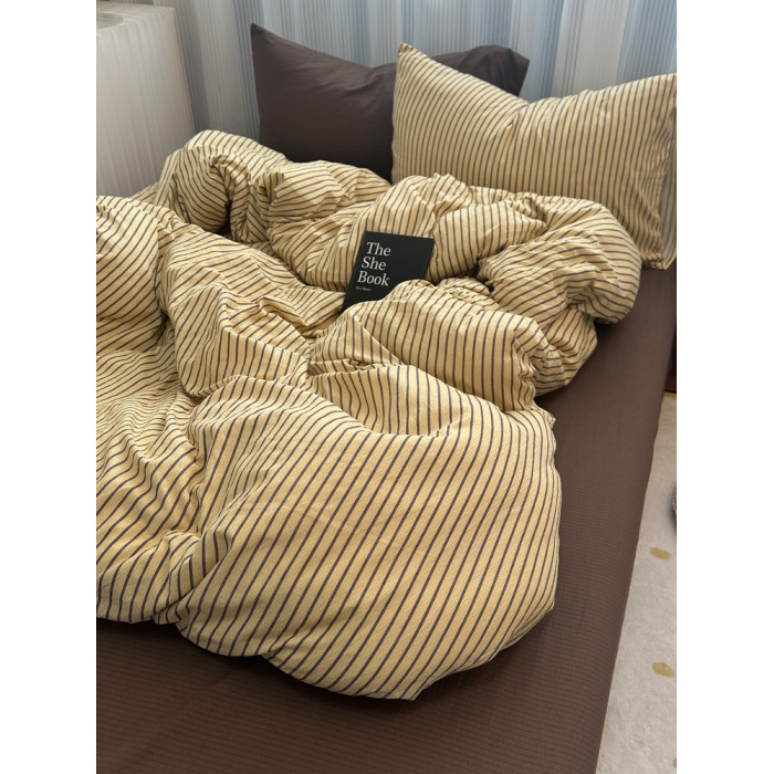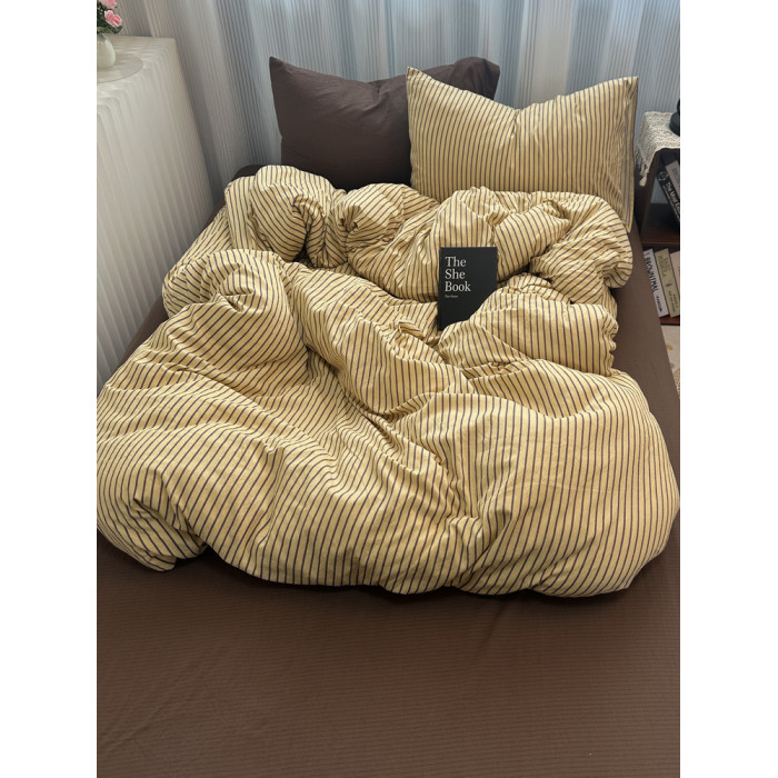 ins中古風咖色條紋純棉四件套混搭被套床單學生三件套全棉床包1.8