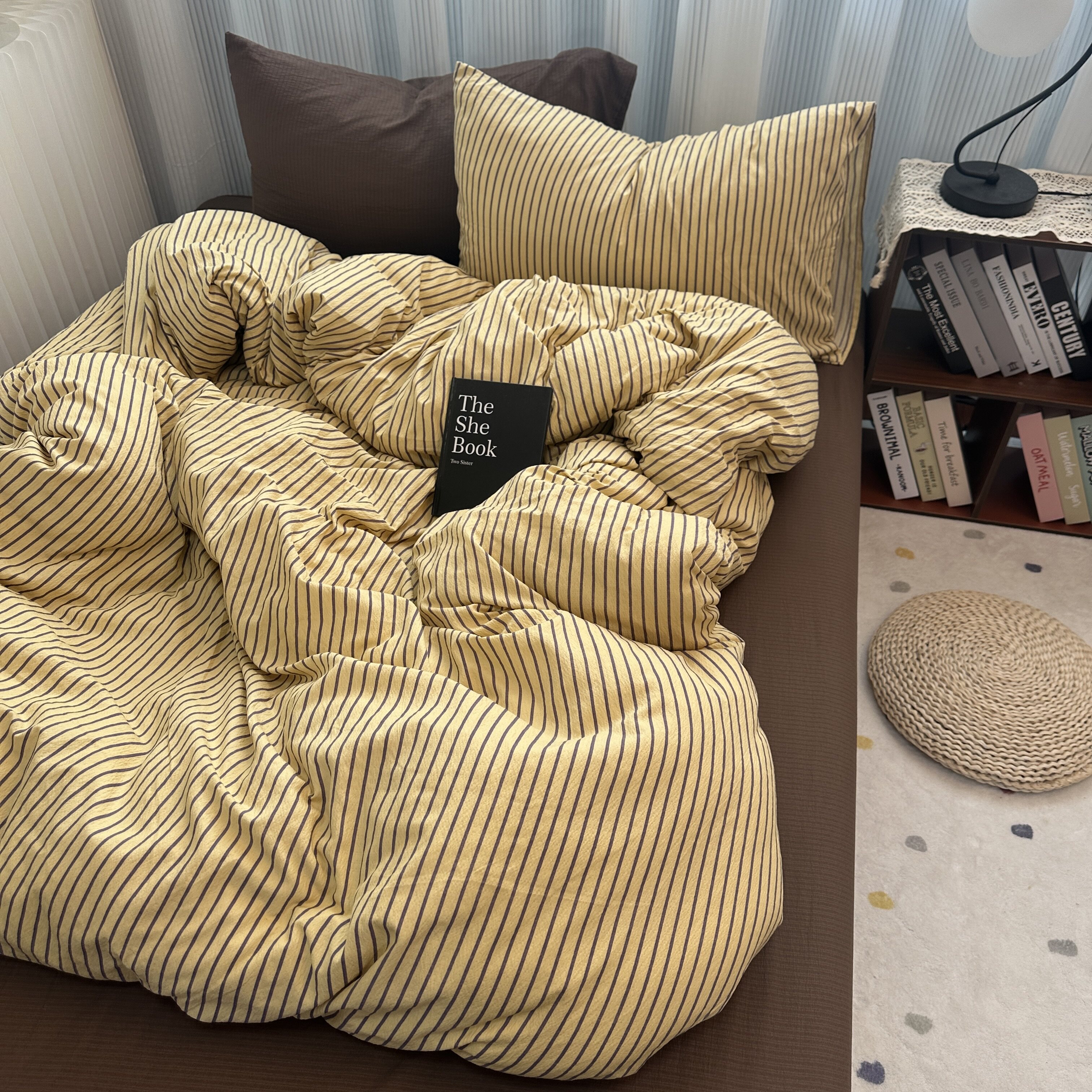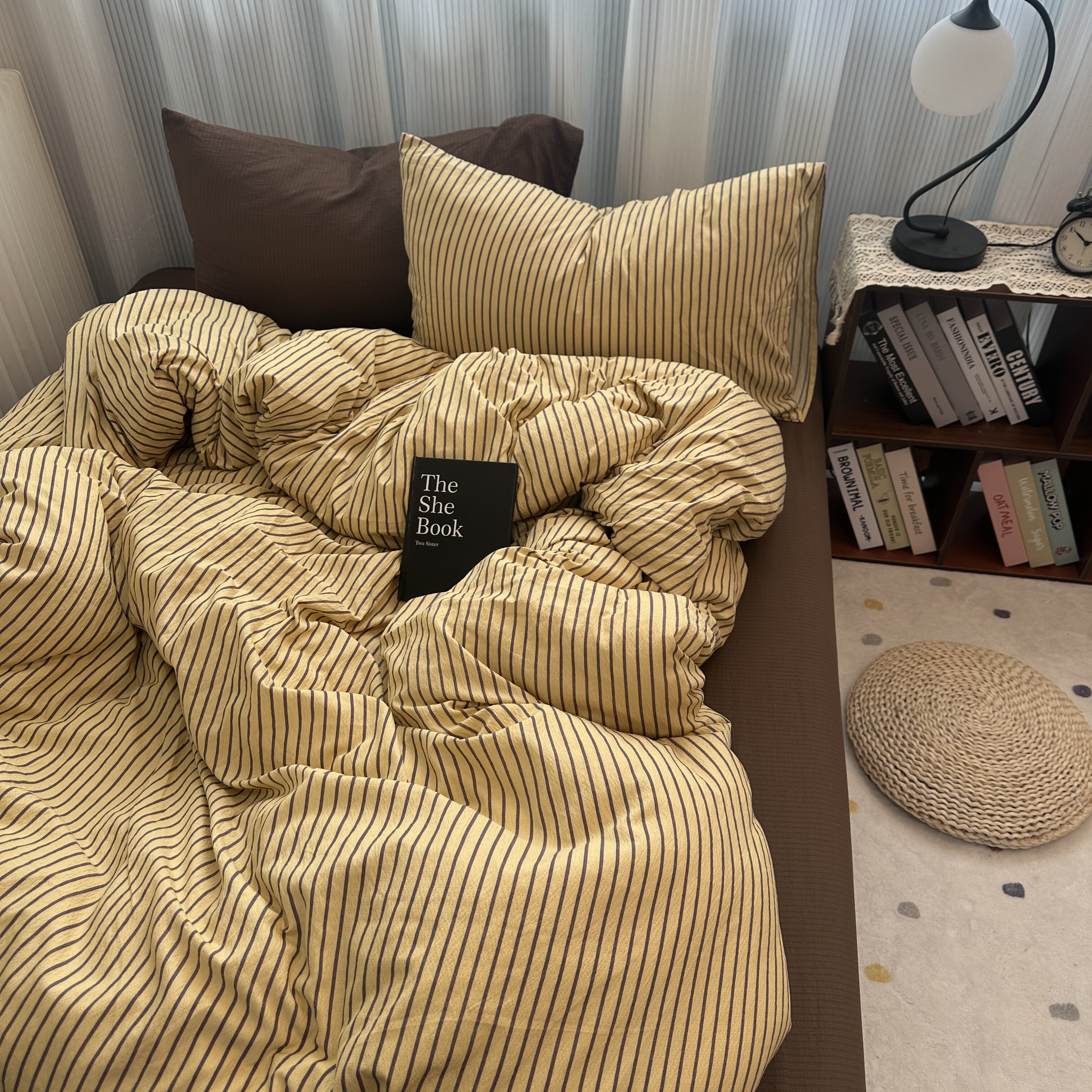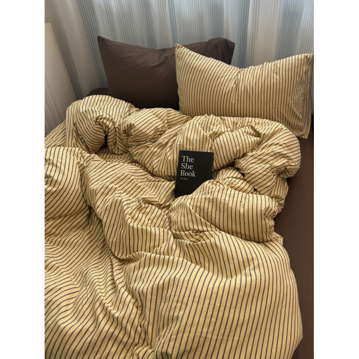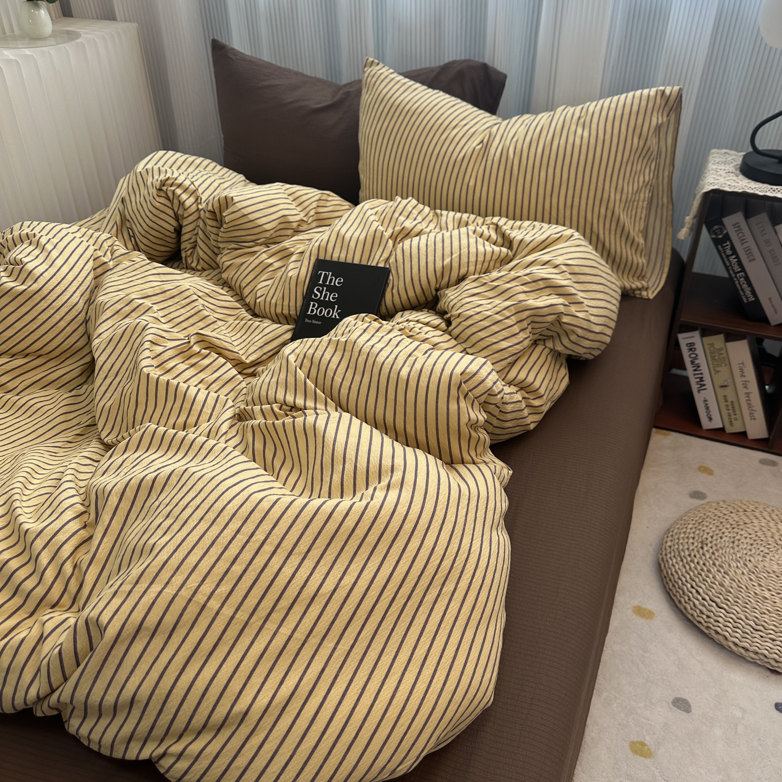 ins中古風咖色條紋純棉四件套混搭被套床單學生三件套全棉床包1.8