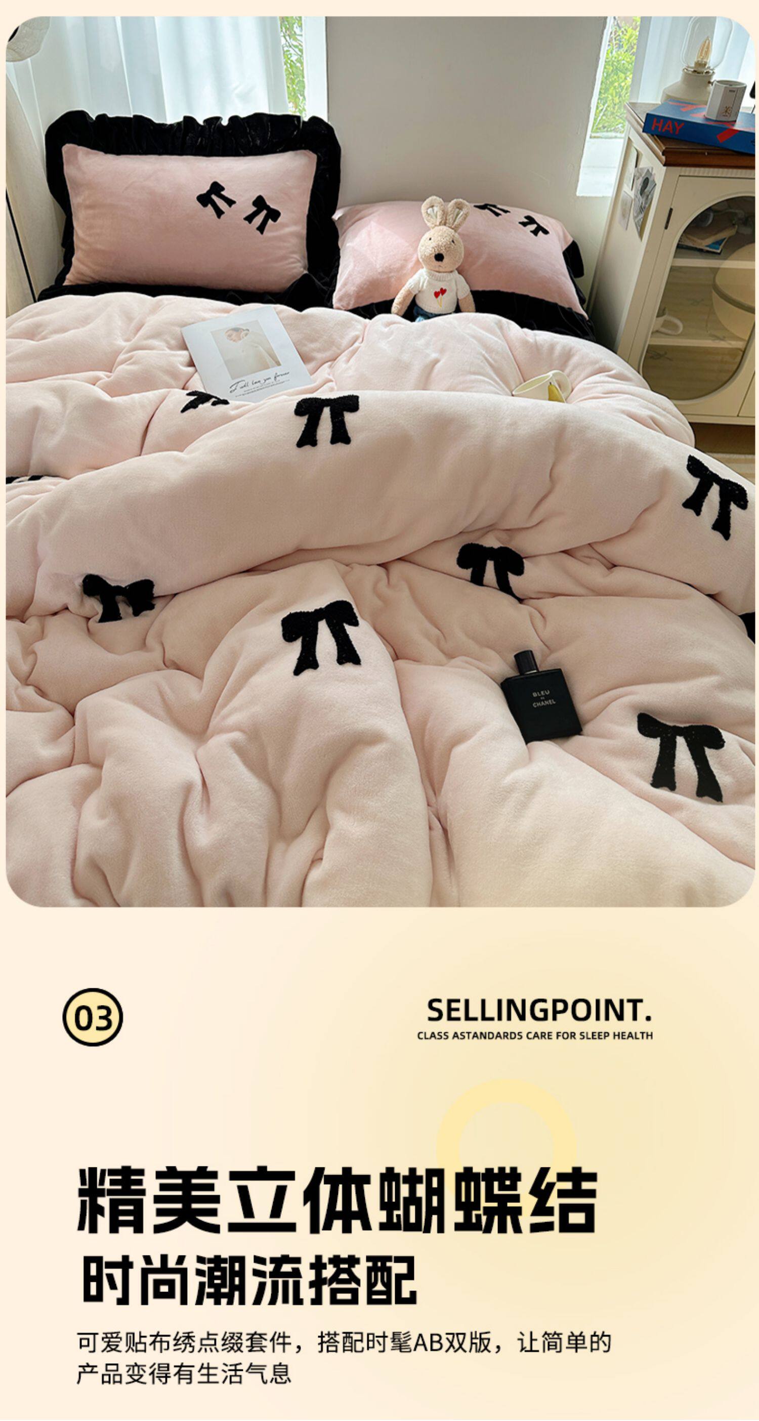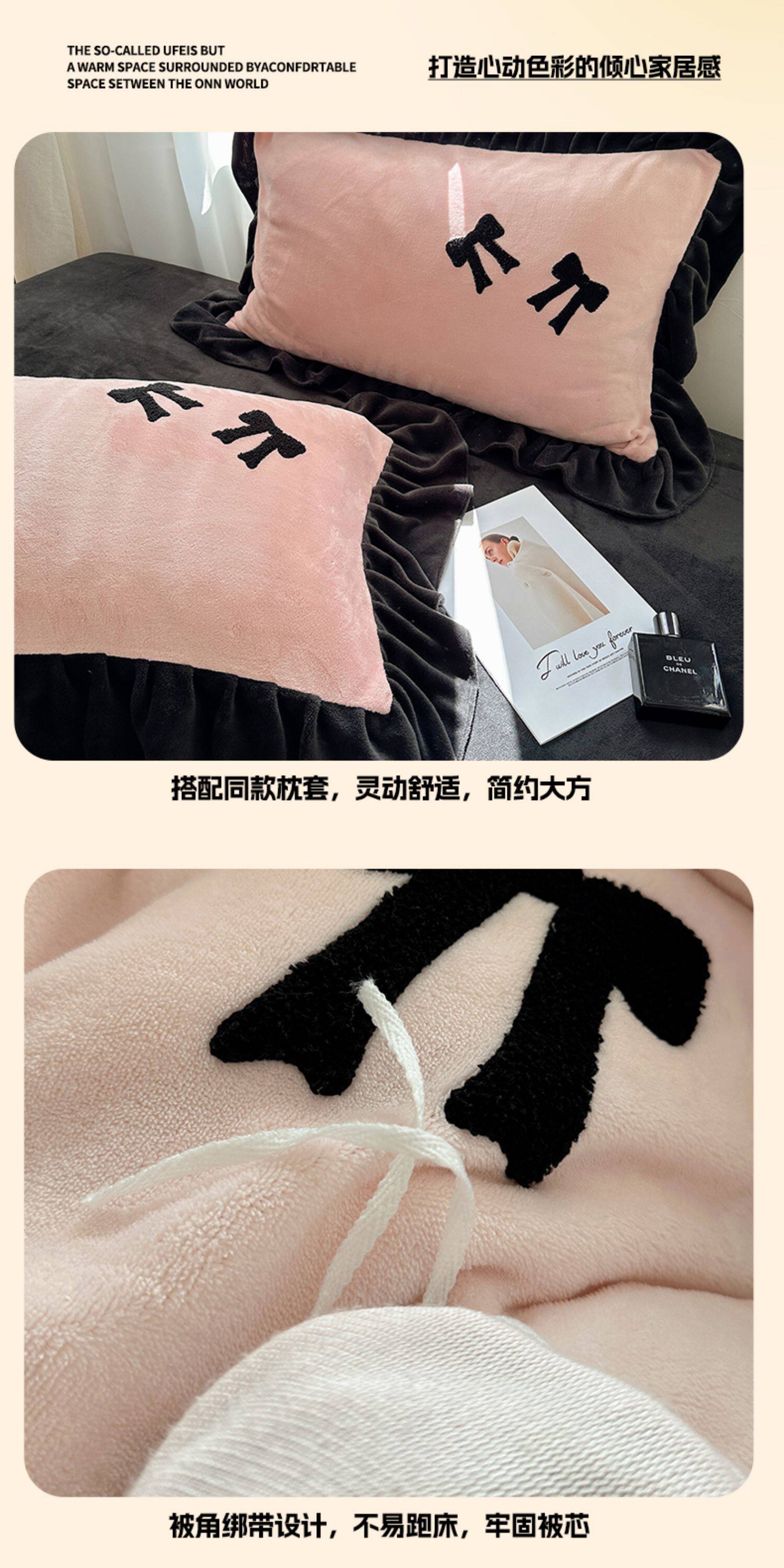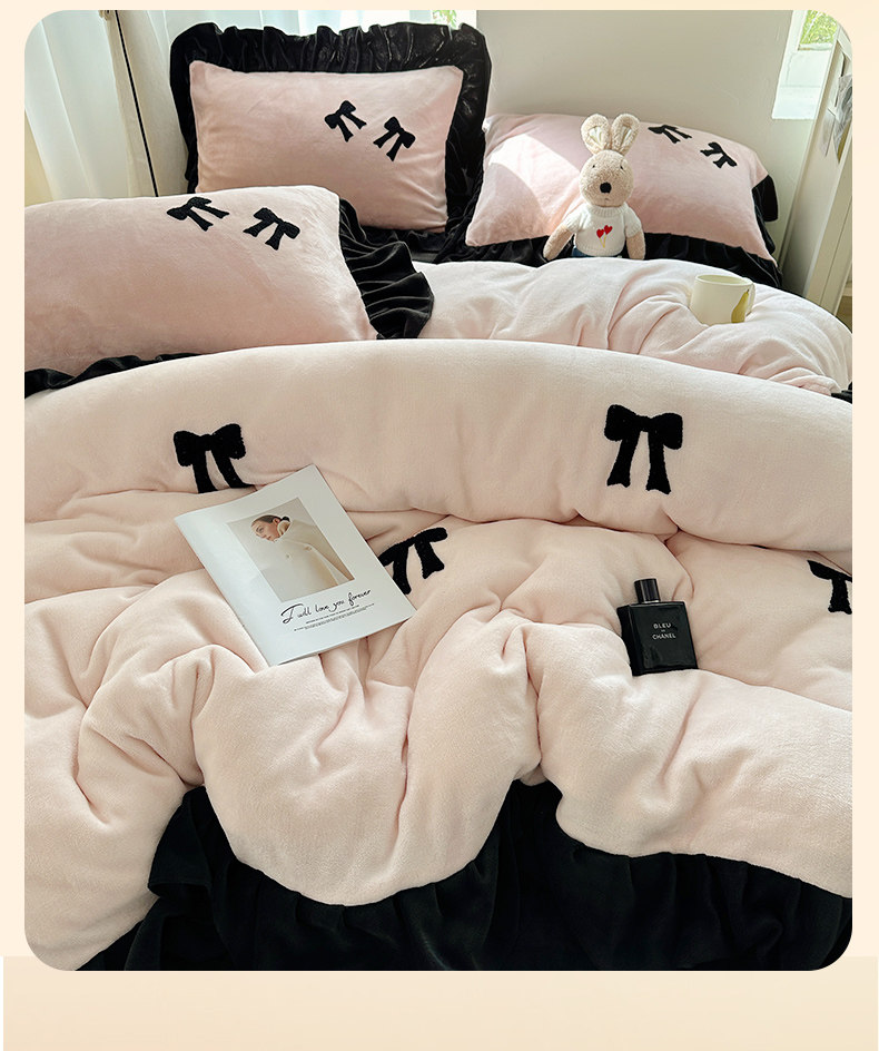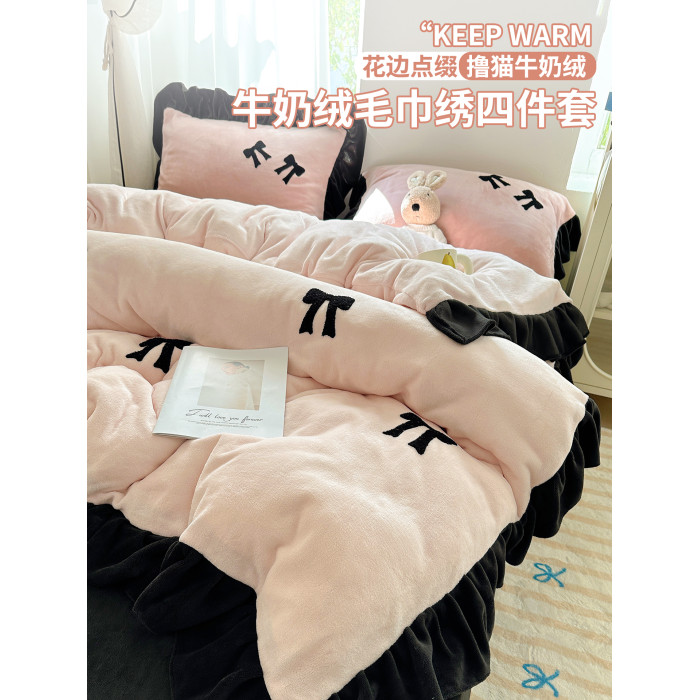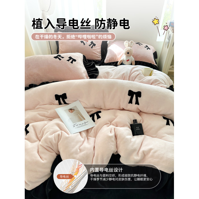 法式花邊牛奶絨四件套2025新款赫本蝴蝶結被套加厚加絨床單三件套