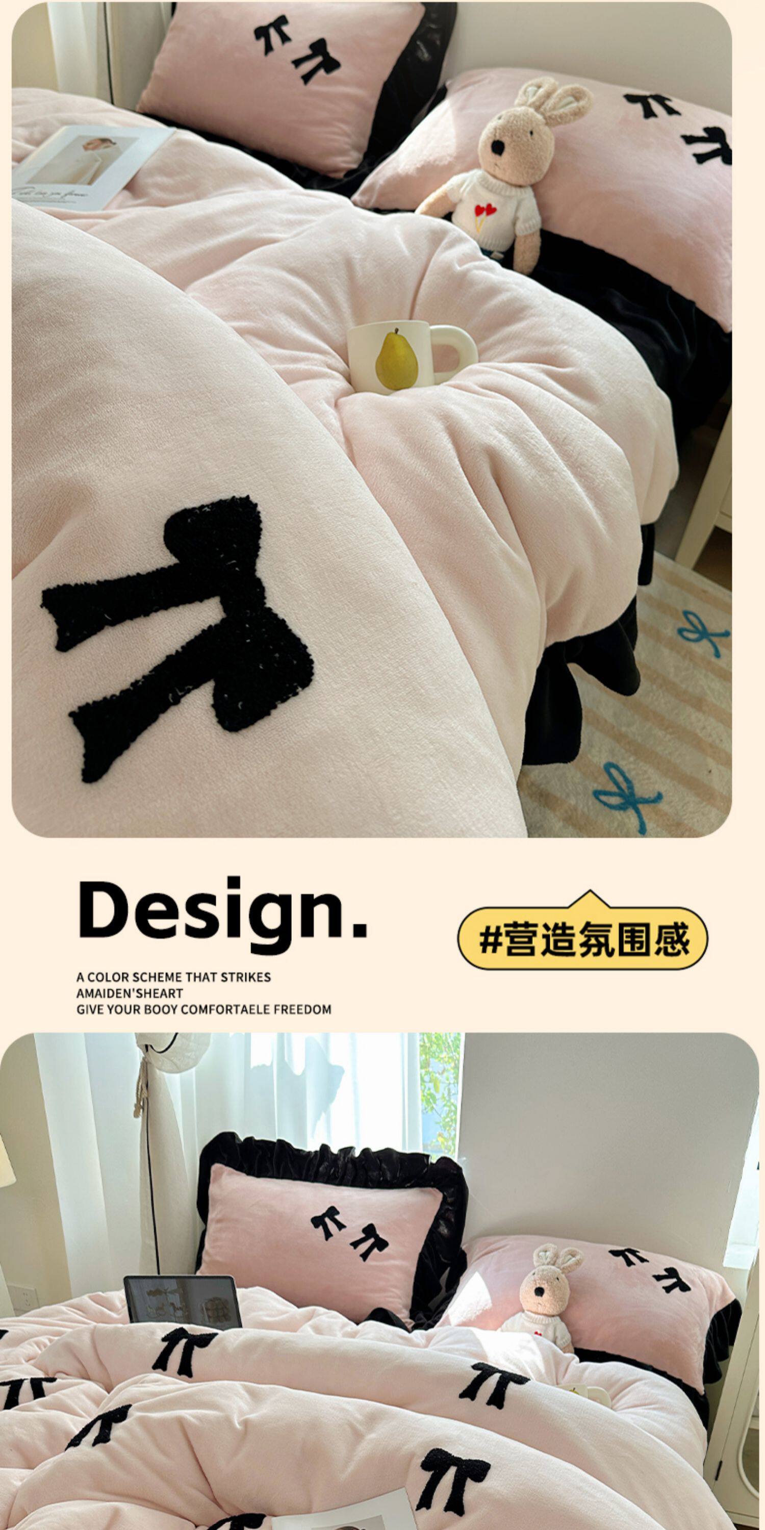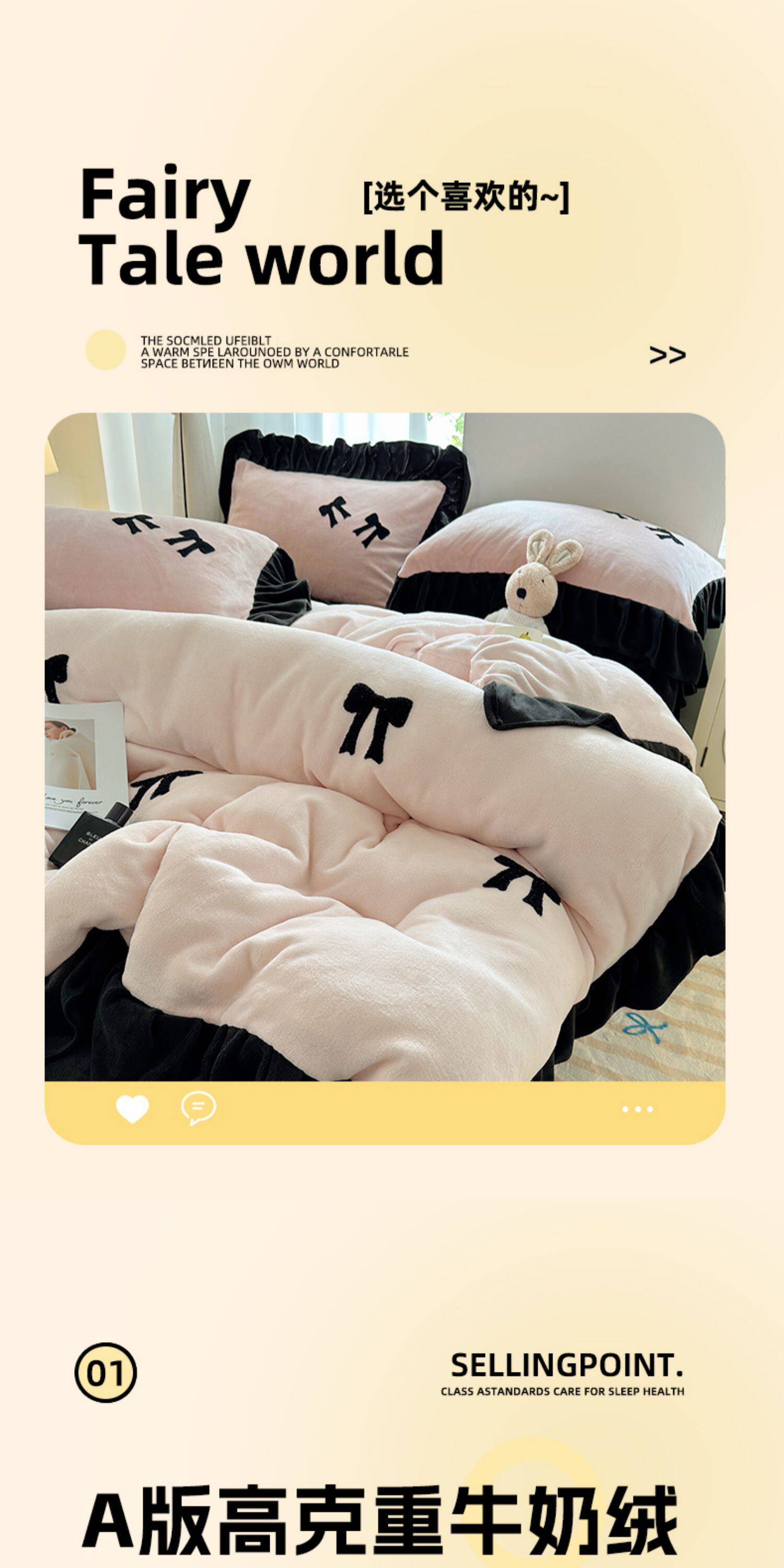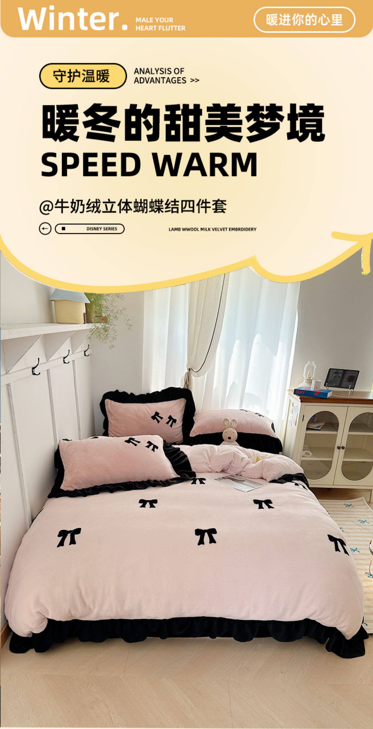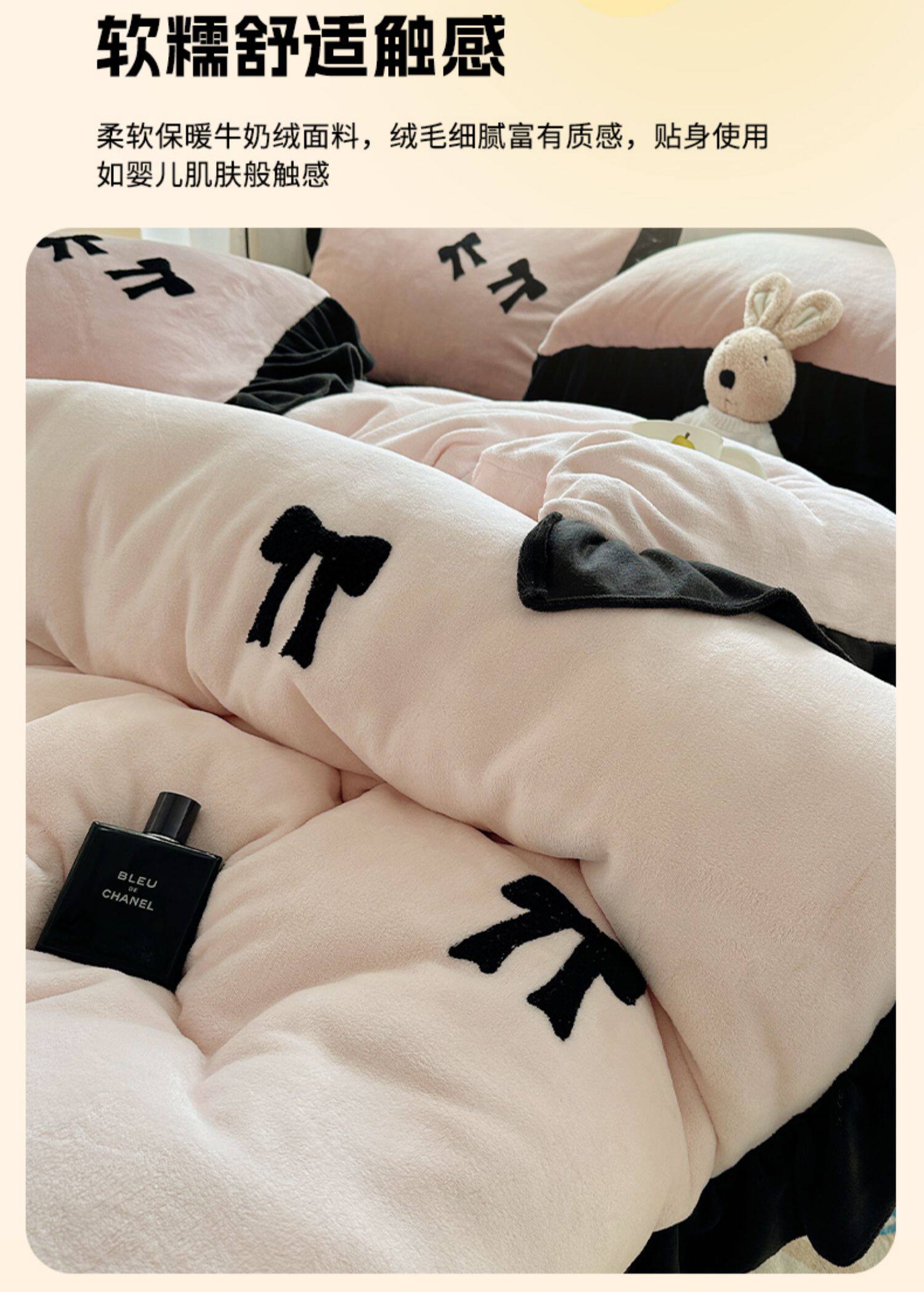 法式花邊牛奶絨四件套2025新款赫本蝴蝶結被套加厚加絨床單三件套