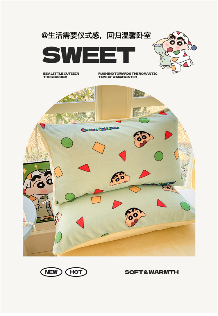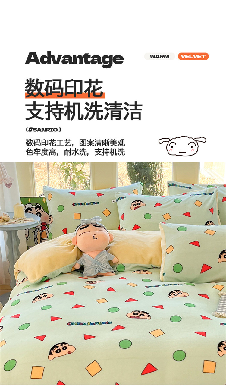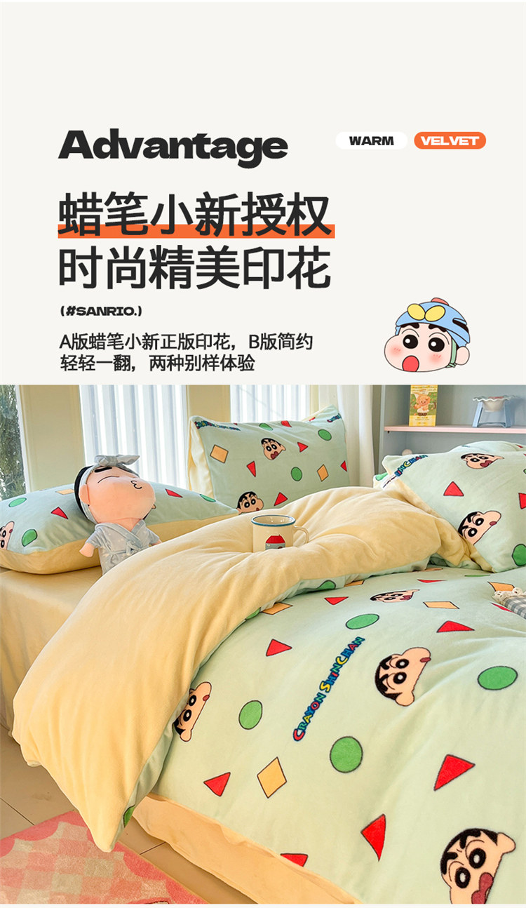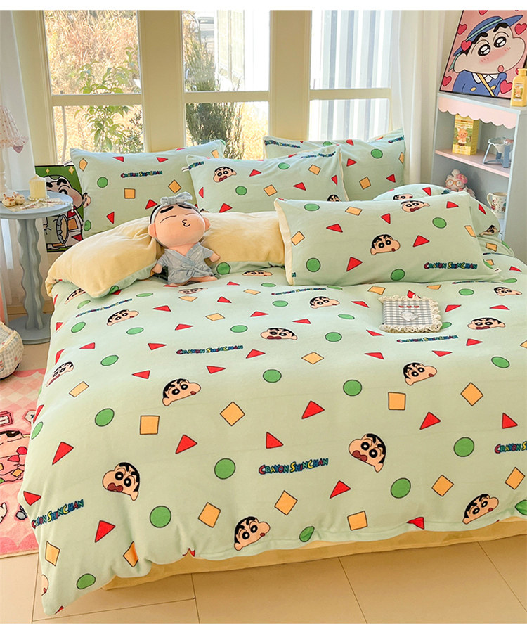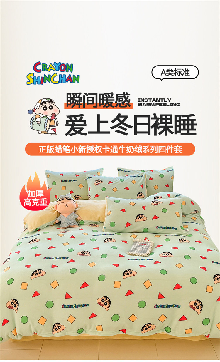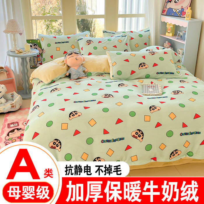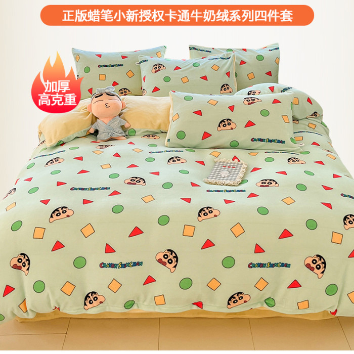 蠟筆小新冬季牛奶絨四件套兒童雙面珊瑚絨加厚法蘭絨床上三件套