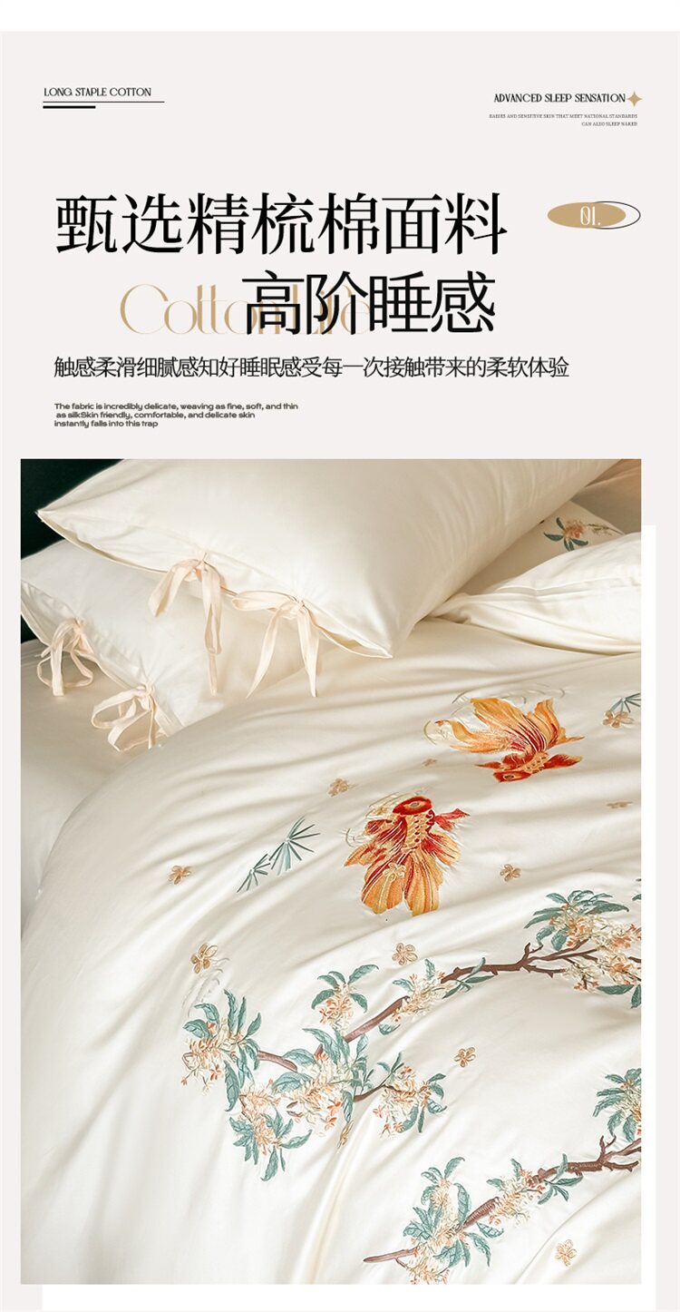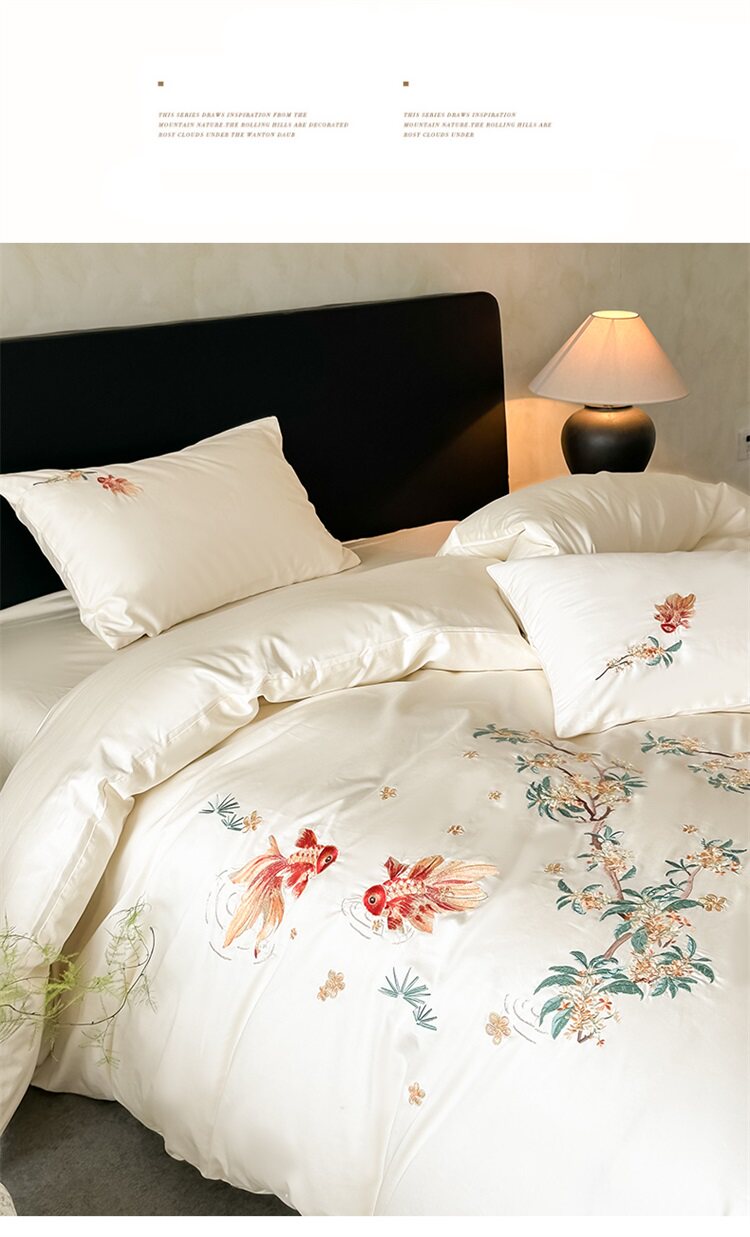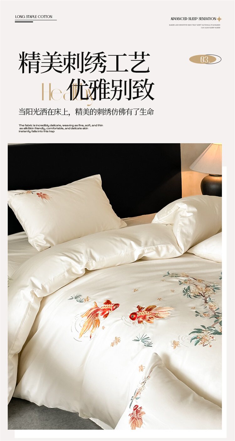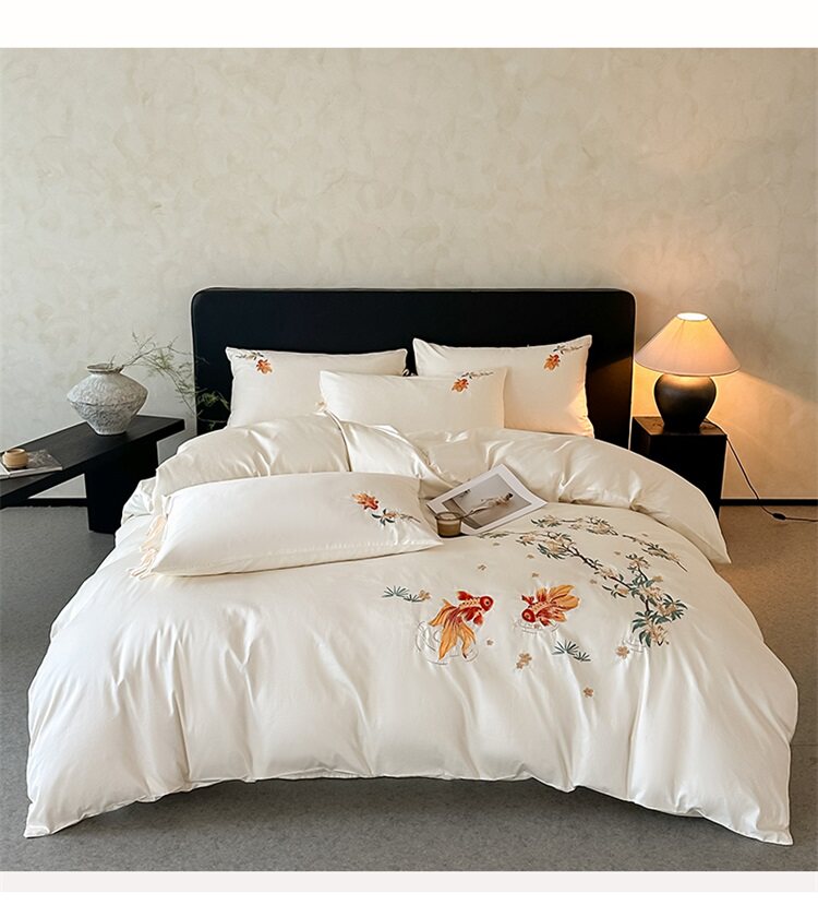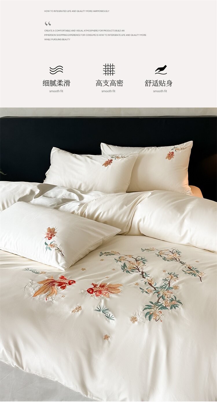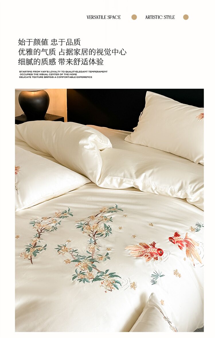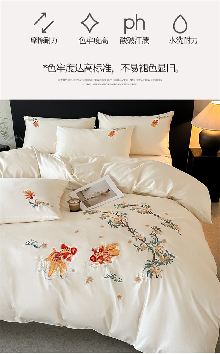 輕奢新中式水洗棉刺綉床上四件套親膚高級感主臥室床單被套床品