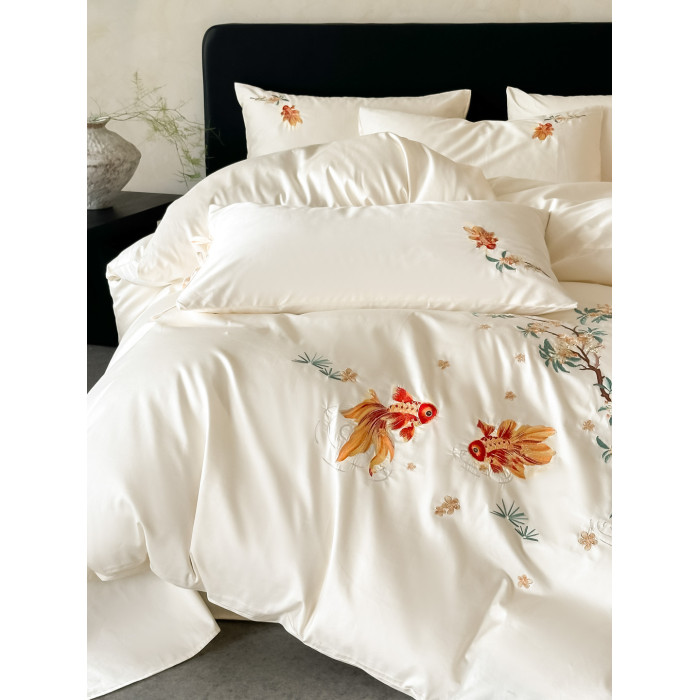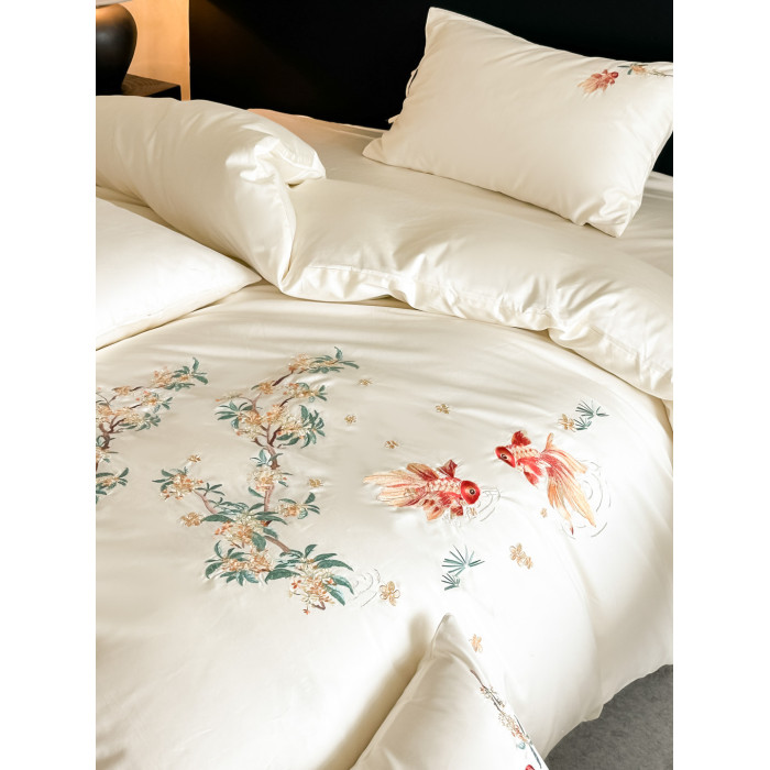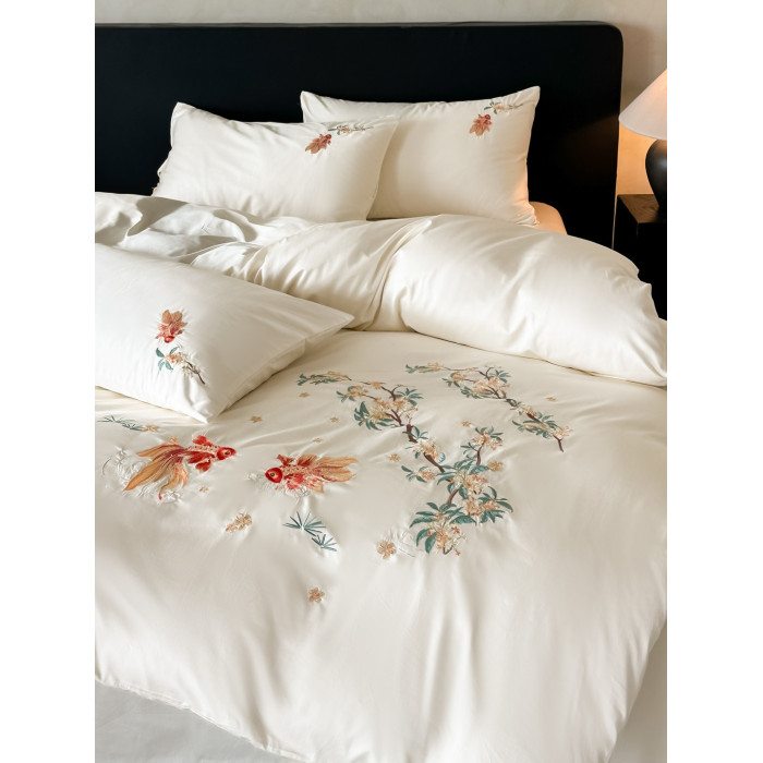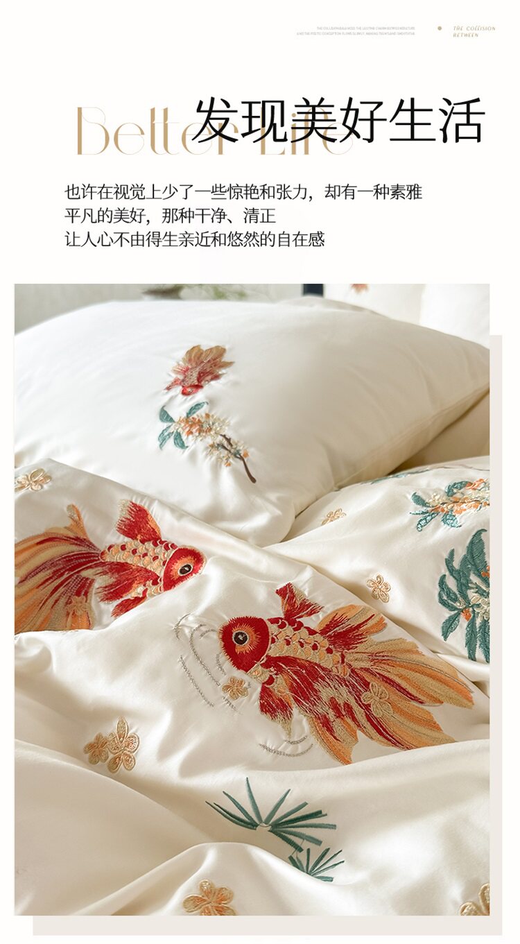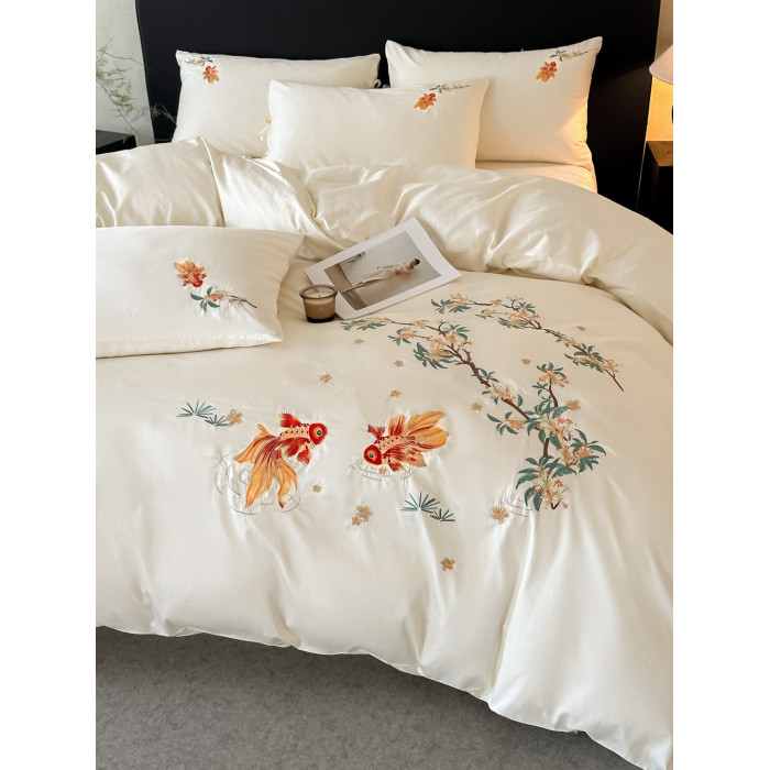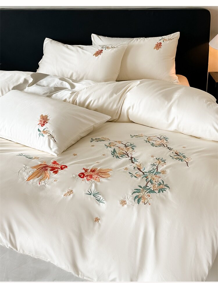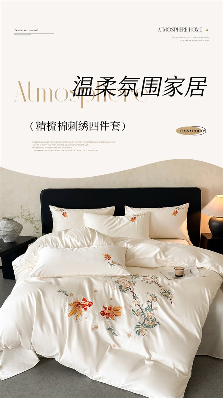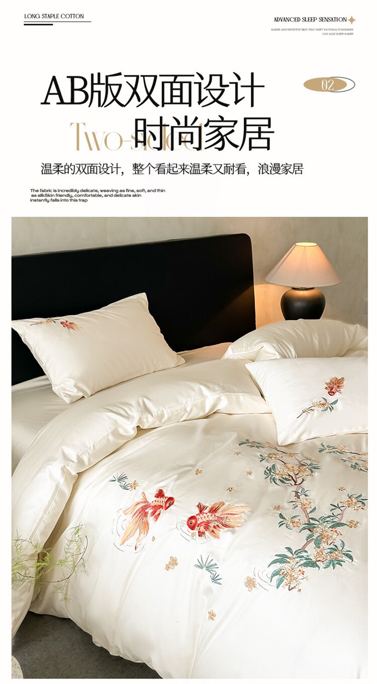 輕奢新中式水洗棉刺綉床上四件套親膚高級感主臥室床單被套床品