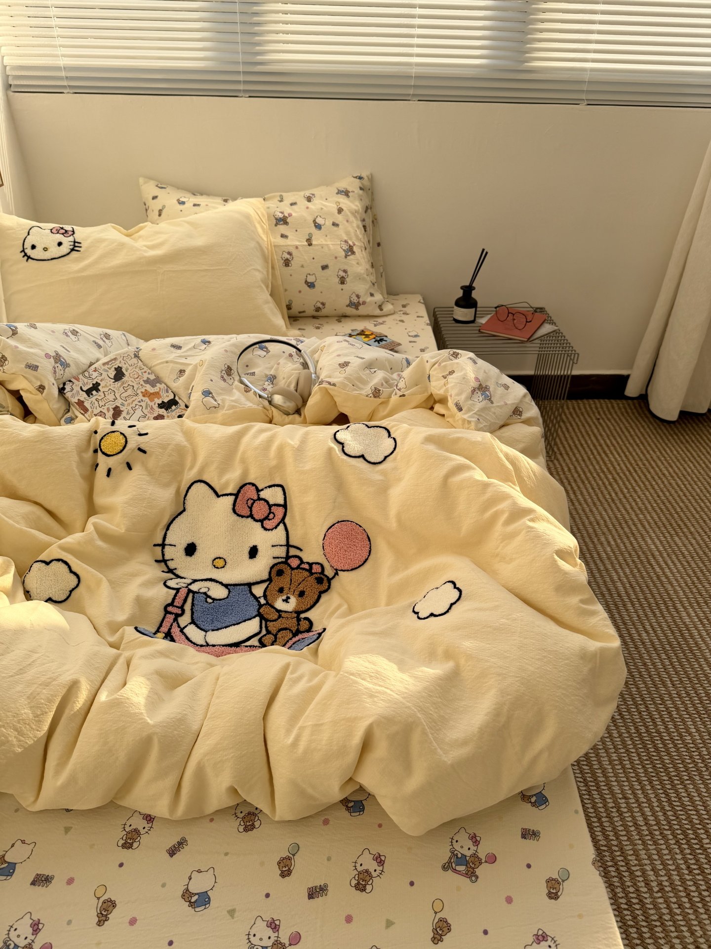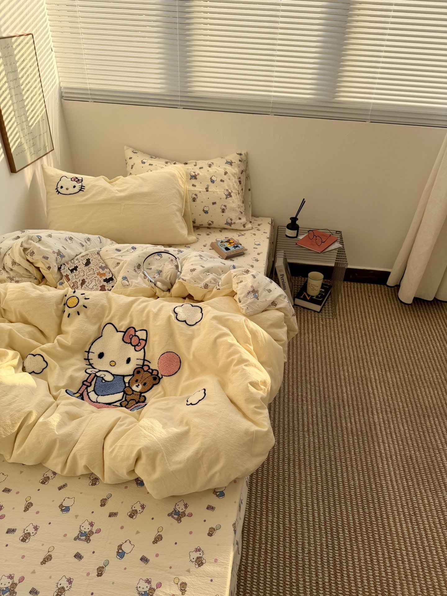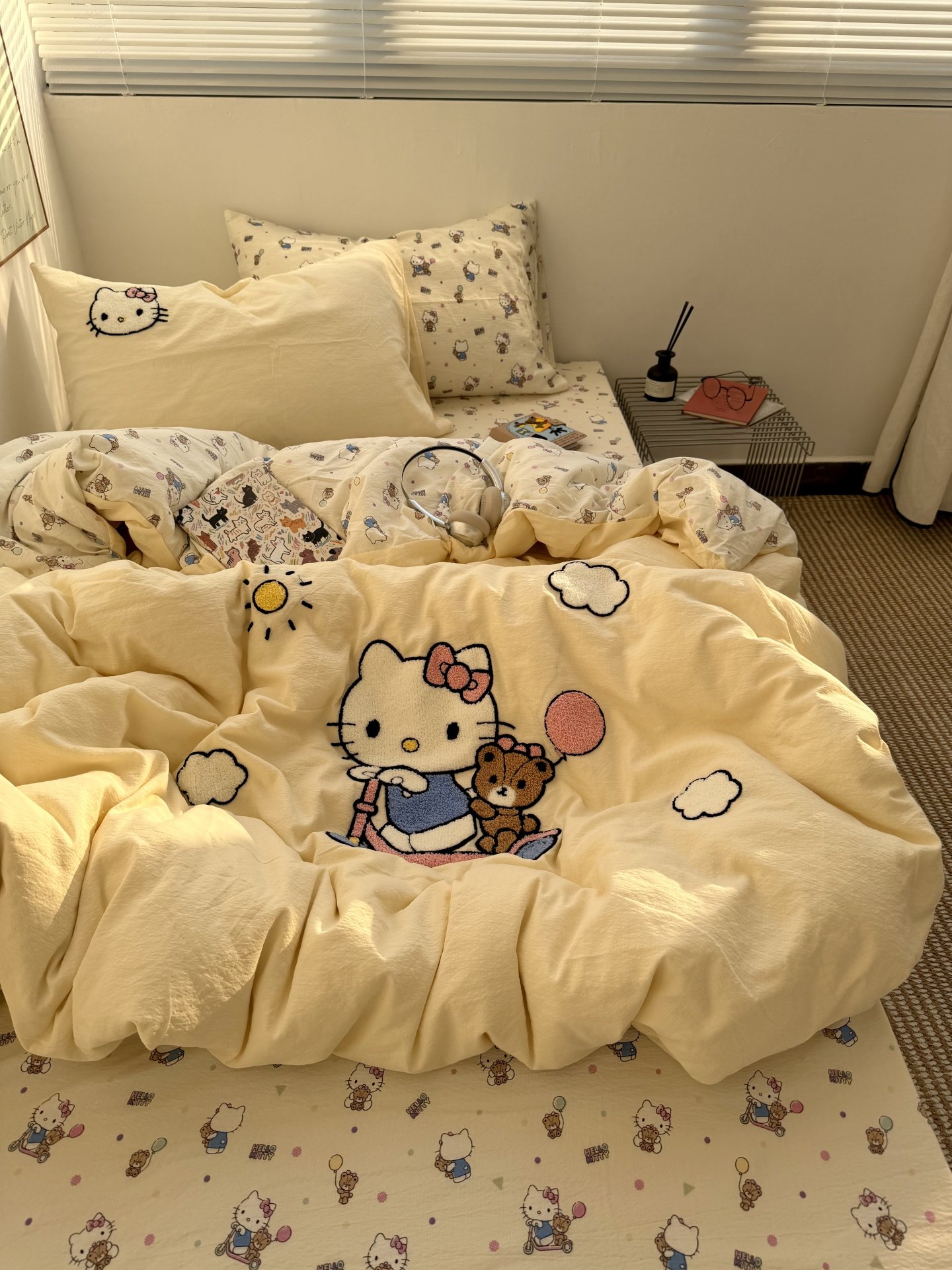 ins奶油黃可愛滑板kt毛巾綉水洗棉床單四件套純棉被套全棉三件套