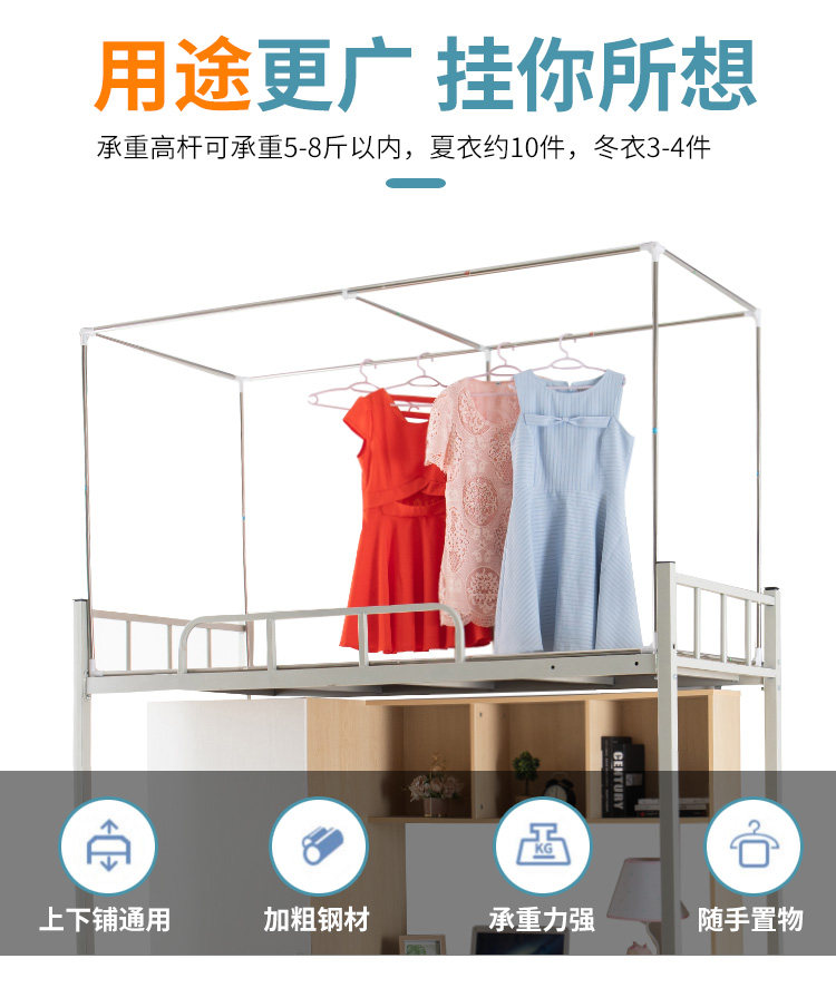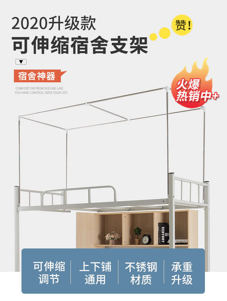 可伸縮款學生宿捨蚊帳支架加厚寢室床簾上鋪單人架子下鋪床桿加粗