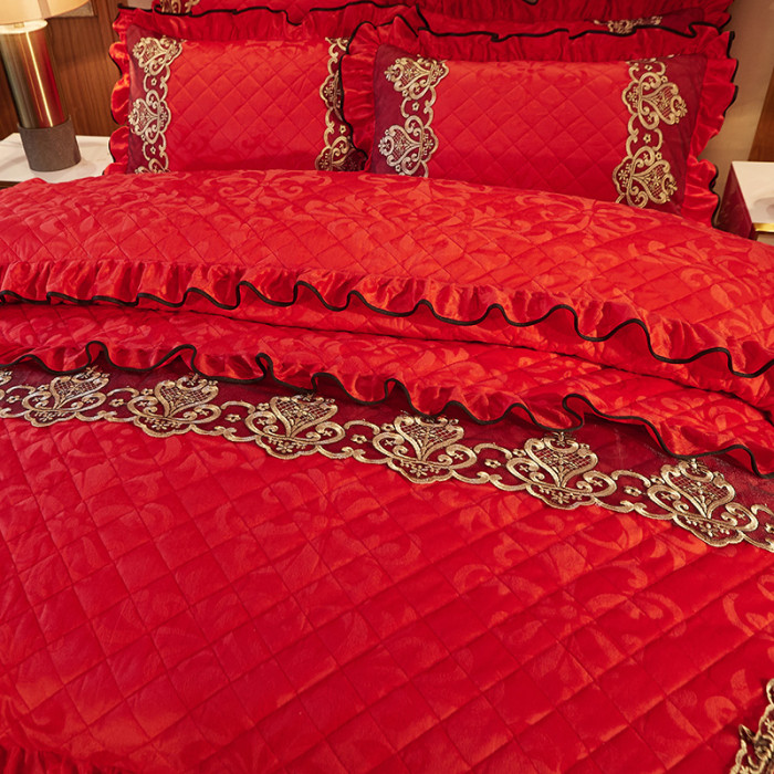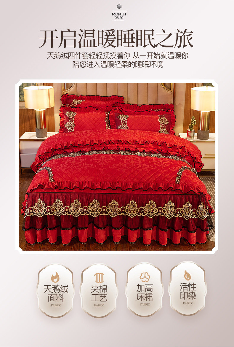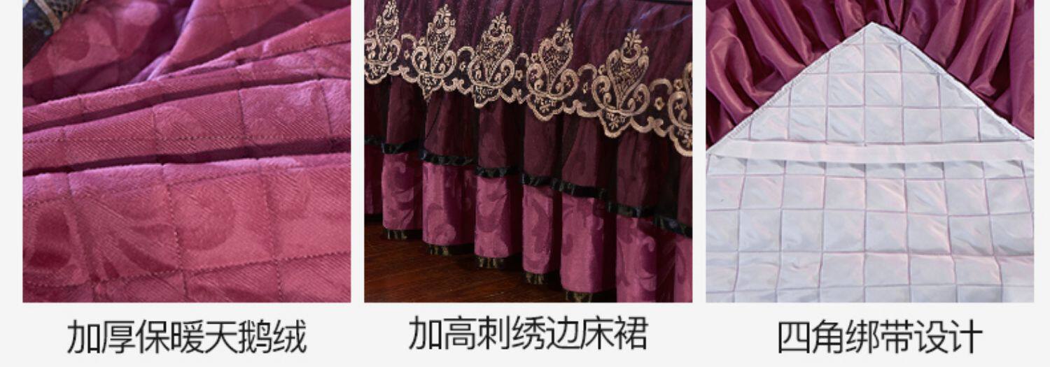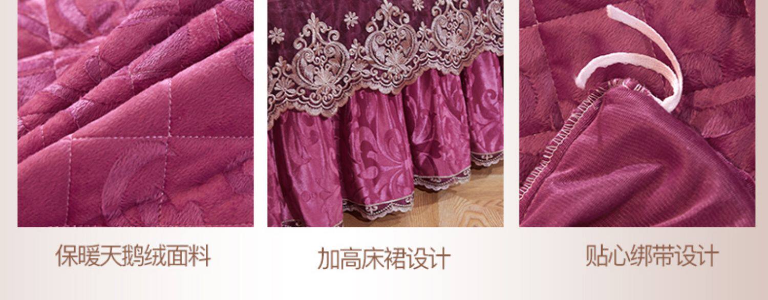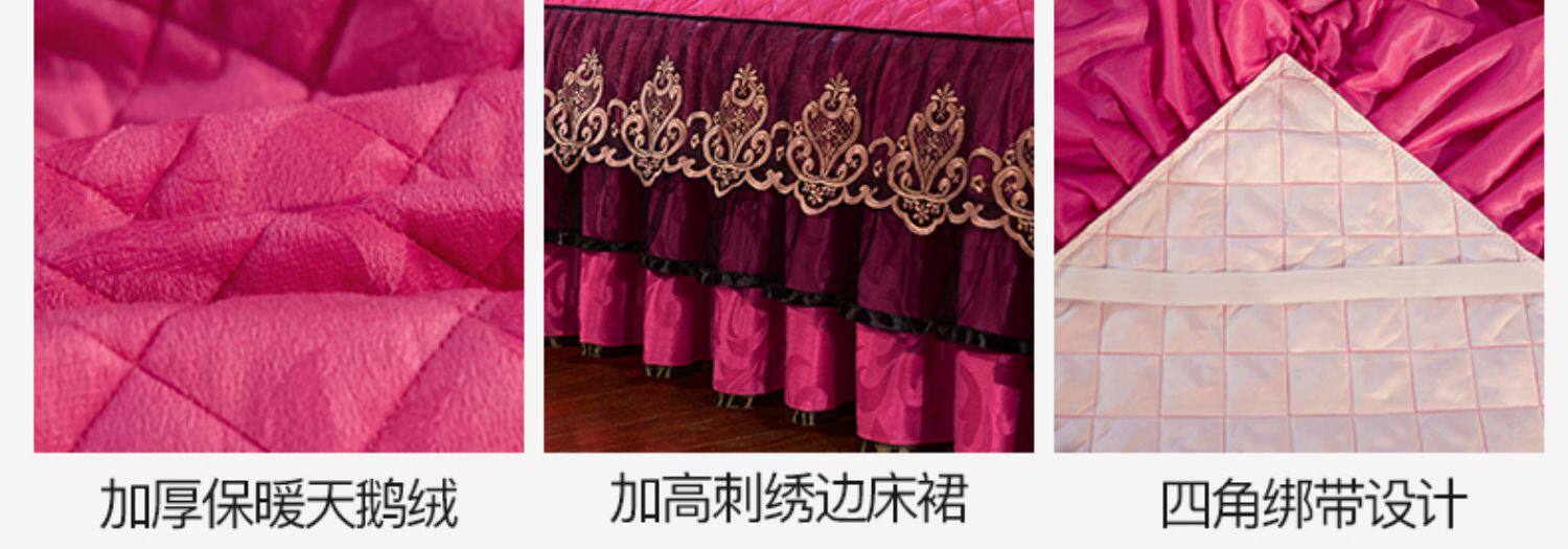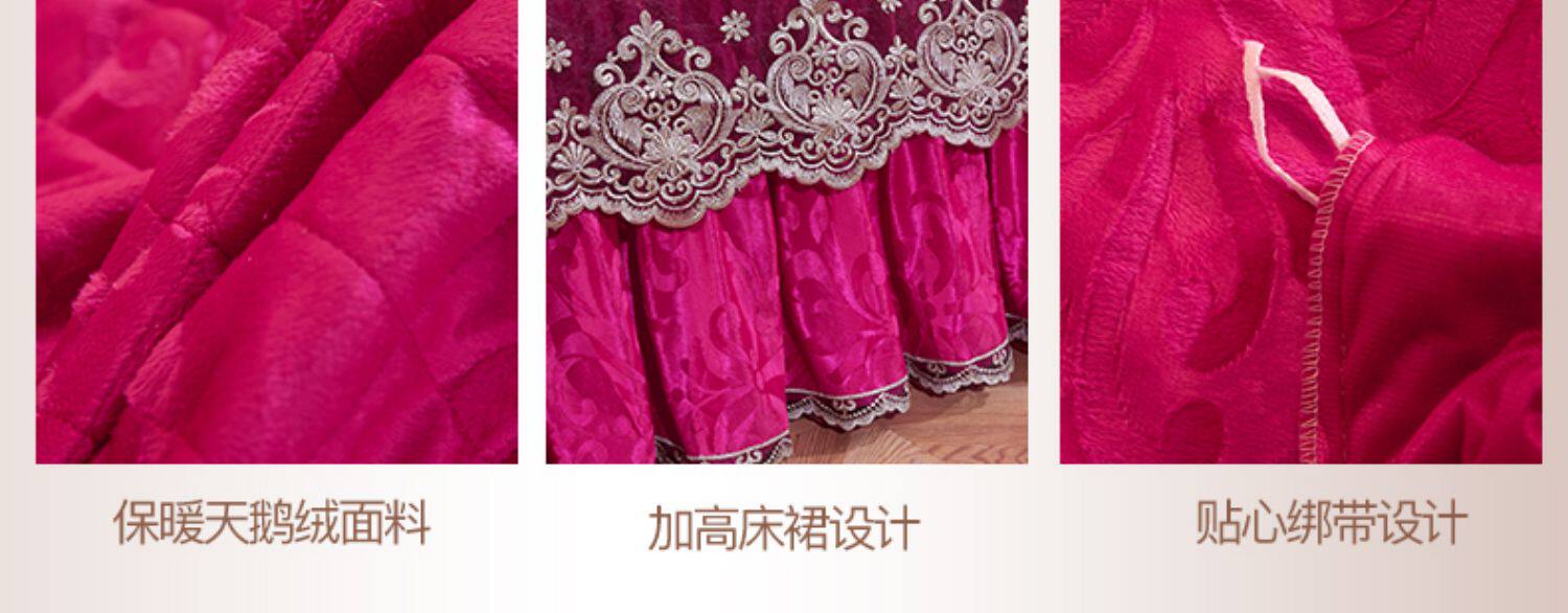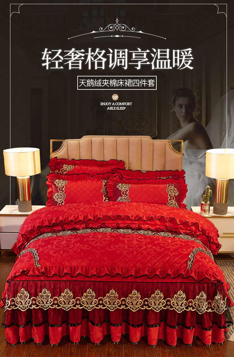 冬季喜慶大紅夾棉床裙式四件套加厚保暖天鵞絨床罩加絨被套4件套