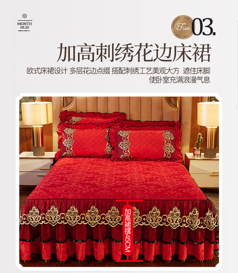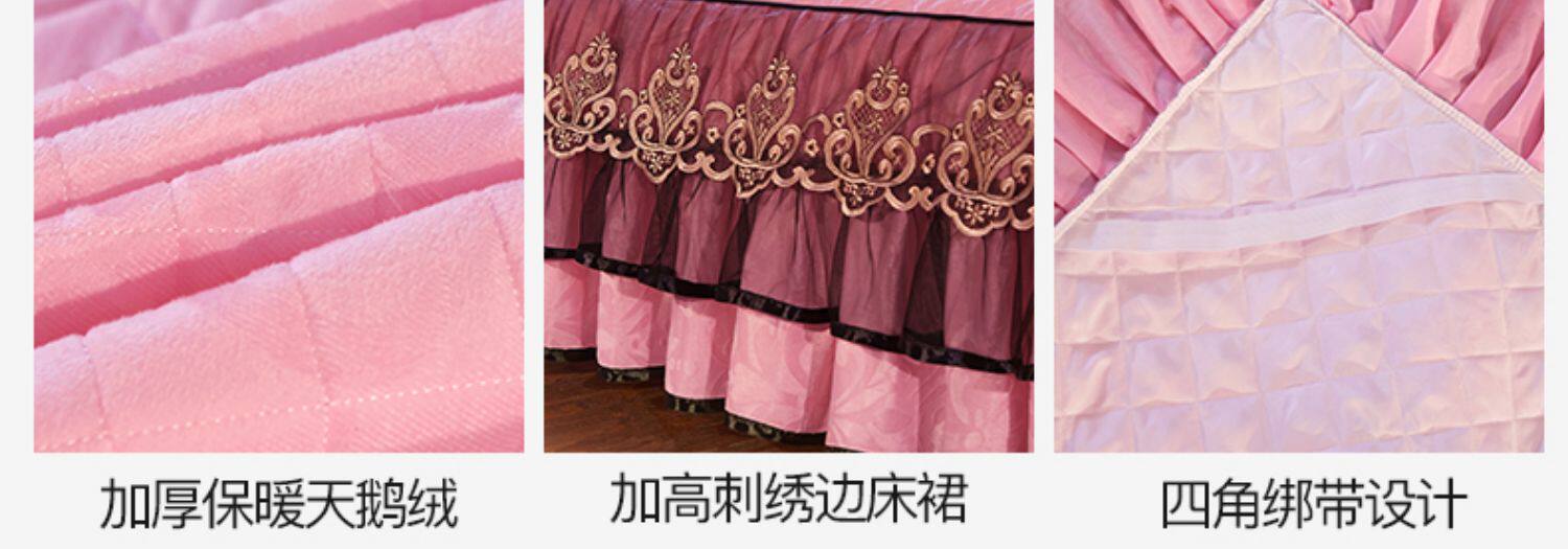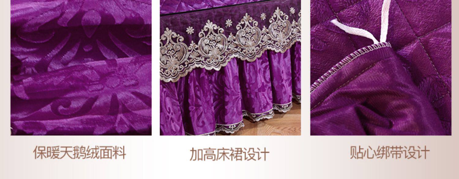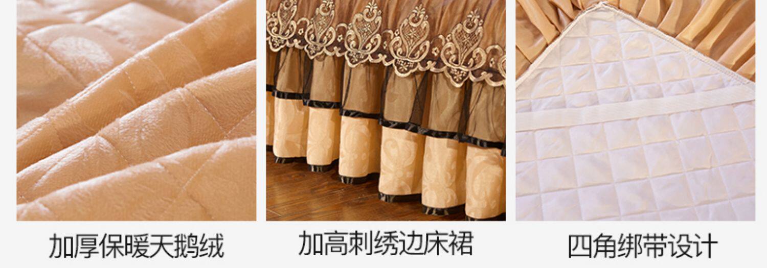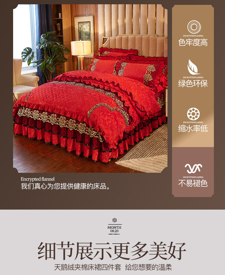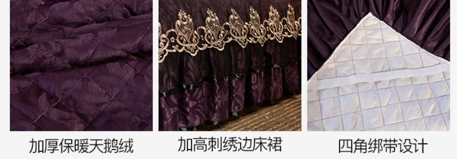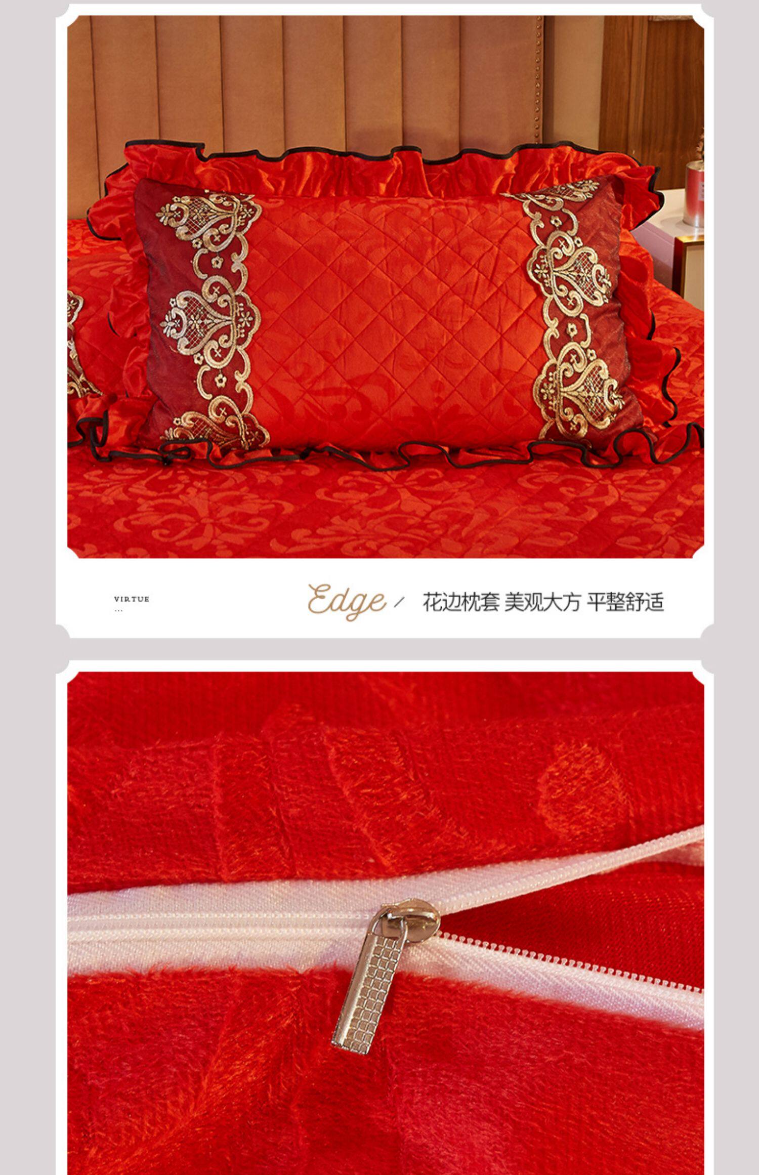 冬季喜慶大紅夾棉床裙式四件套加厚保暖天鵞絨床罩加絨被套4件套