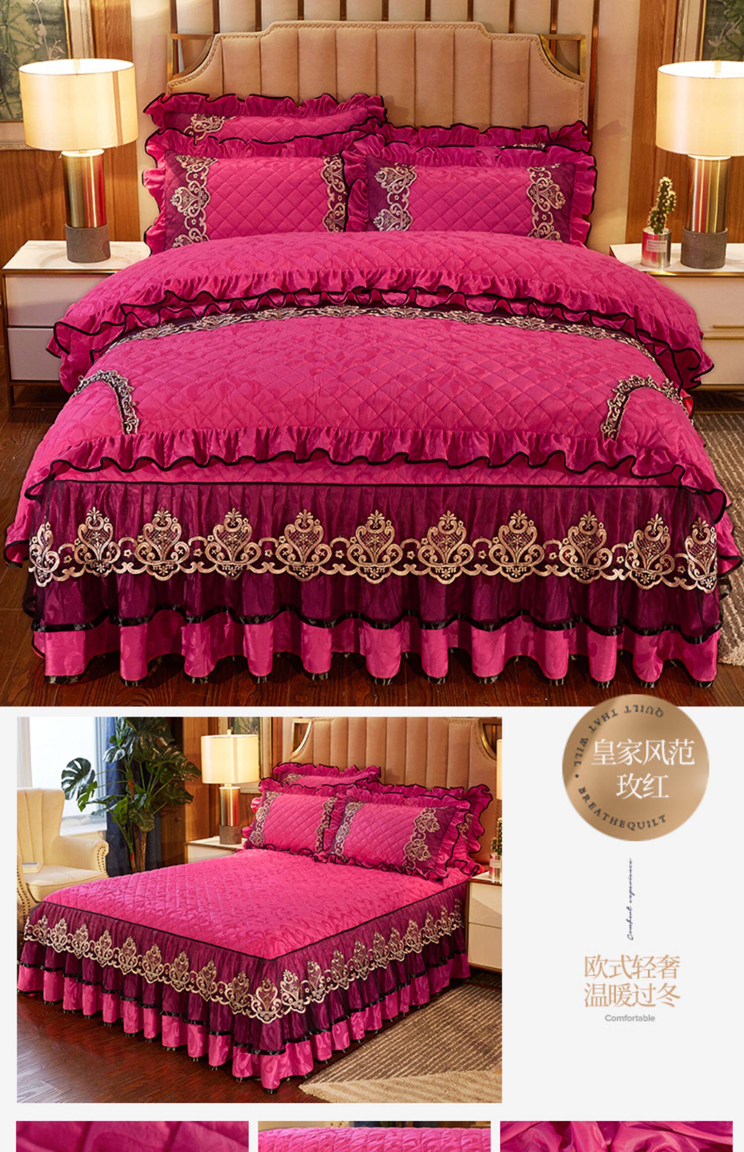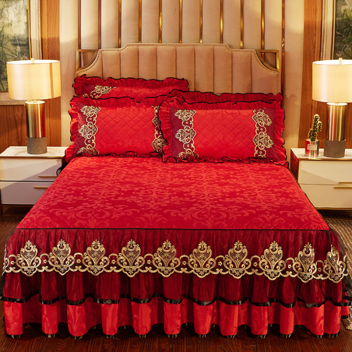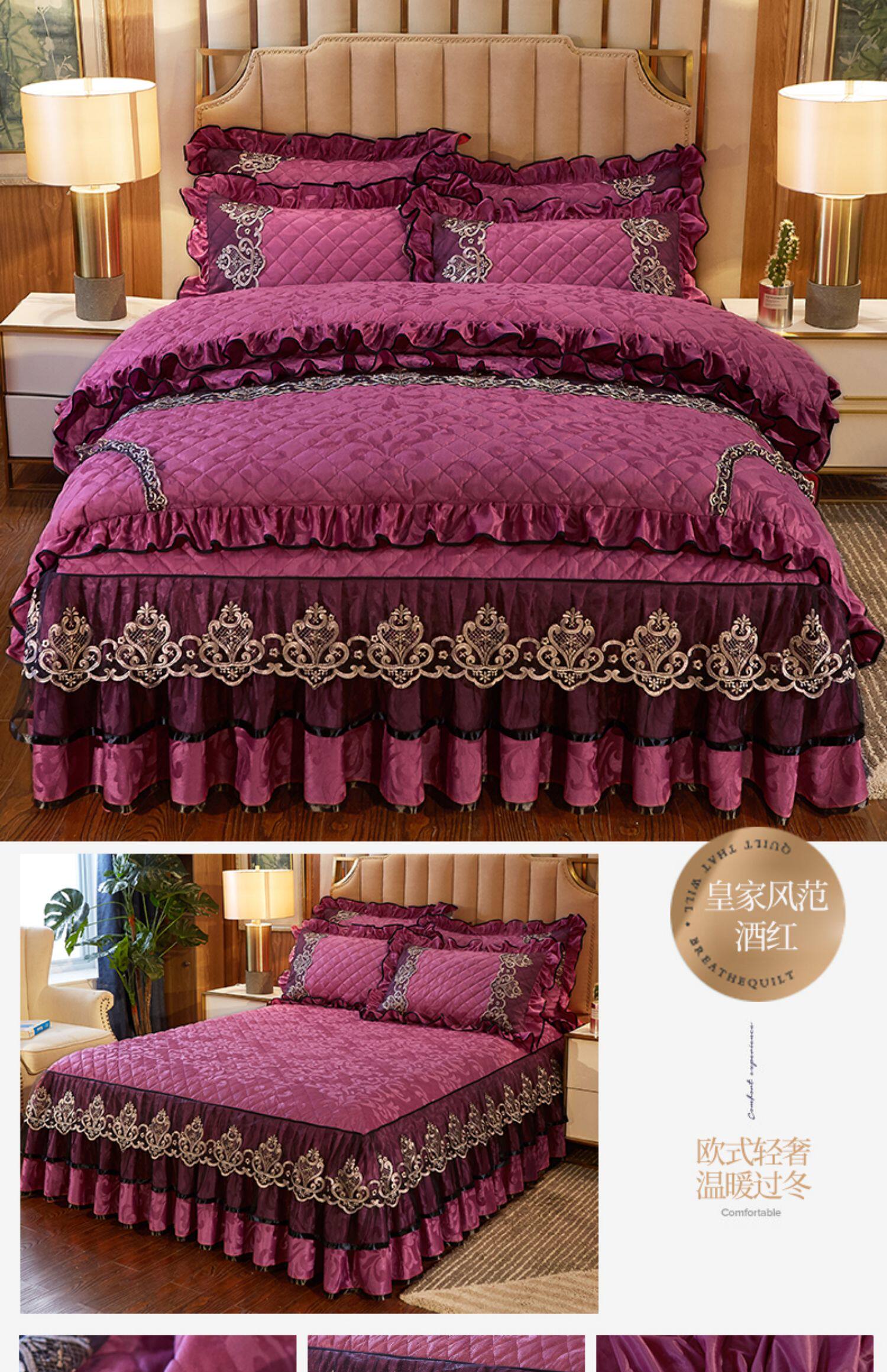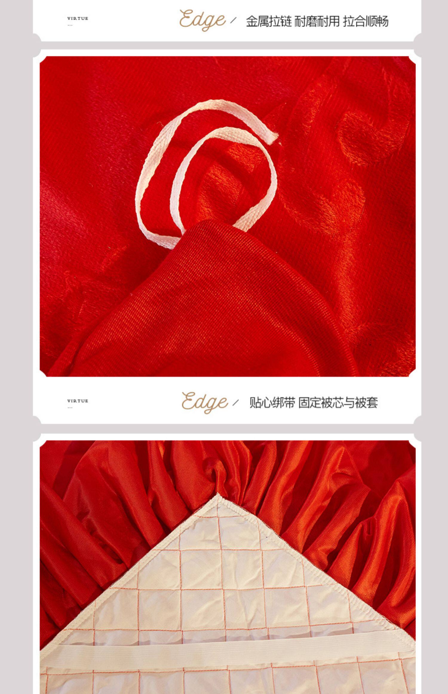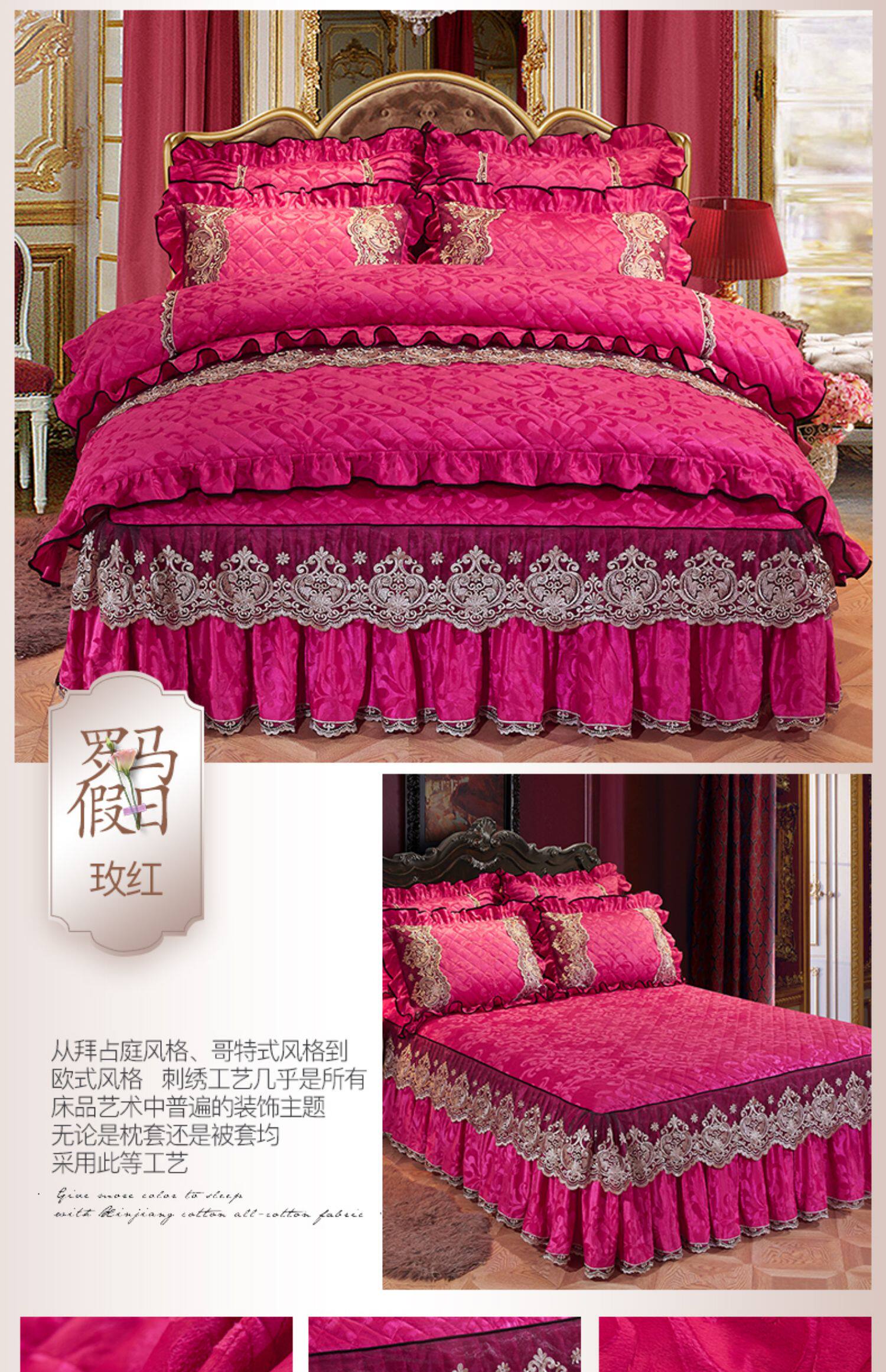冬季喜慶大紅夾棉床裙式四件套加厚保暖天鵞絨床罩加絨被套4件套