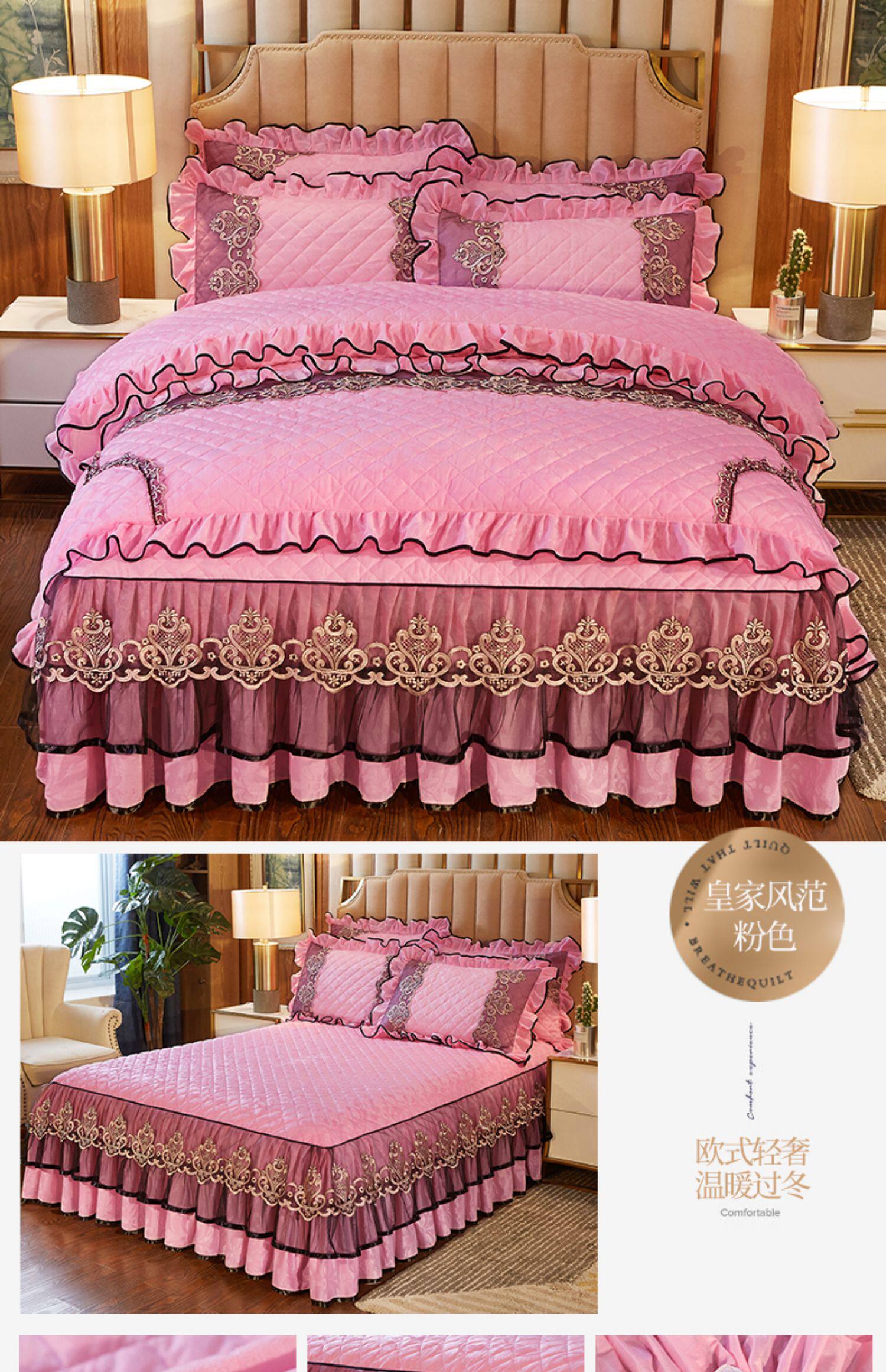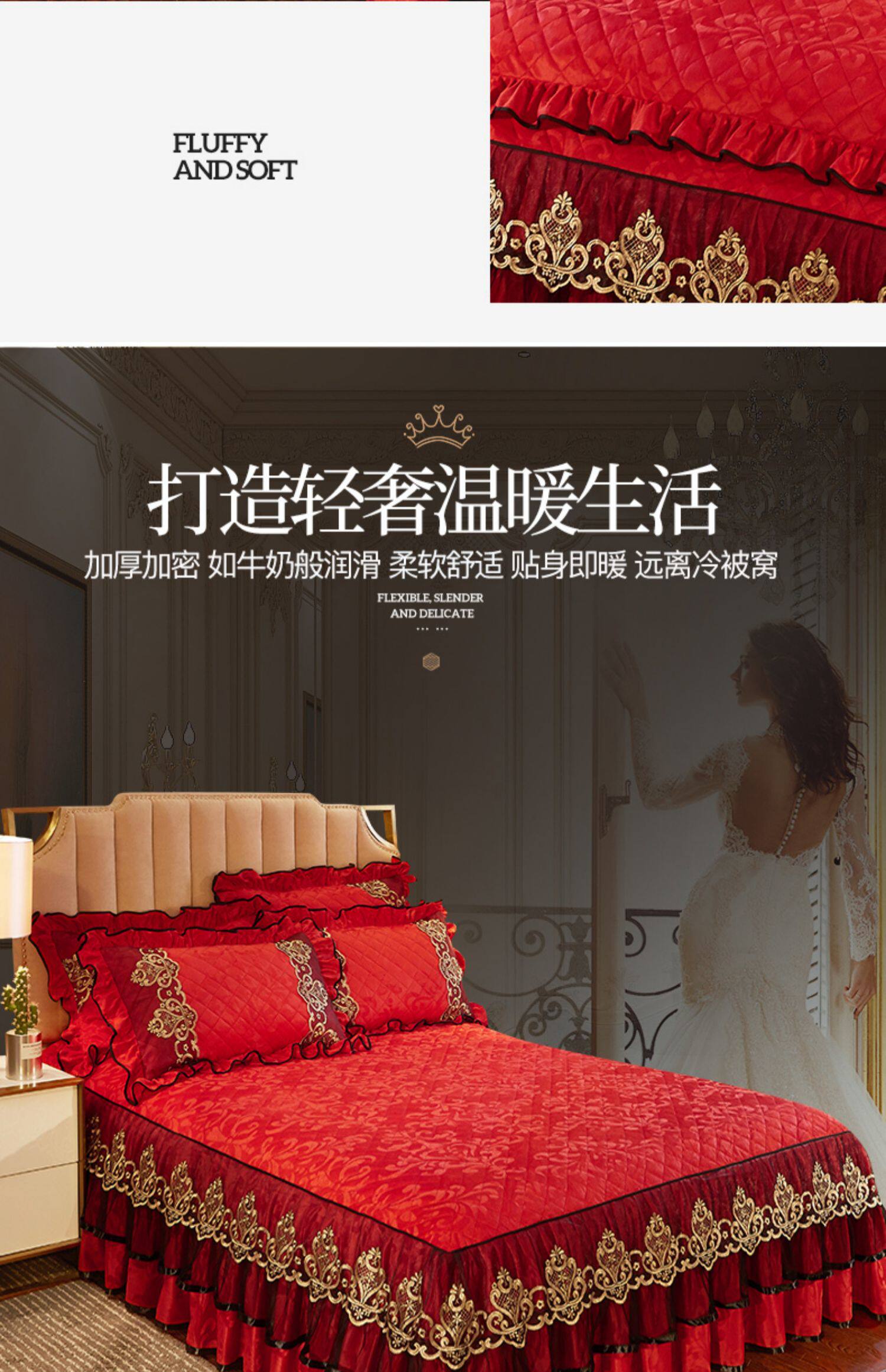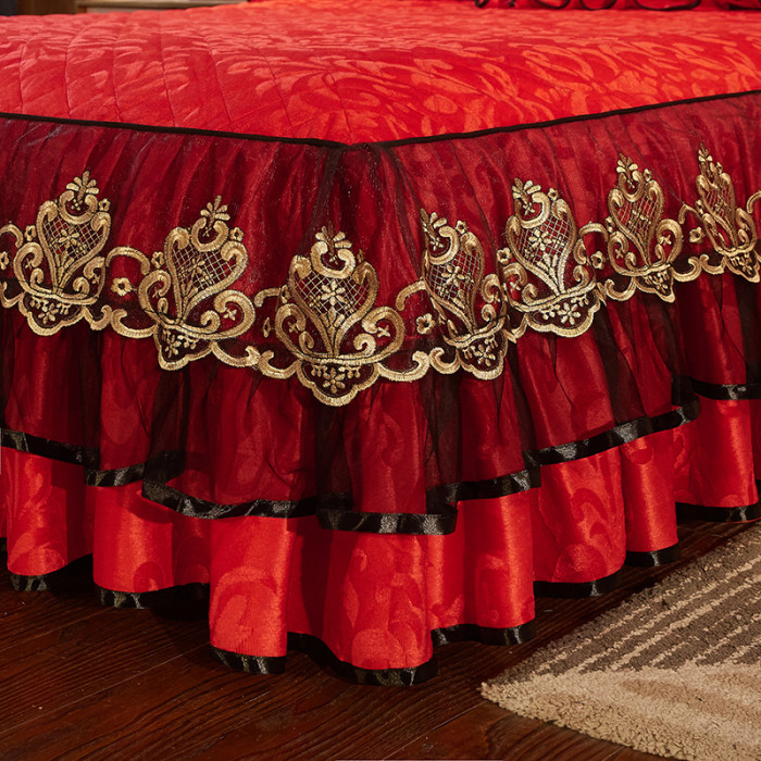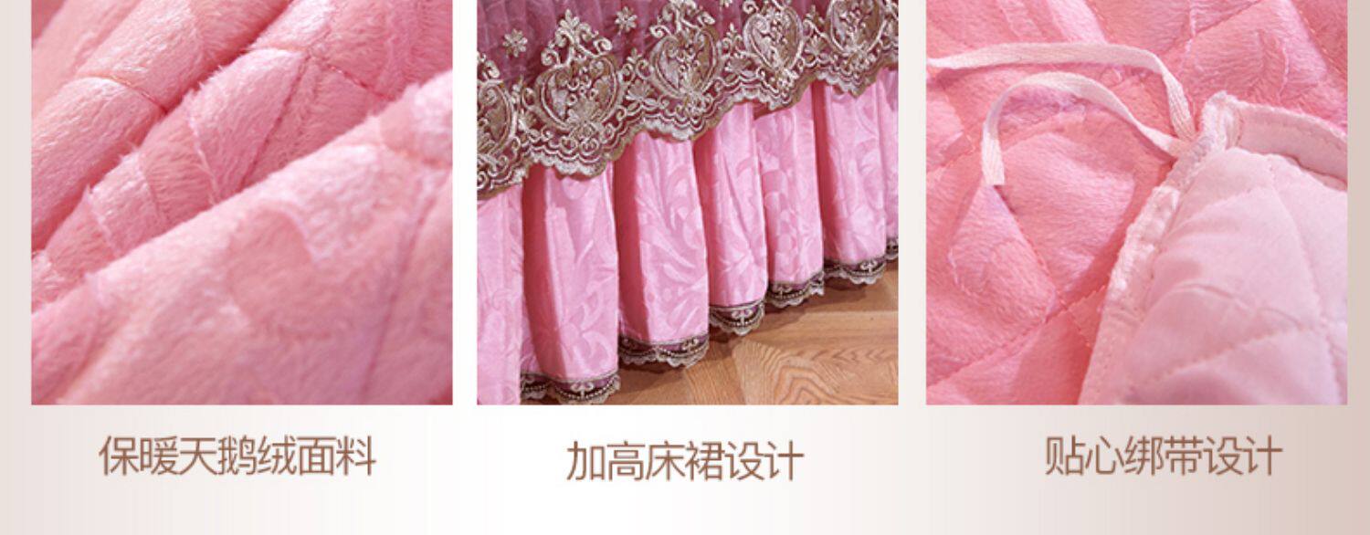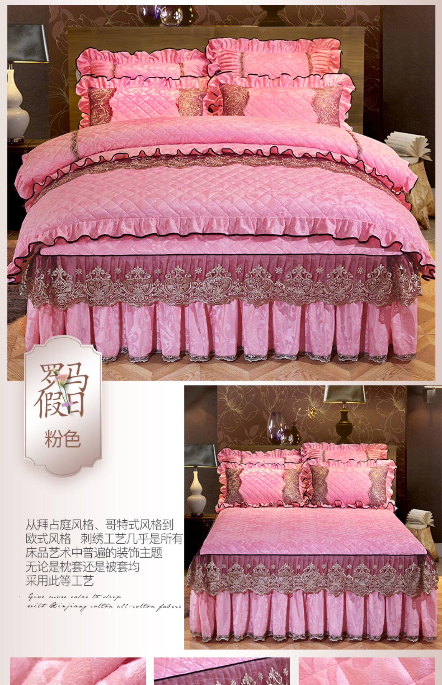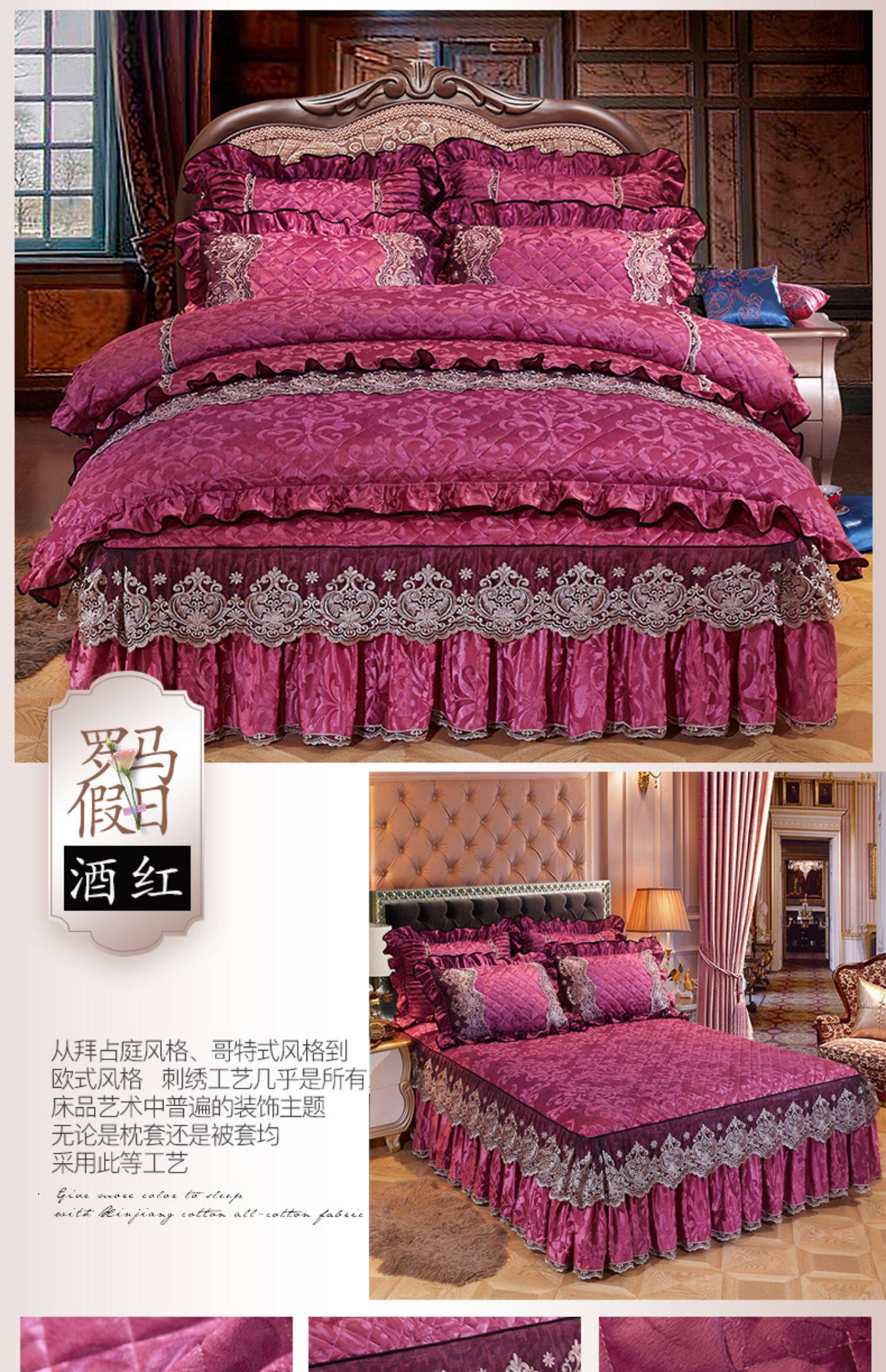 冬季喜慶大紅夾棉床裙式四件套加厚保暖天鵞絨床罩加絨被套4件套