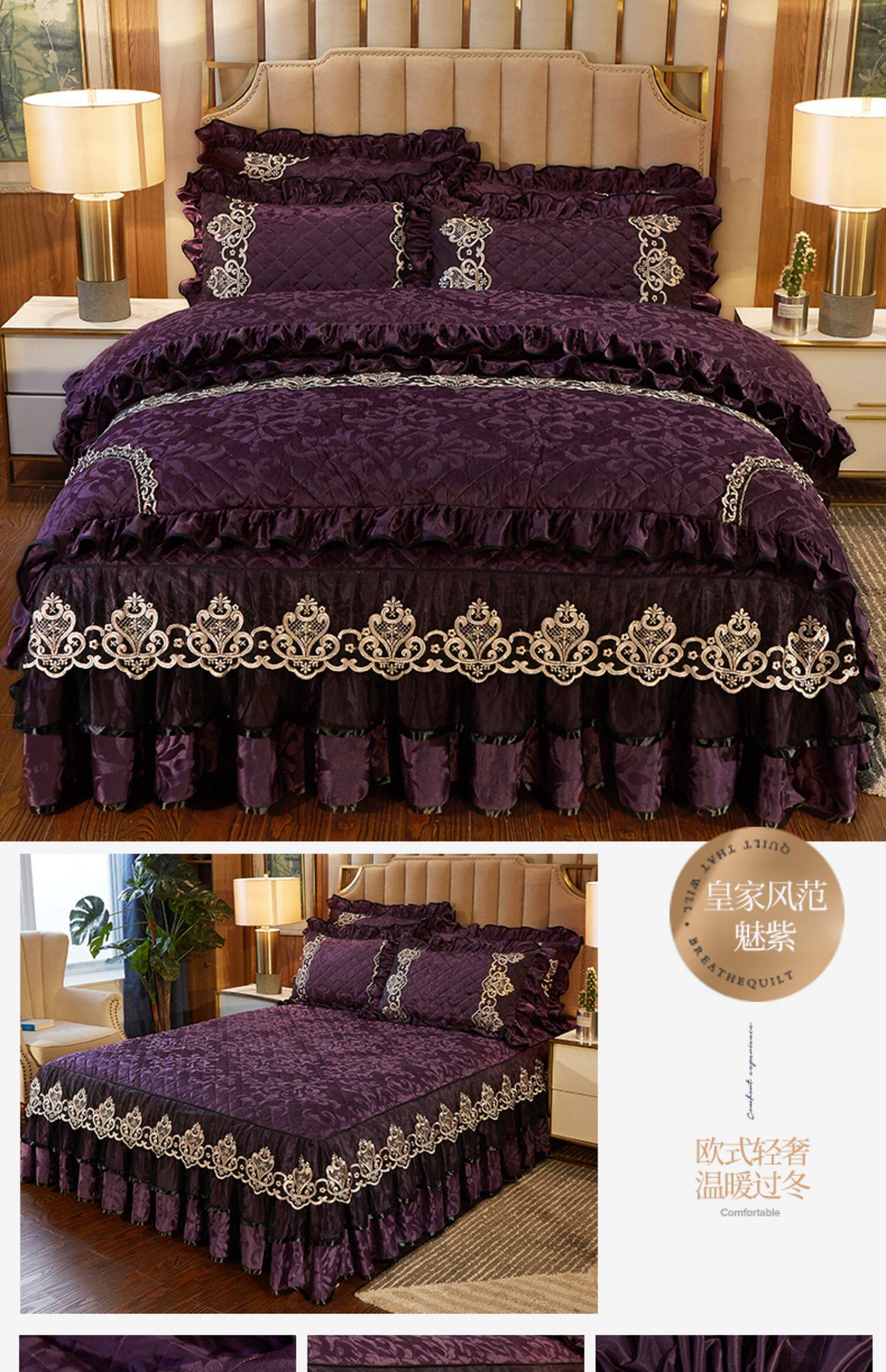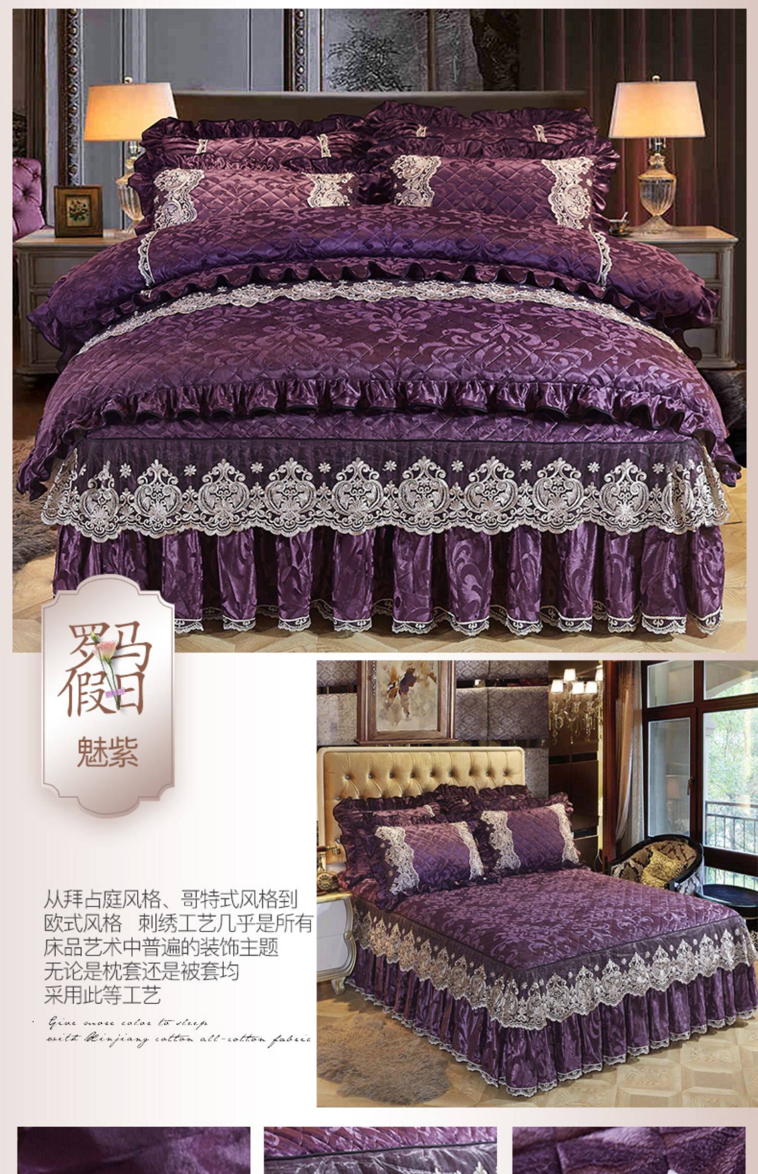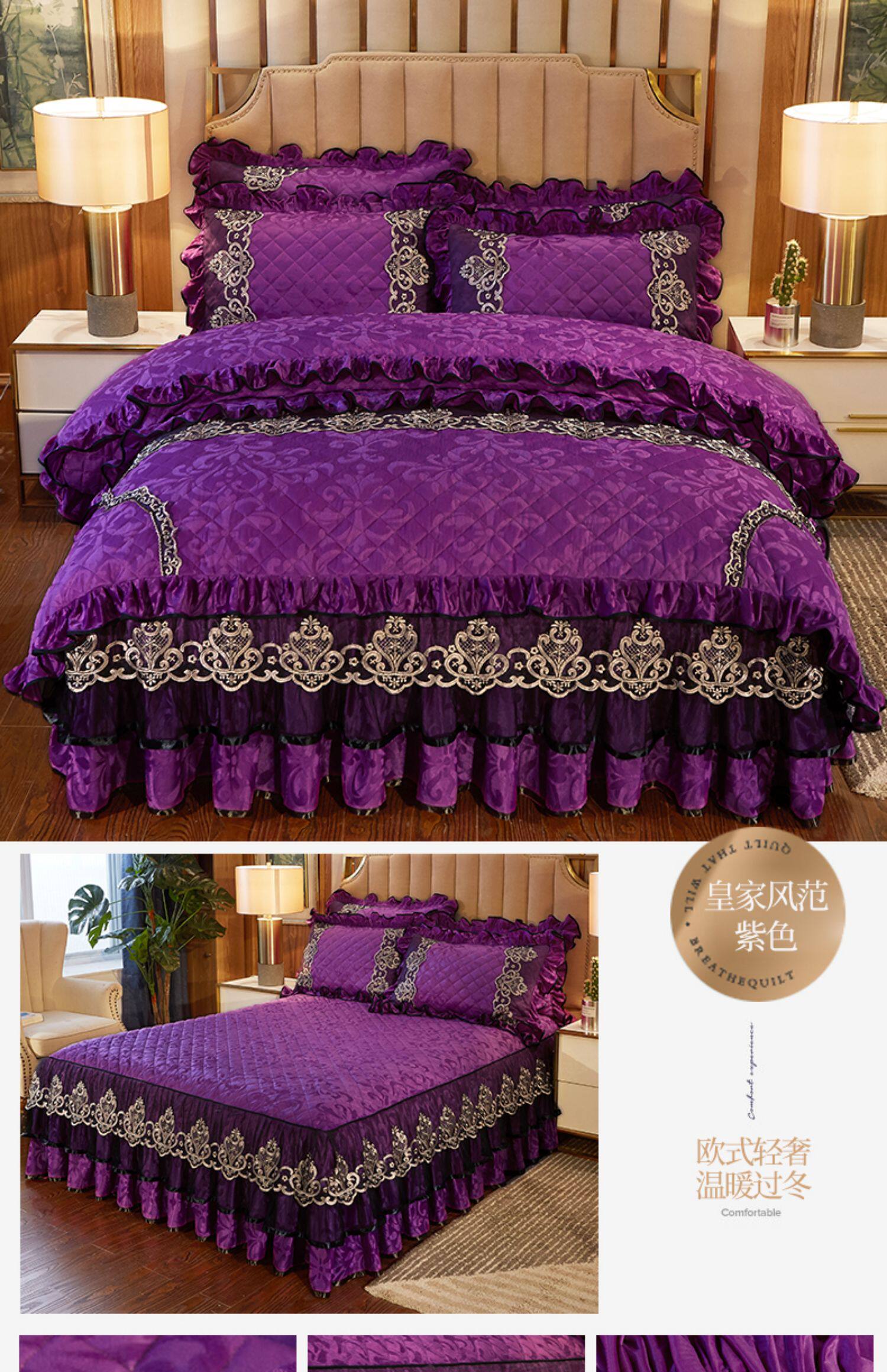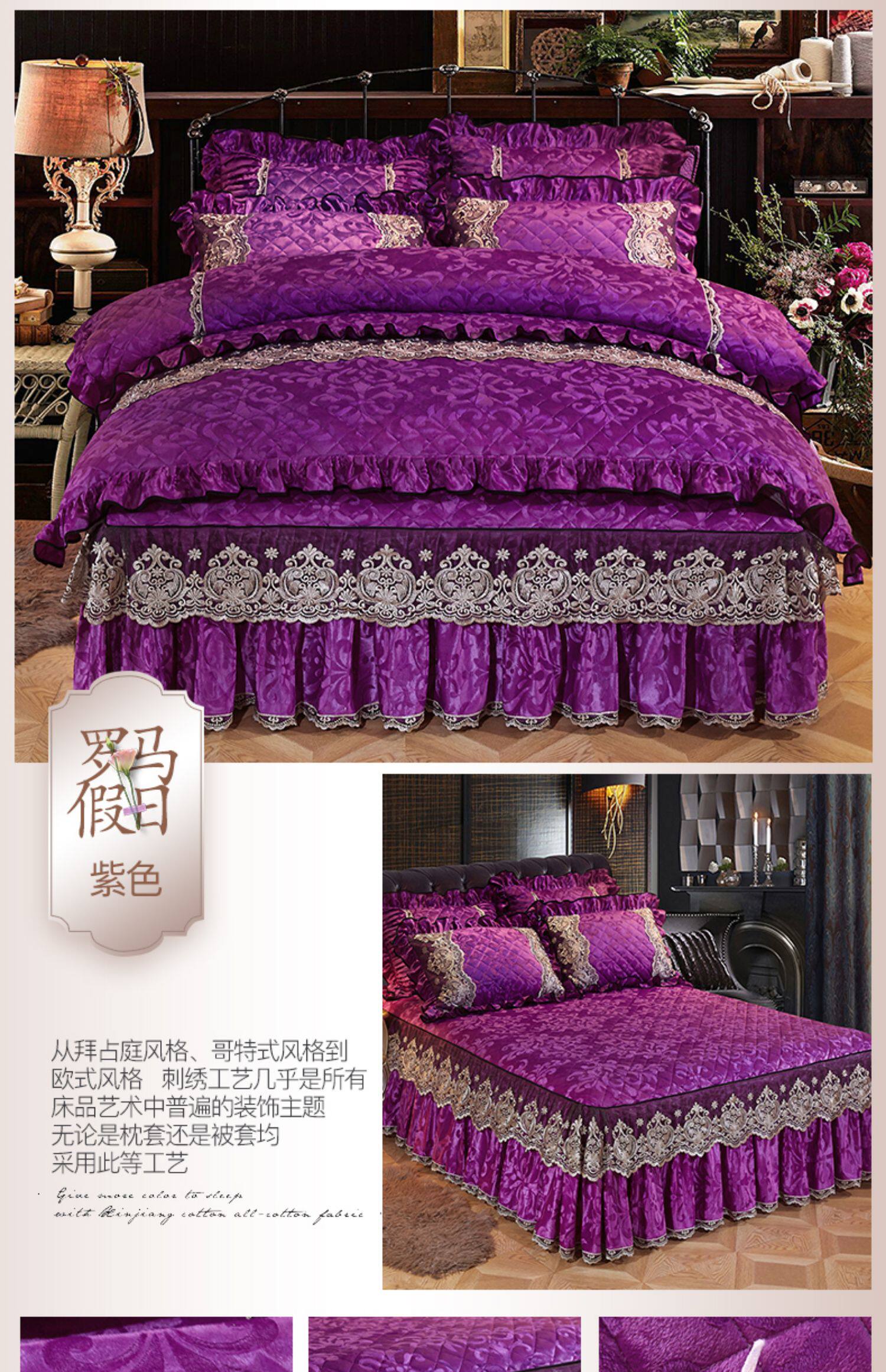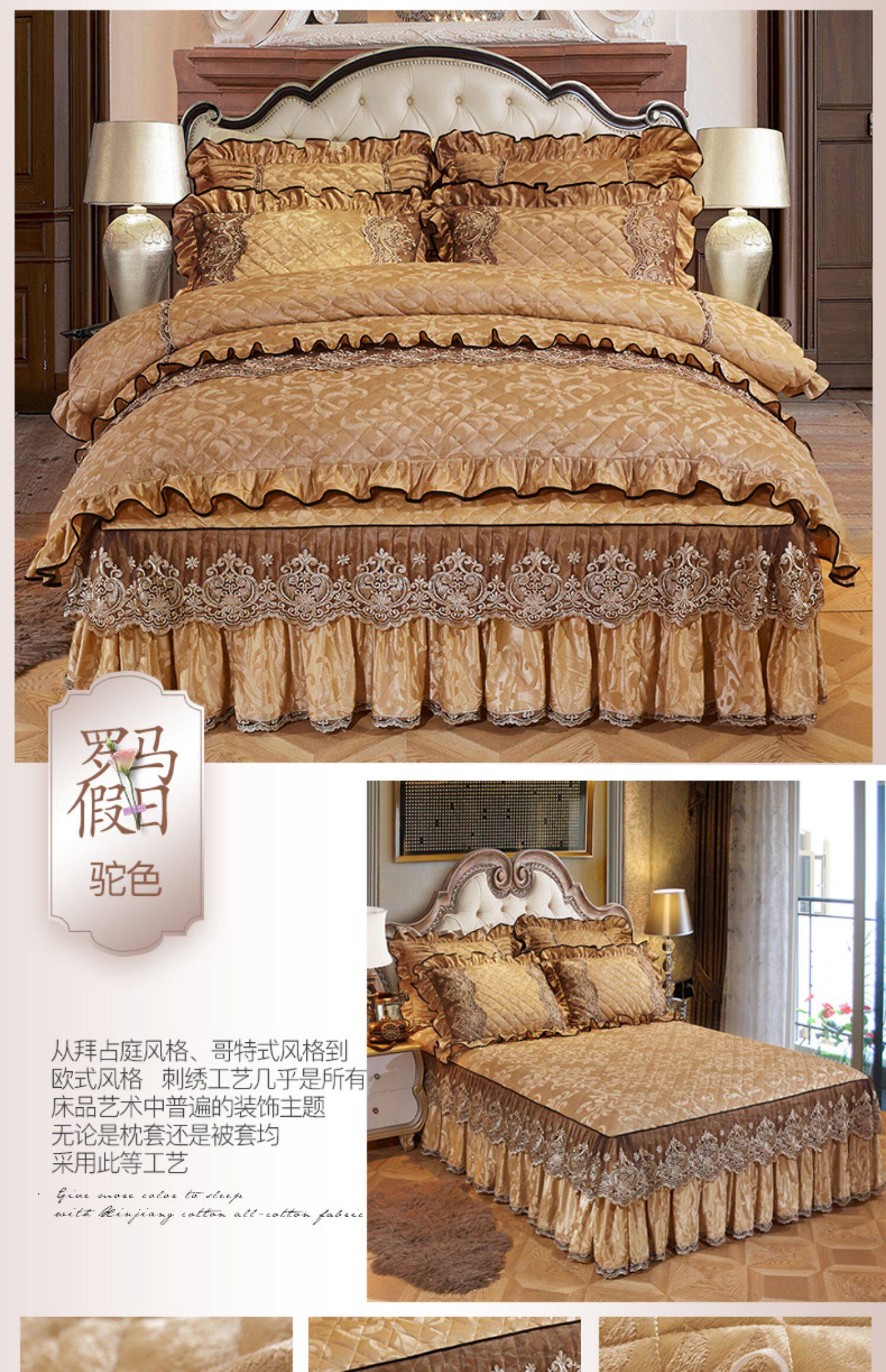 冬季喜慶大紅夾棉床裙式四件套加厚保暖天鵞絨床罩加絨被套4件套