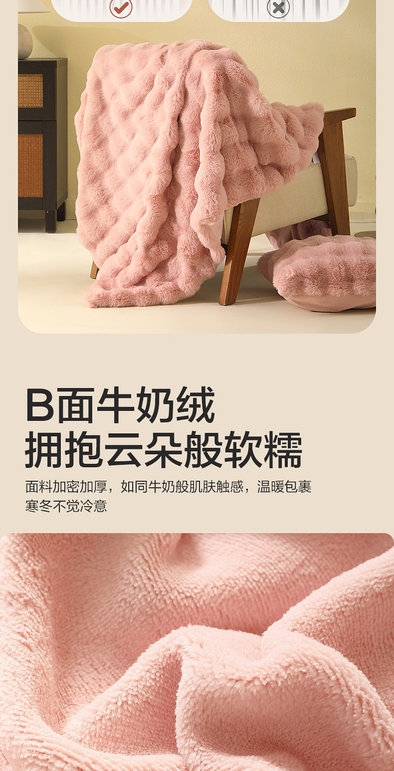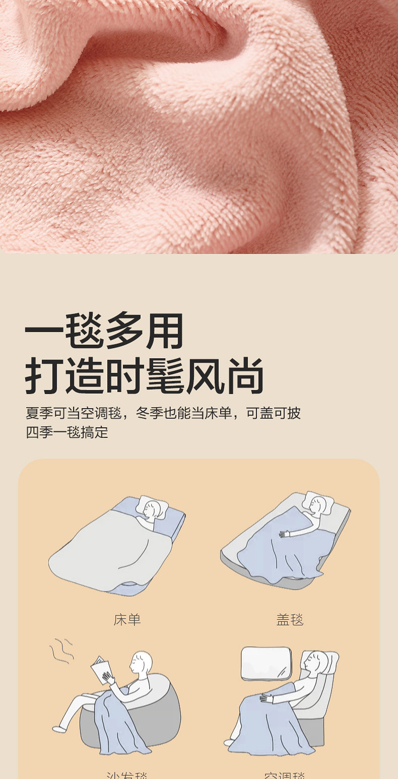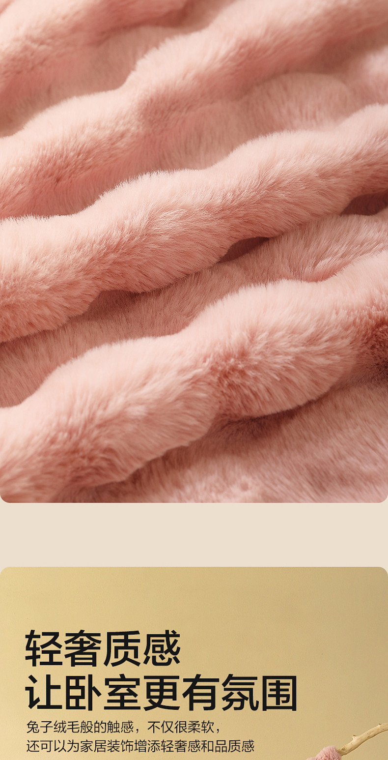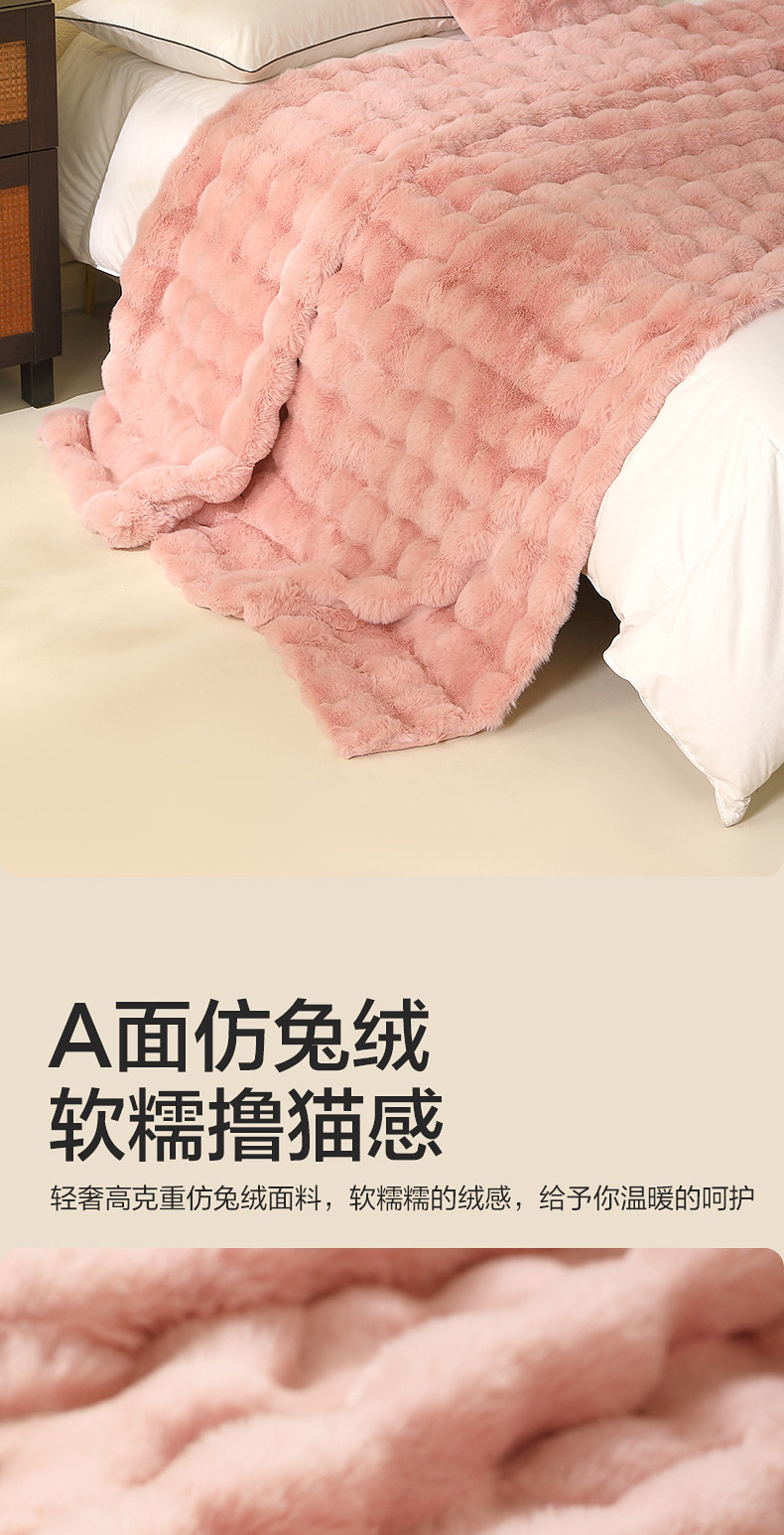 水星家紡仿兔絨毯毛毯冬季加厚沙發蓋毯辦公室午睡毯宿捨保暖毯子