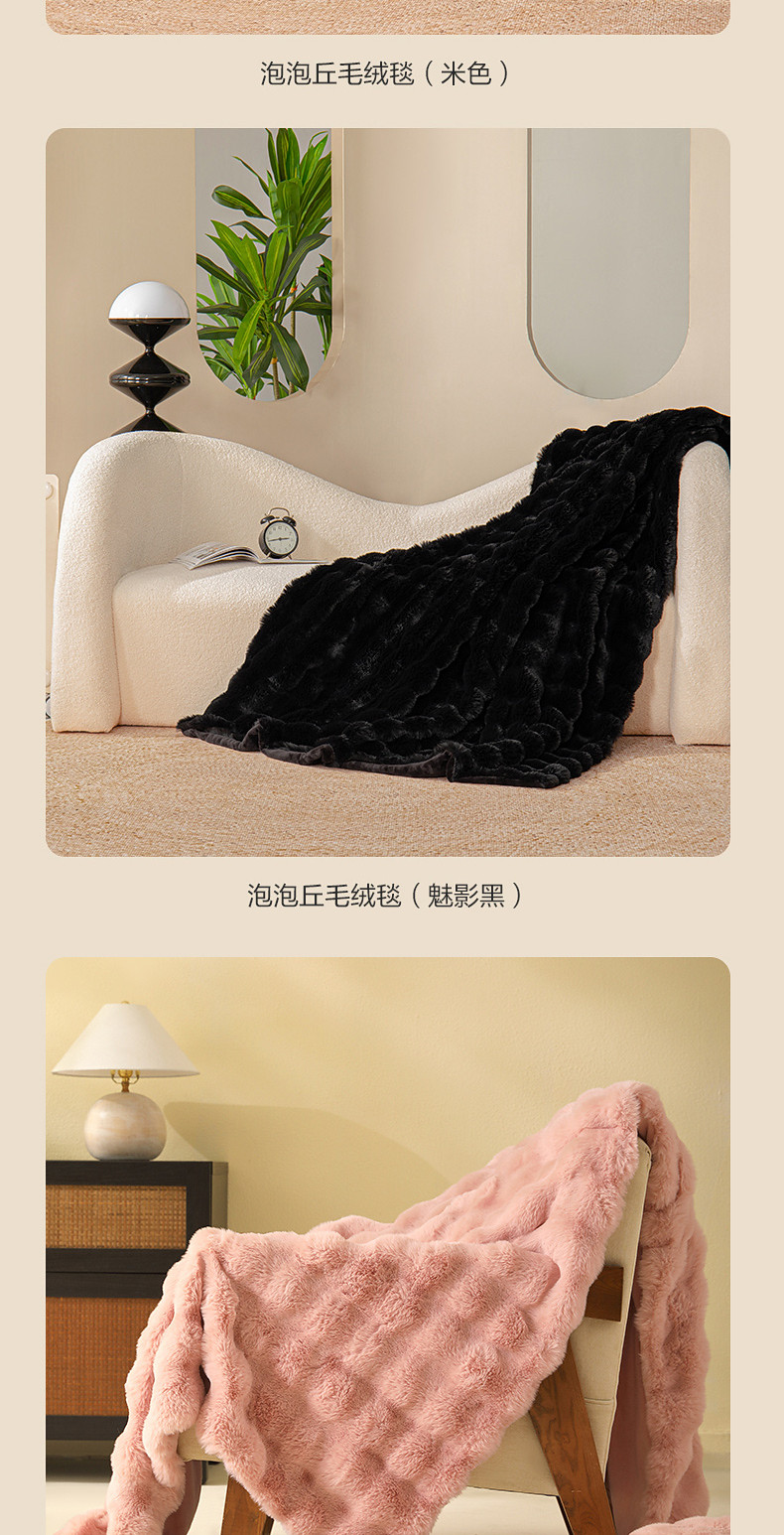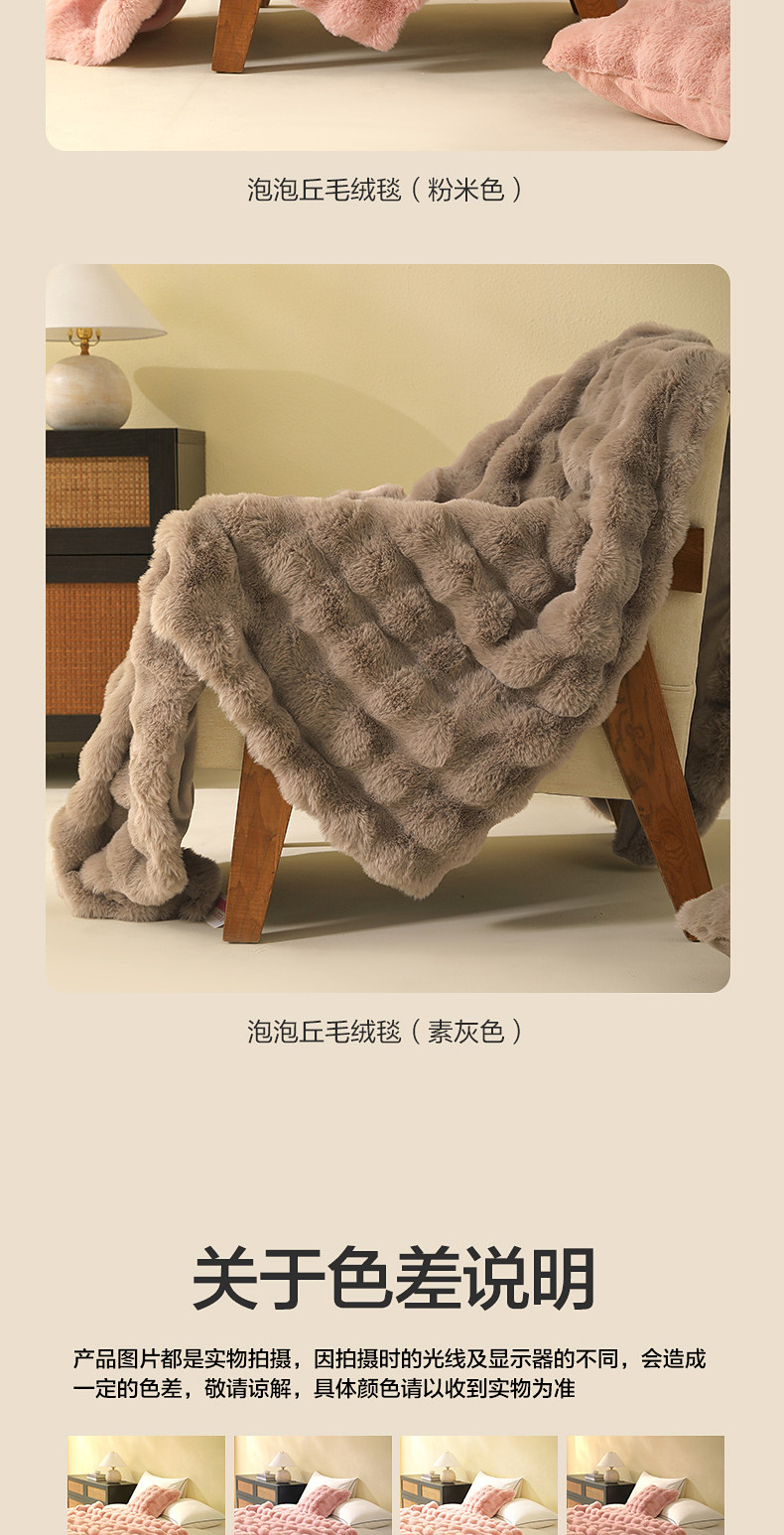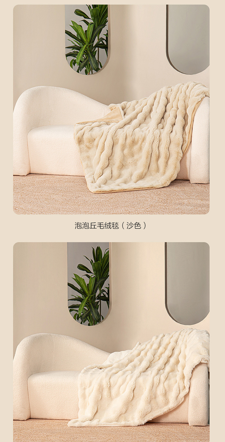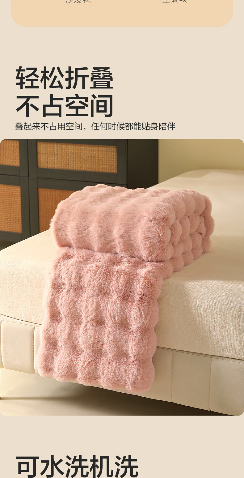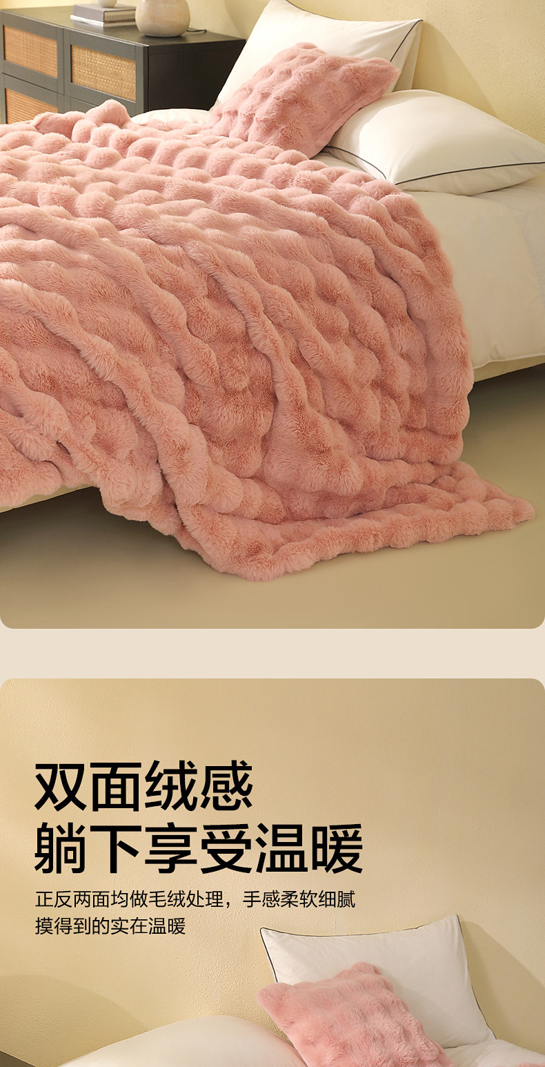 水星家紡仿兔絨毯毛毯冬季加厚沙發蓋毯辦公室午睡毯宿捨保暖毯子
