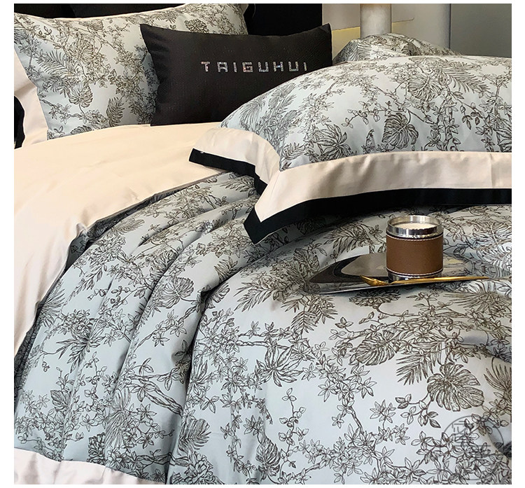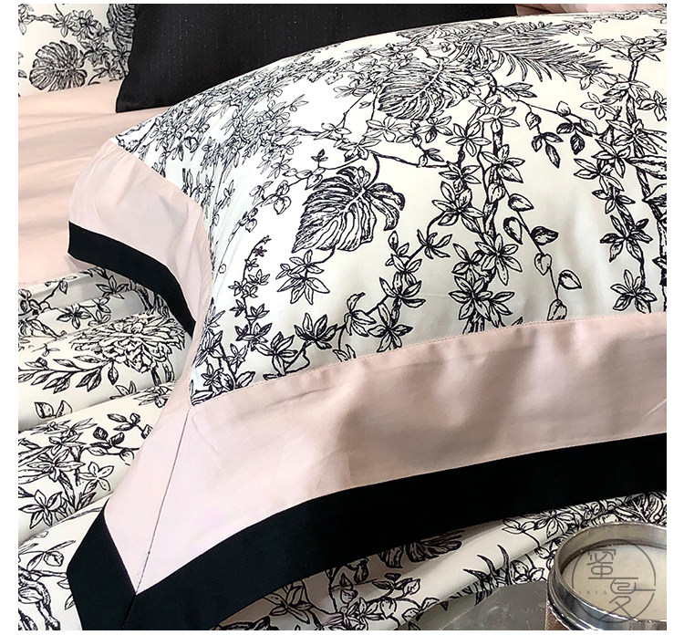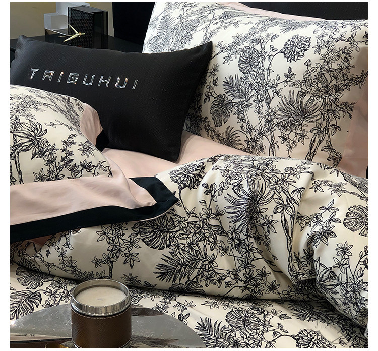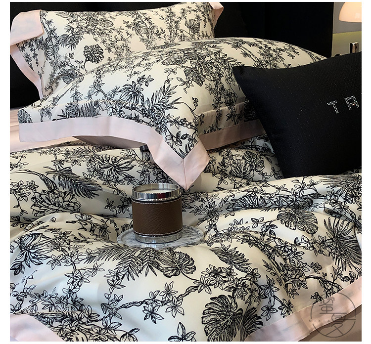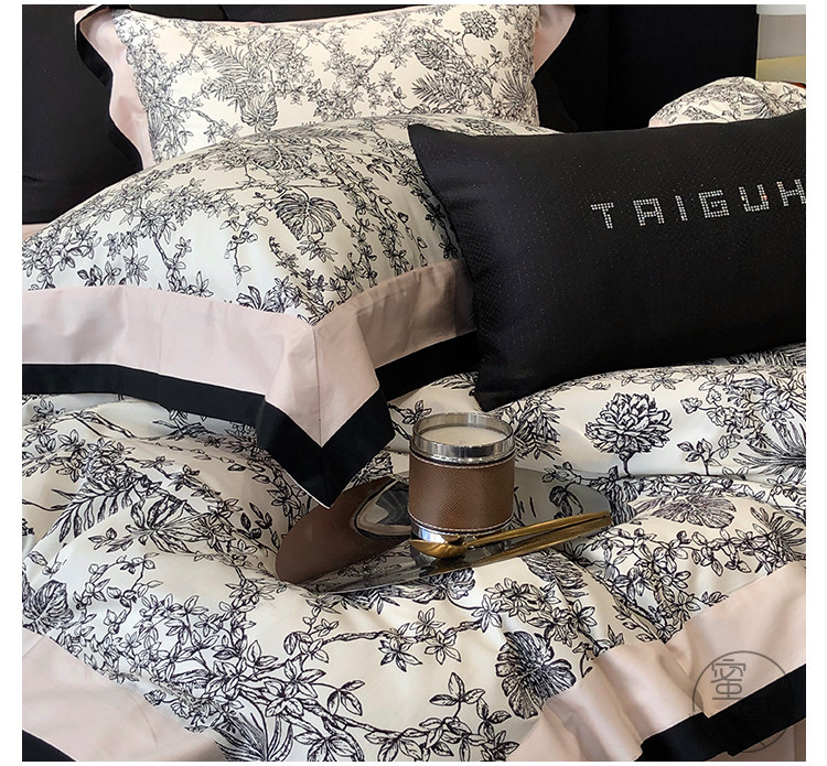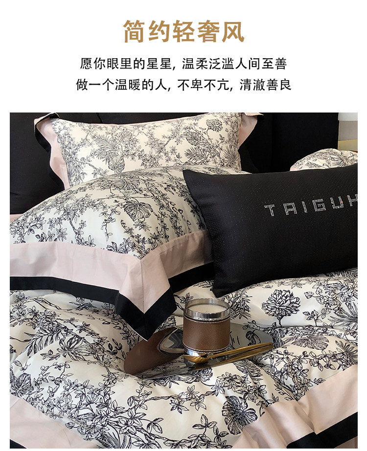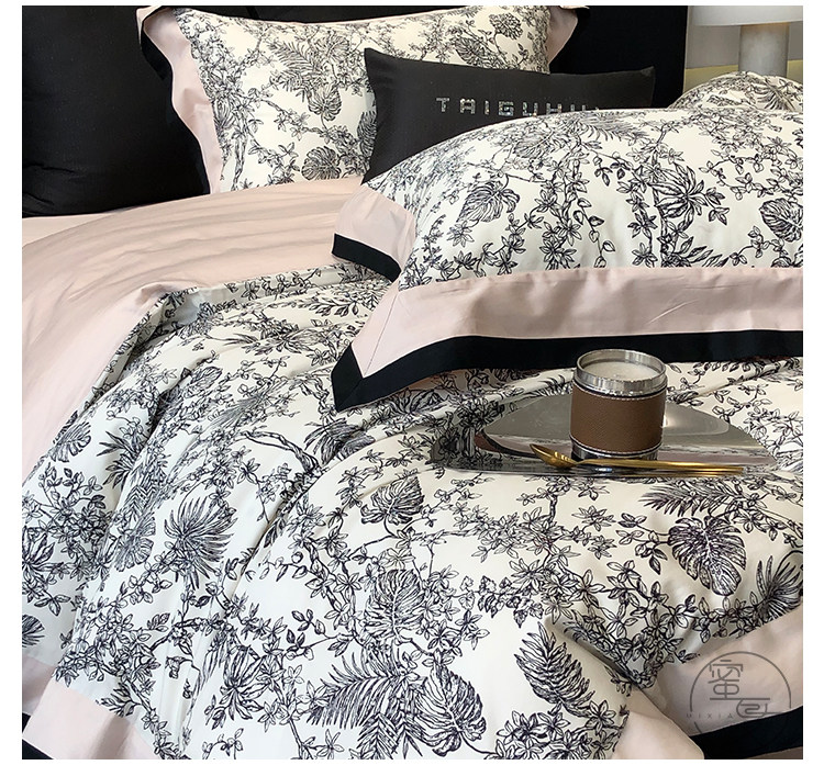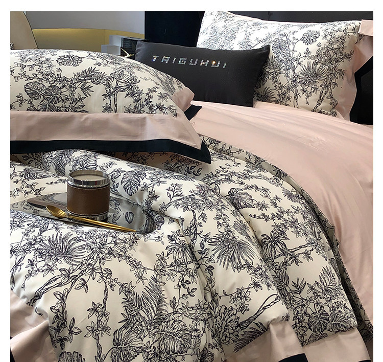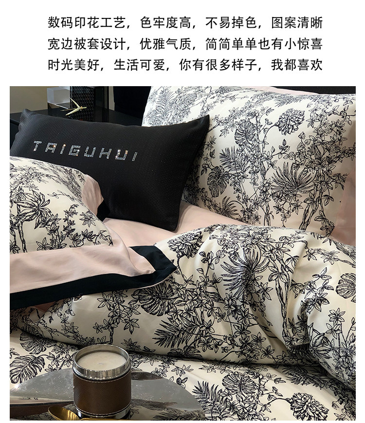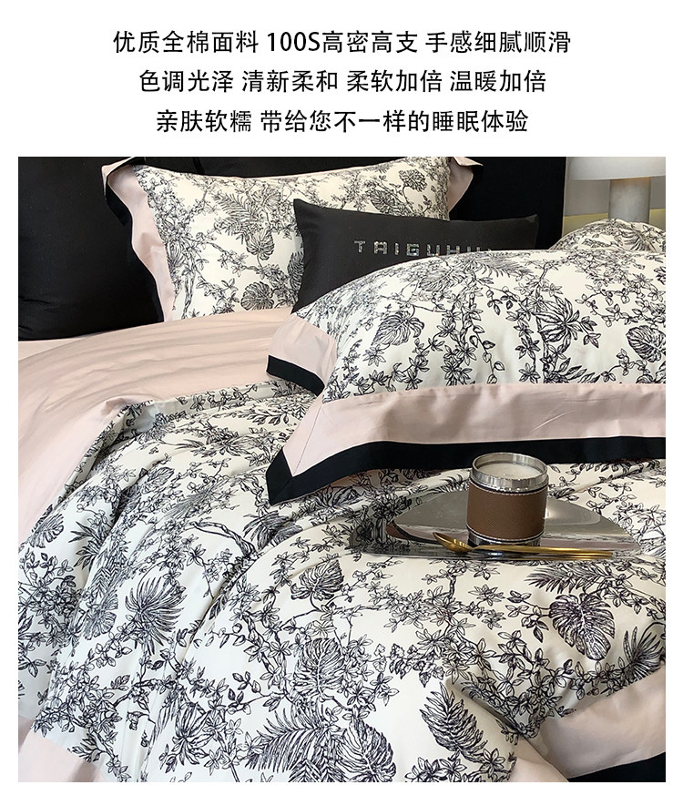 簡約風100S高支長絨棉四件套植物數碼印花全棉被套1.8米m床上用品