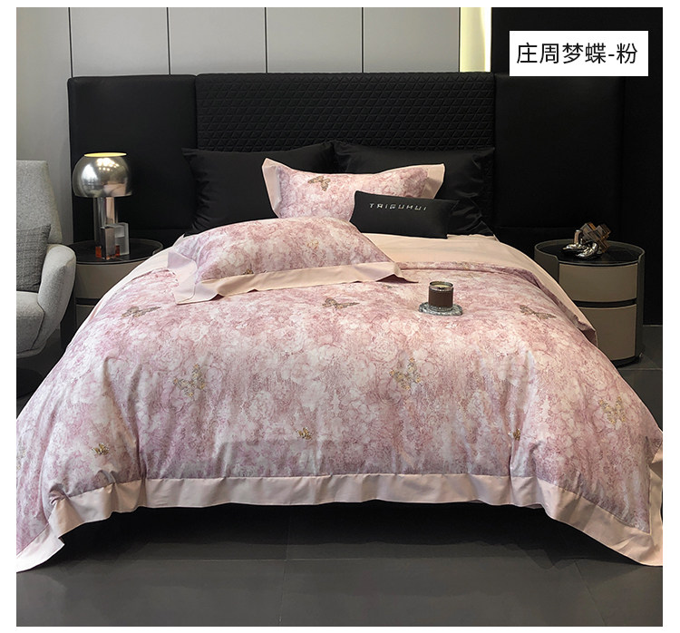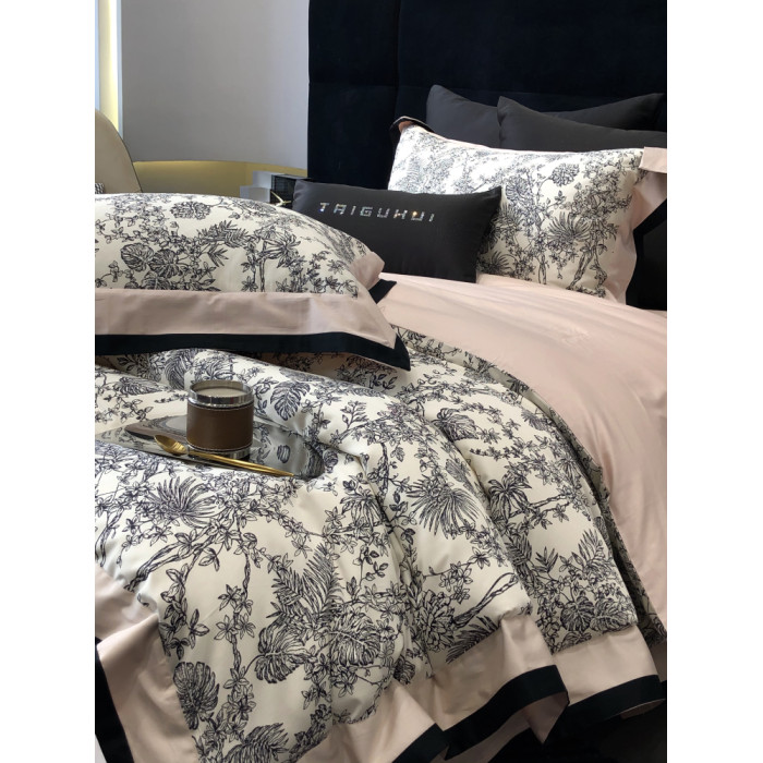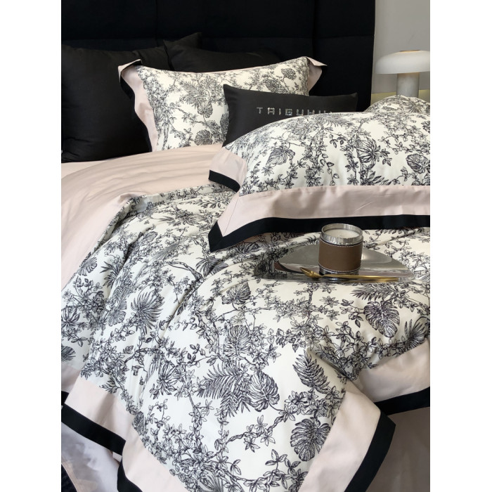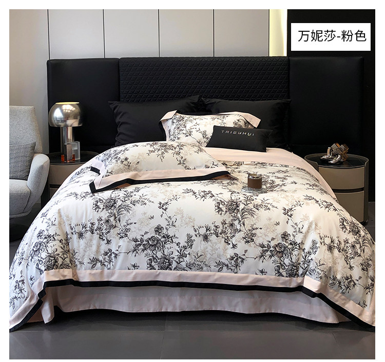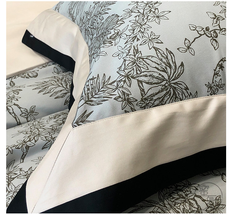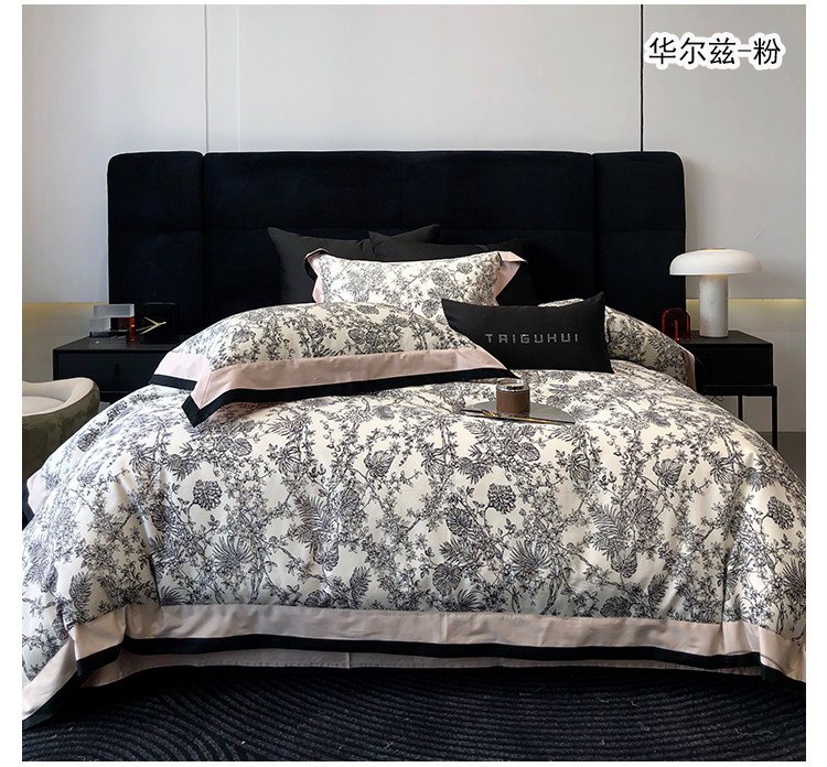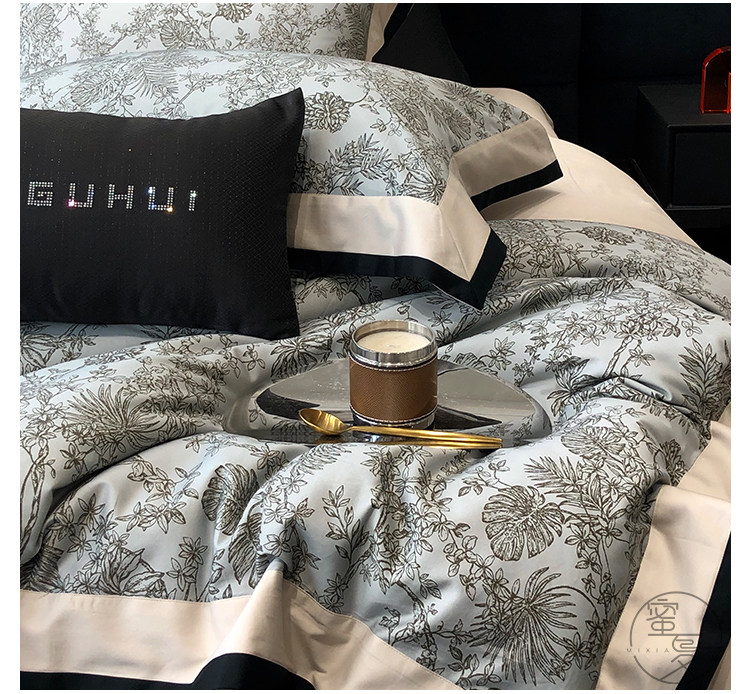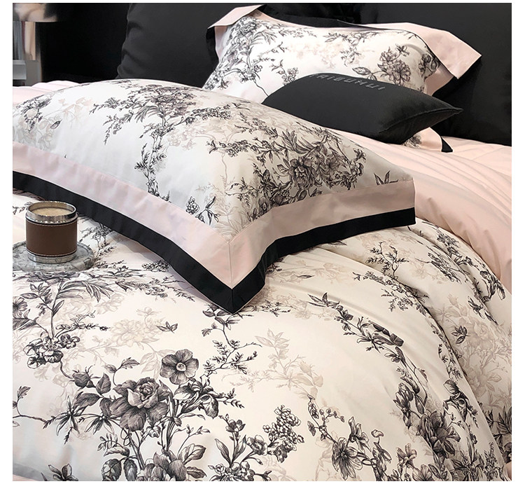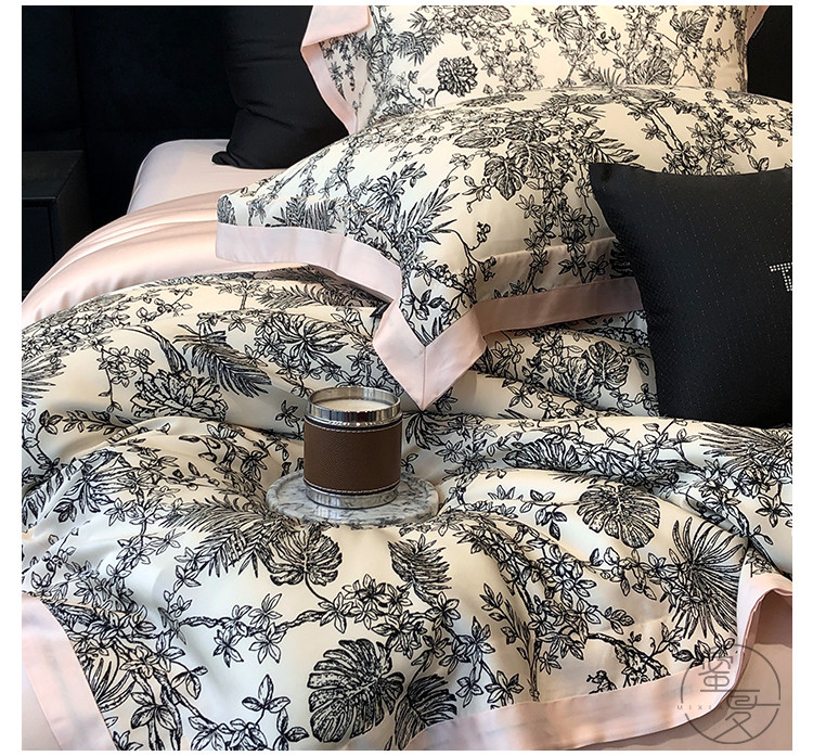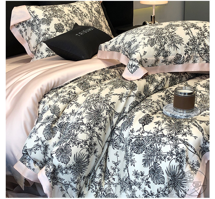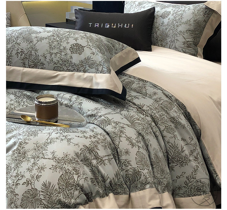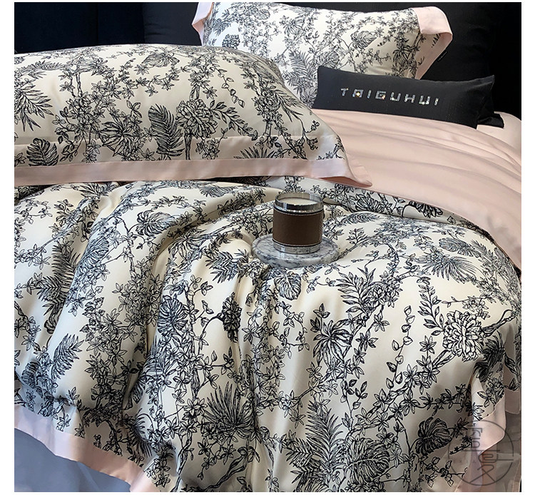 簡約風100S高支長絨棉四件套植物數碼印花全棉被套1.8米m床上用品