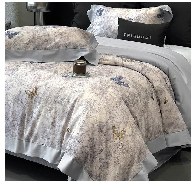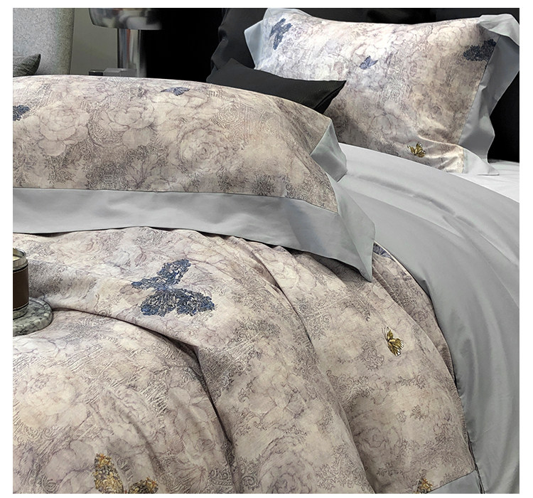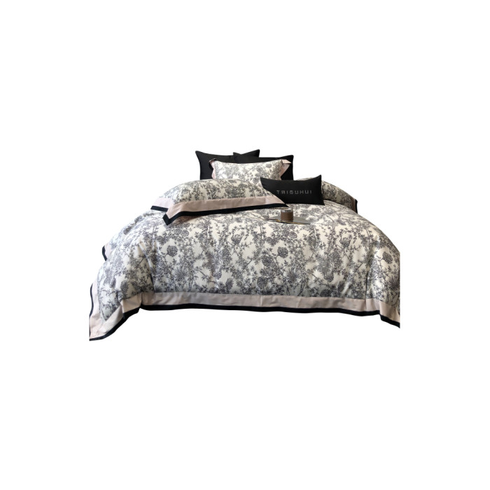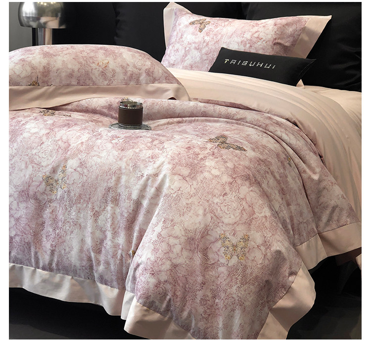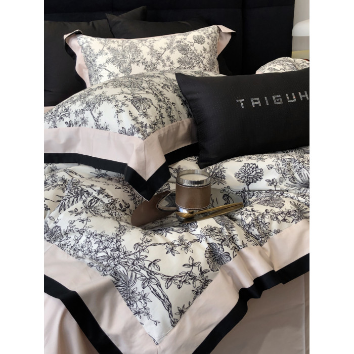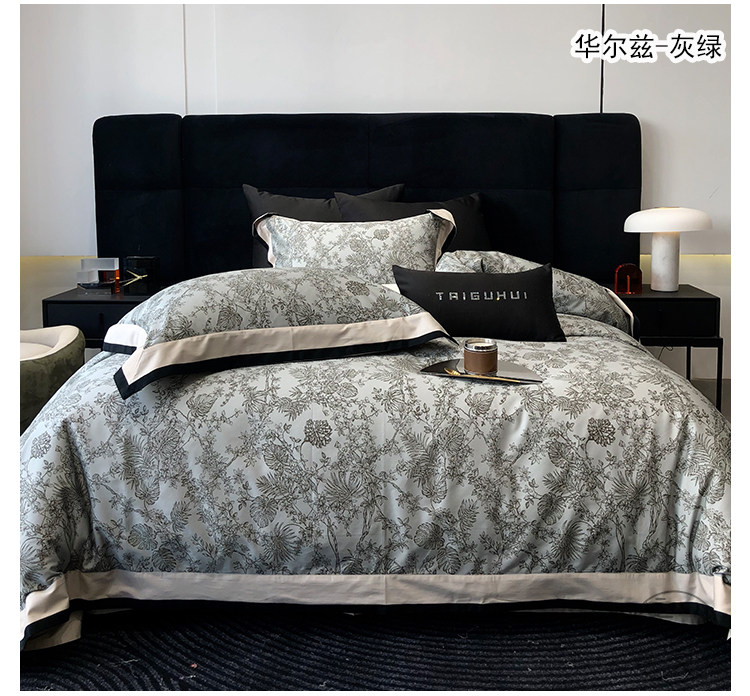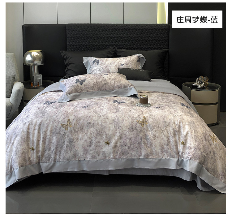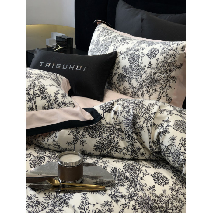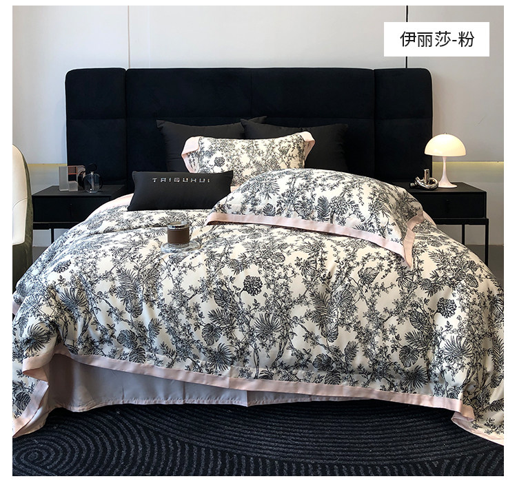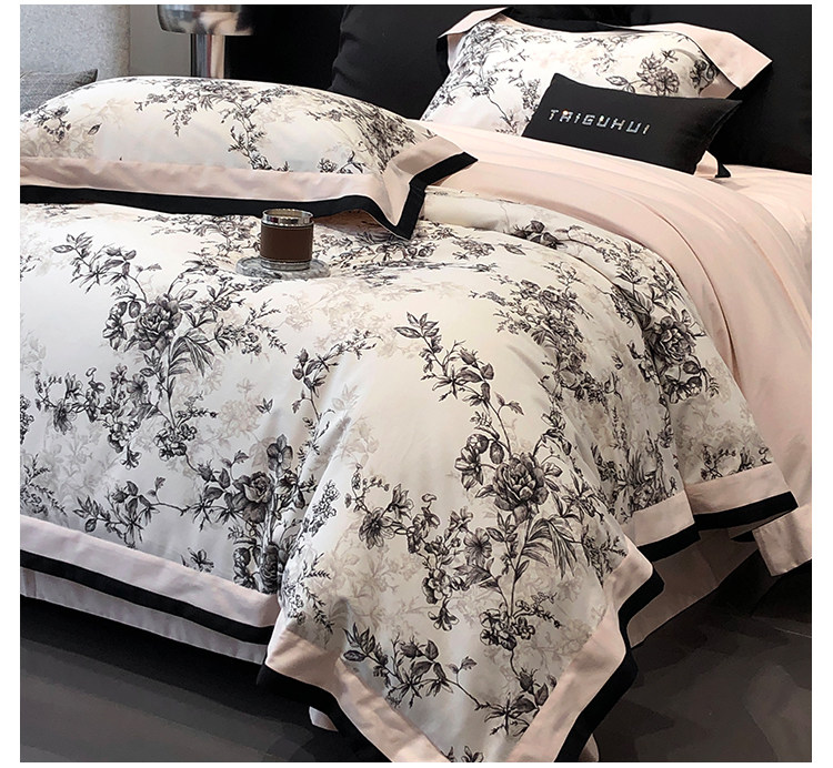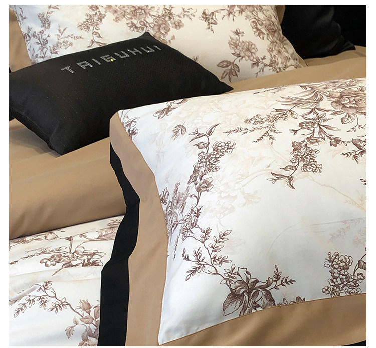 簡約風100S高支長絨棉四件套植物數碼印花全棉被套1.8米m床上用品