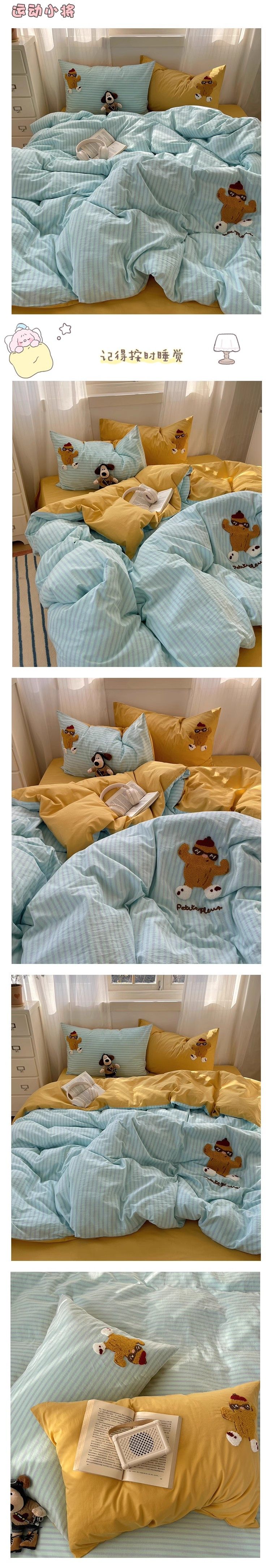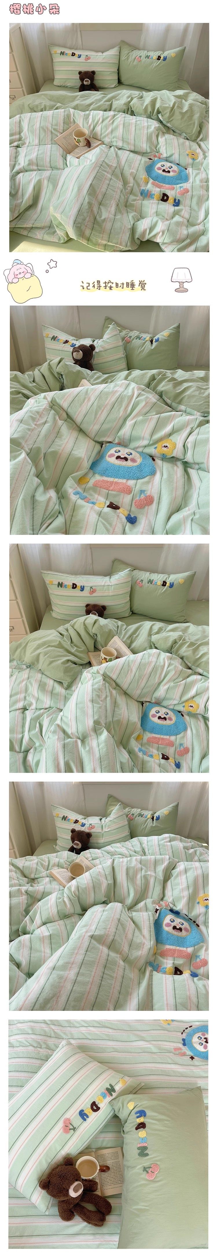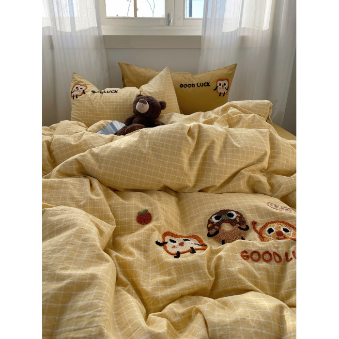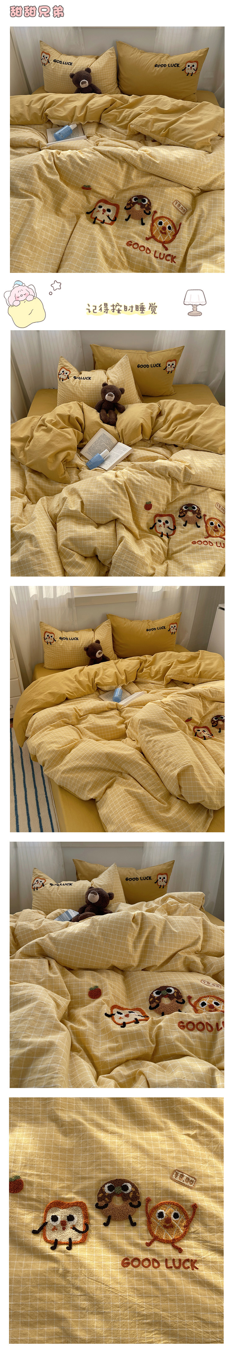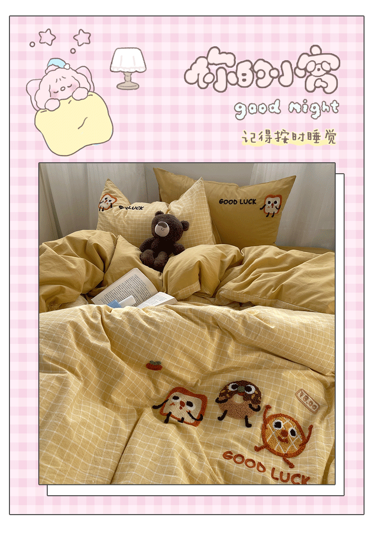奶油ins可愛毛巾綉純棉水洗棉四件套韓系全棉被套學生三件套床單