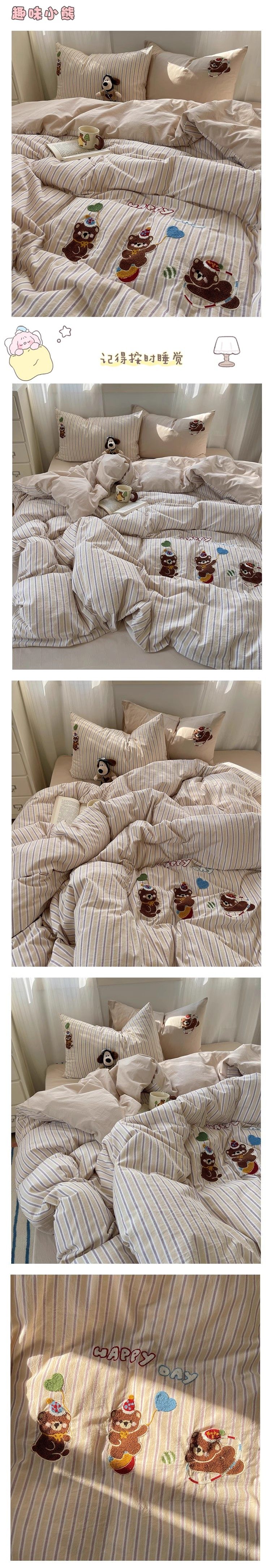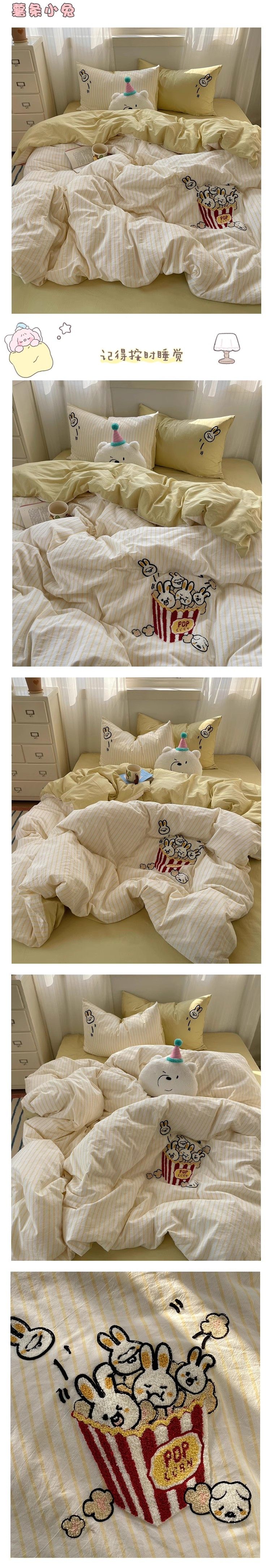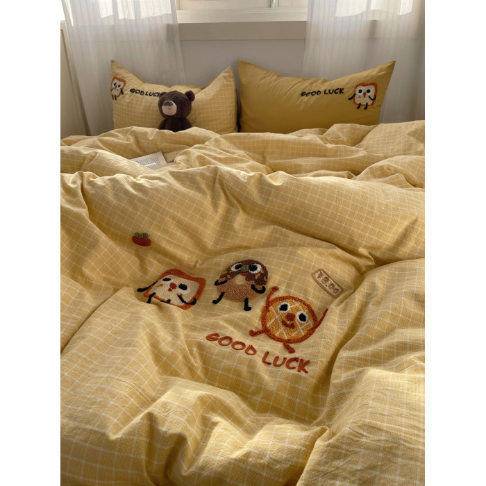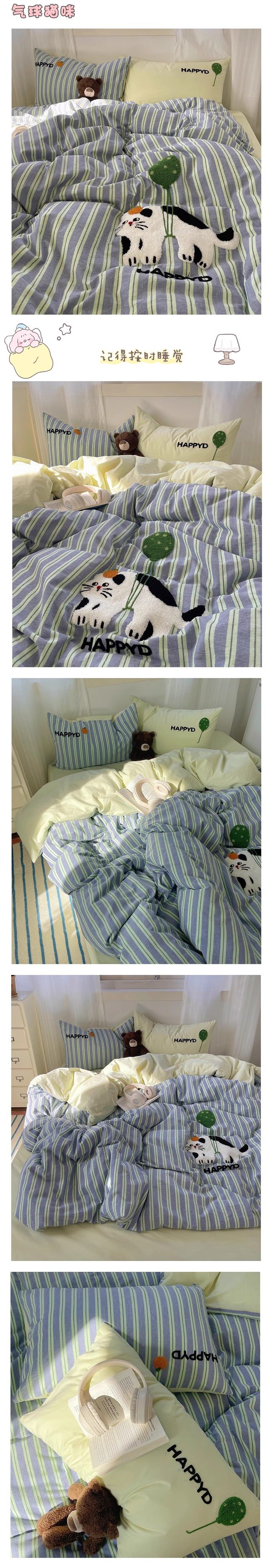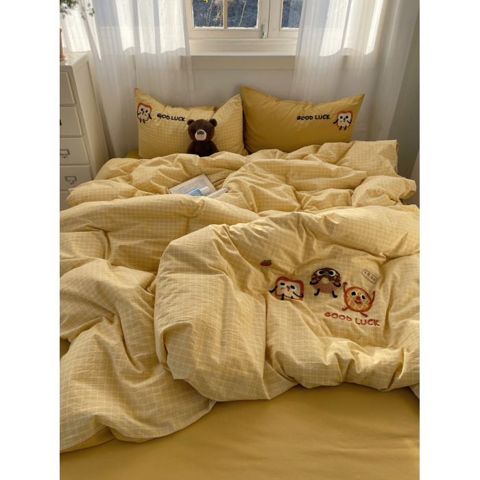 奶油ins可愛毛巾綉純棉水洗棉四件套韓系全棉被套學生三件套床單