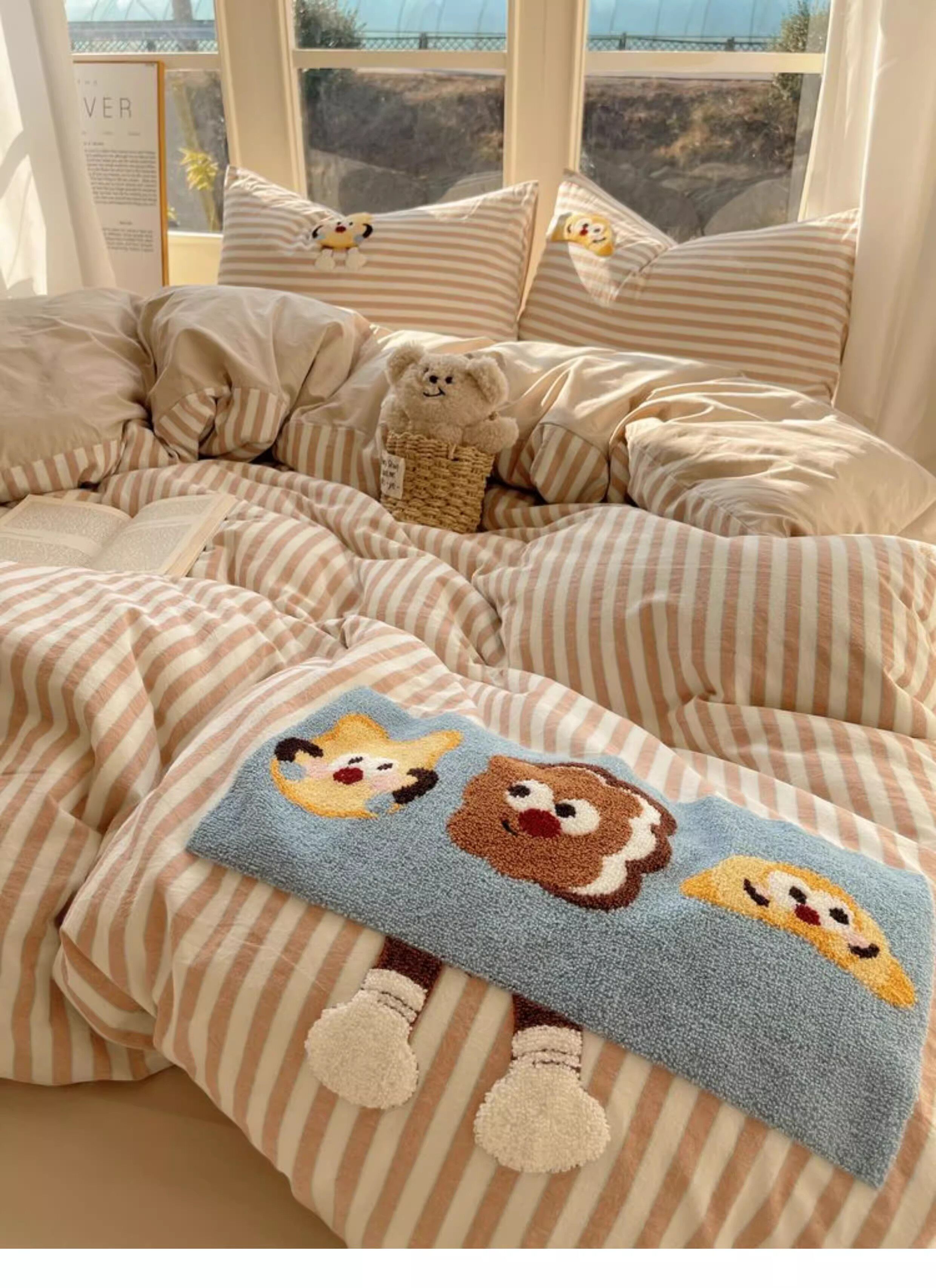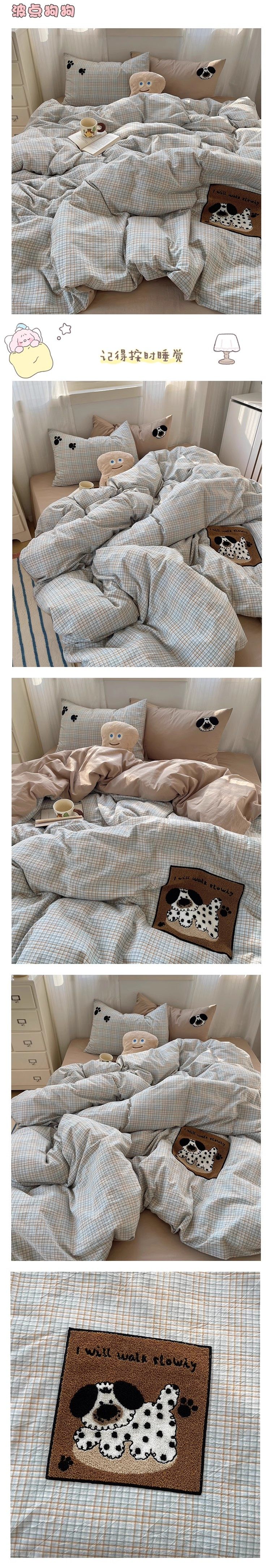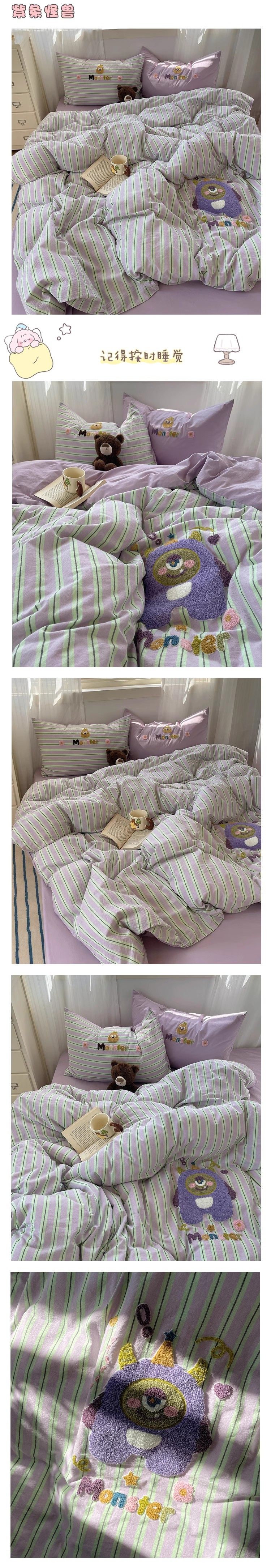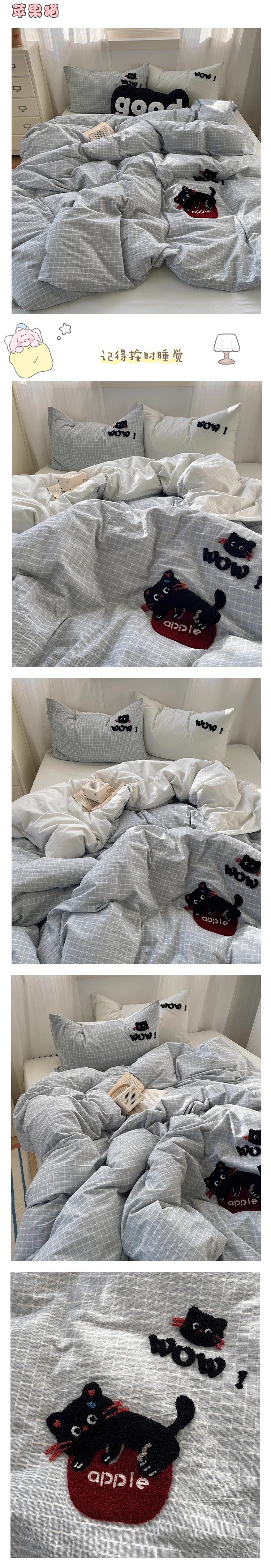 奶油ins可愛毛巾綉純棉水洗棉四件套韓系全棉被套學生三件套床單