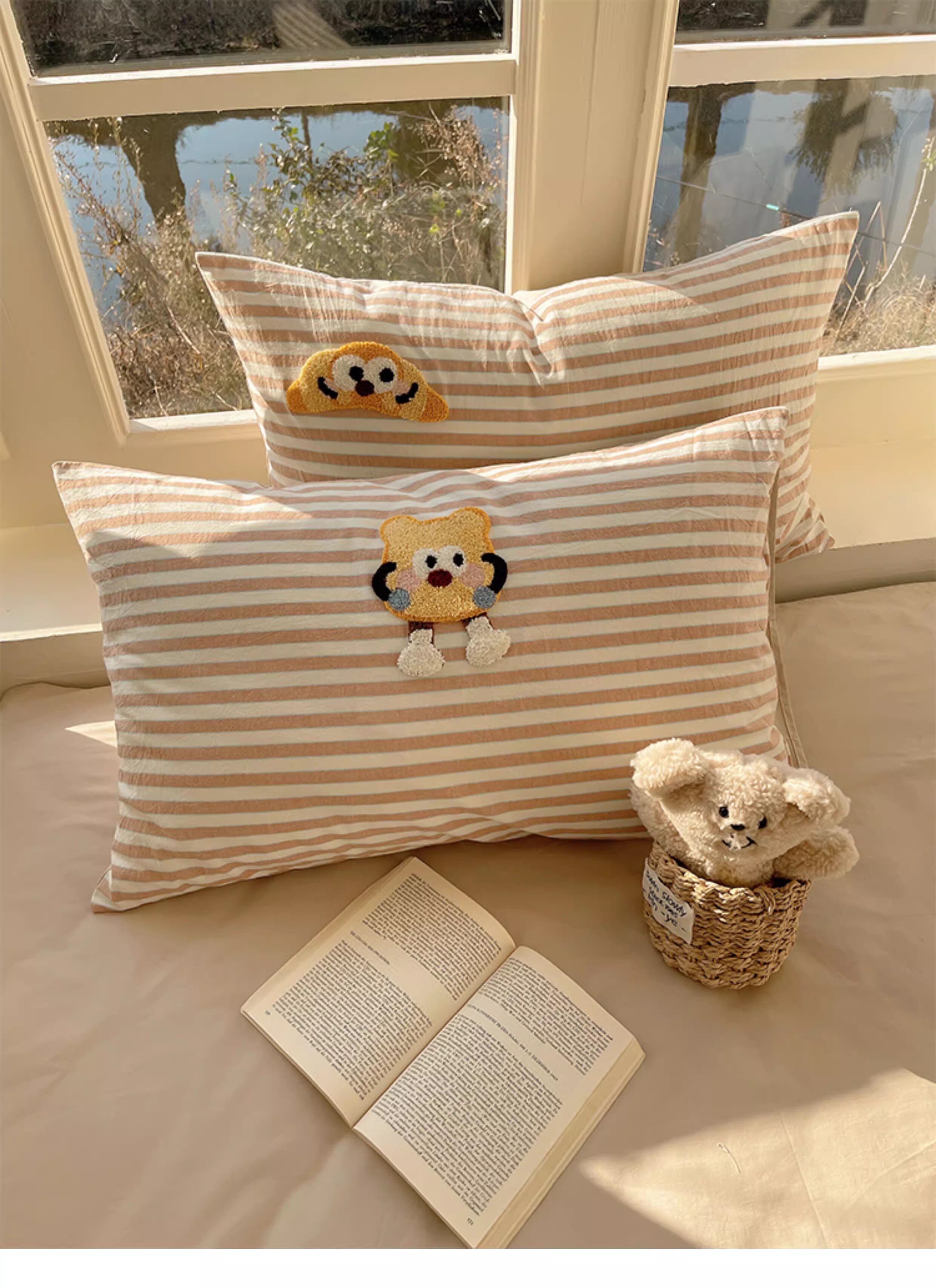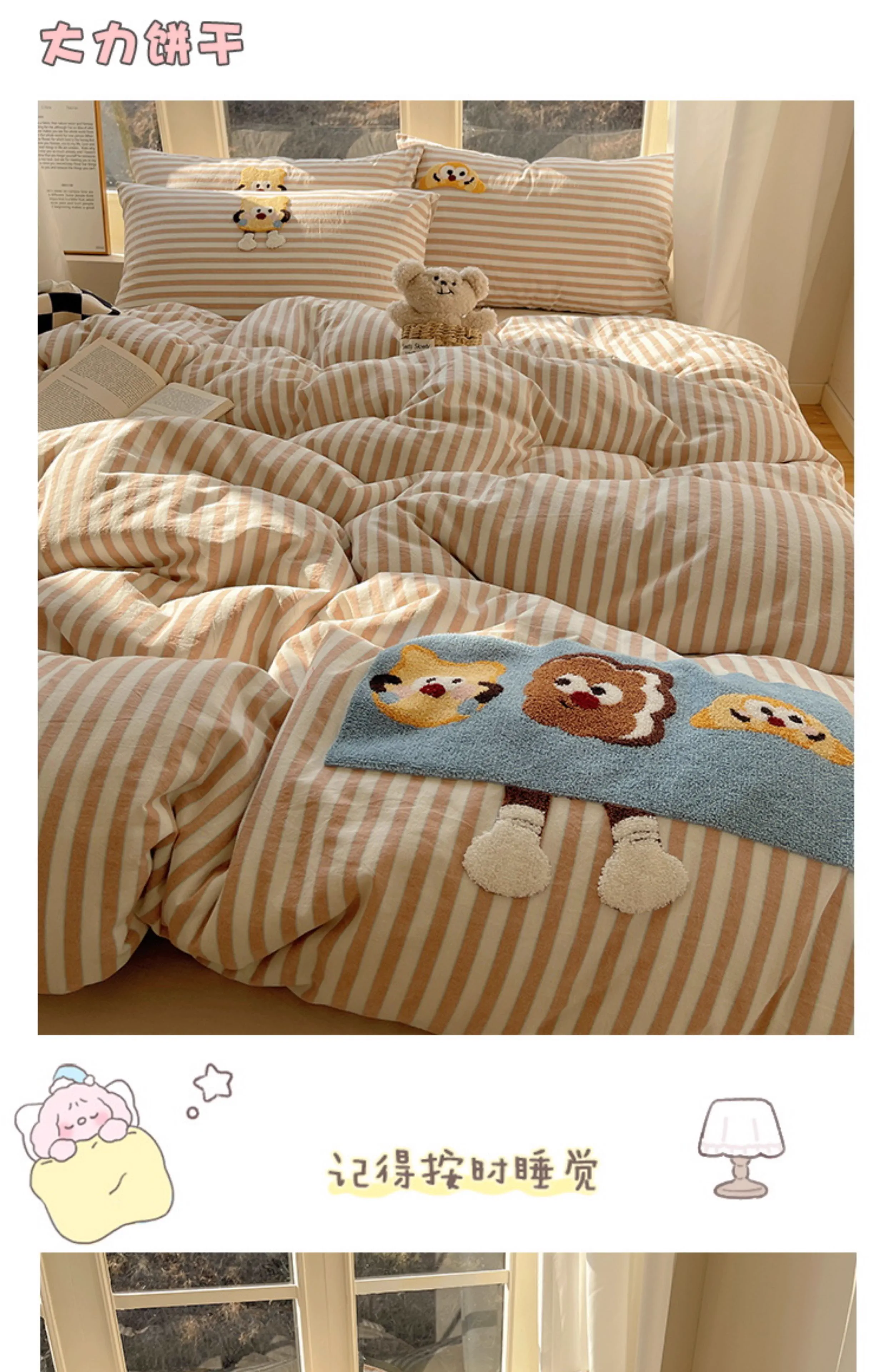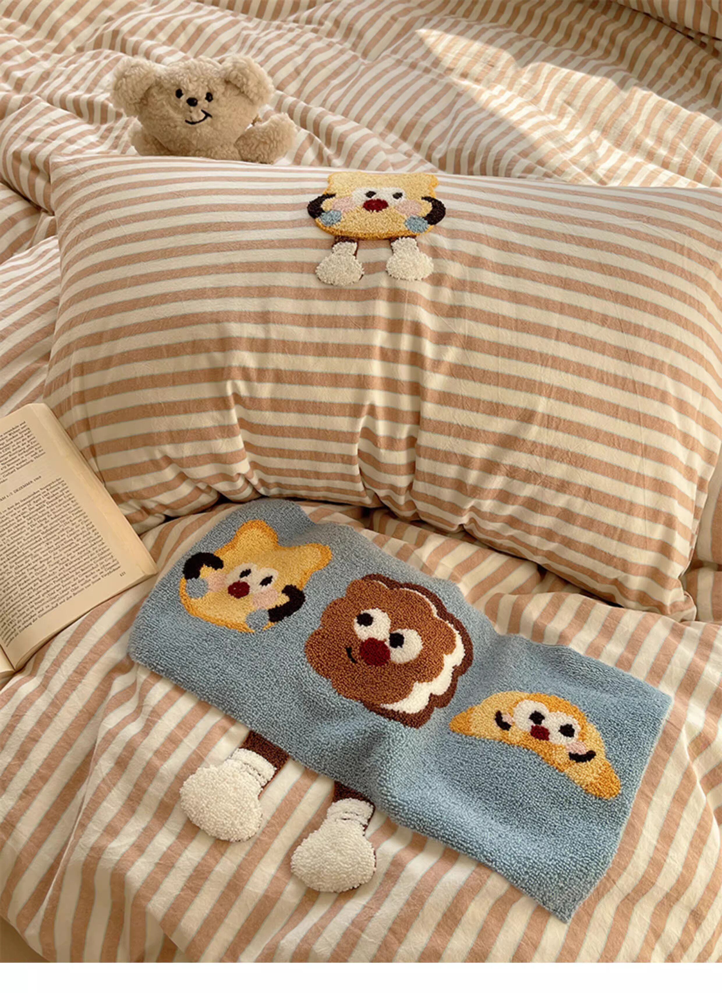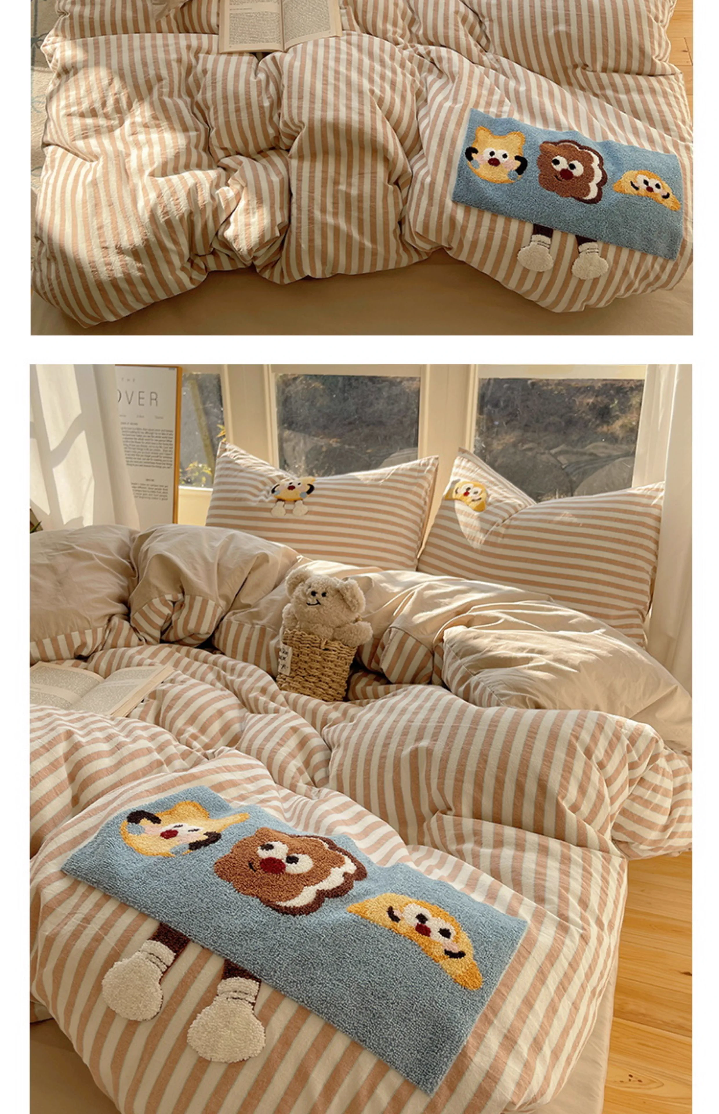 奶油ins可愛毛巾綉純棉水洗棉四件套韓系全棉被套學生三件套床單