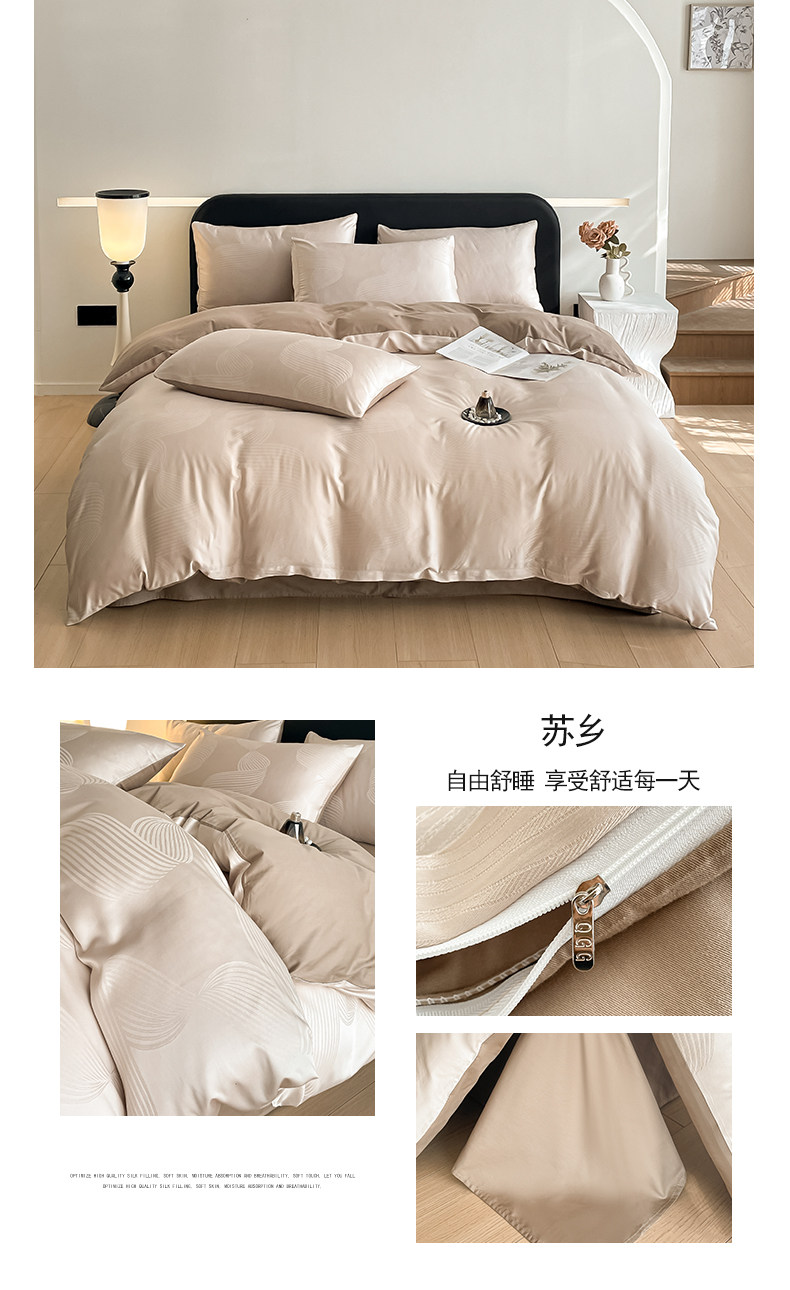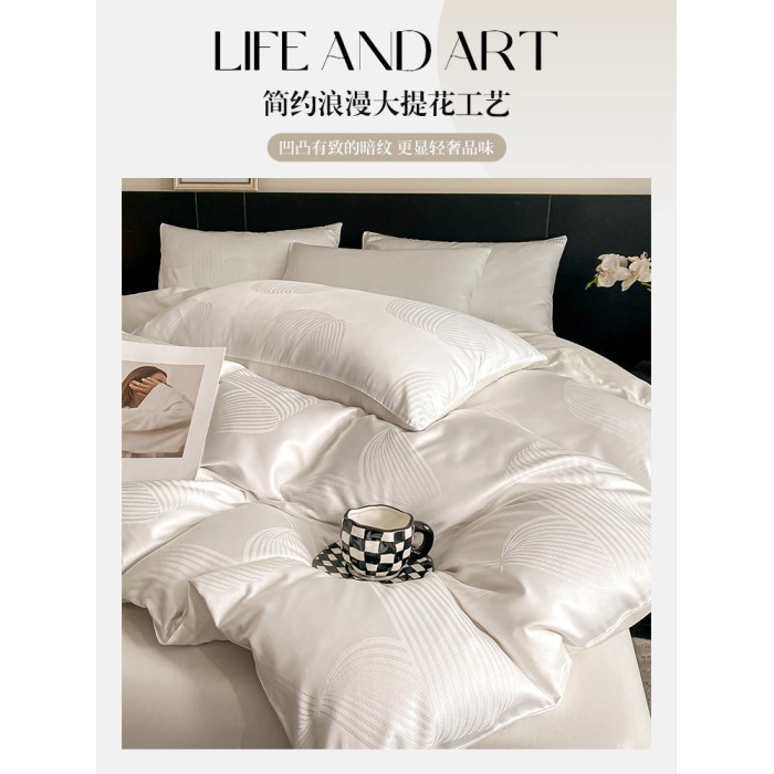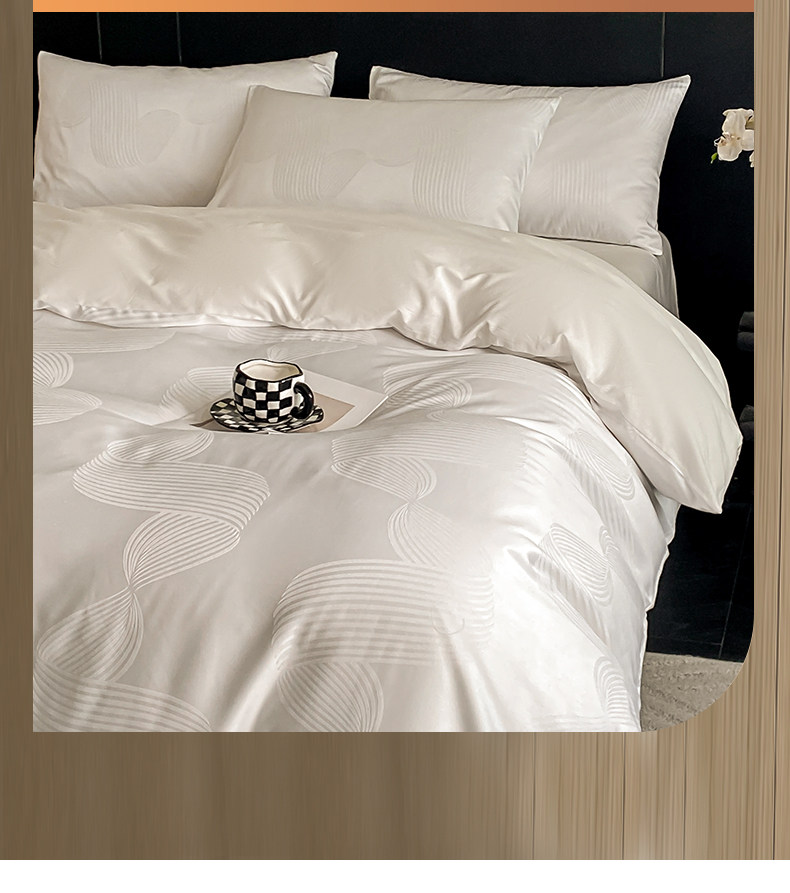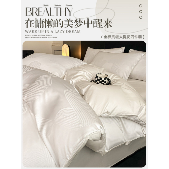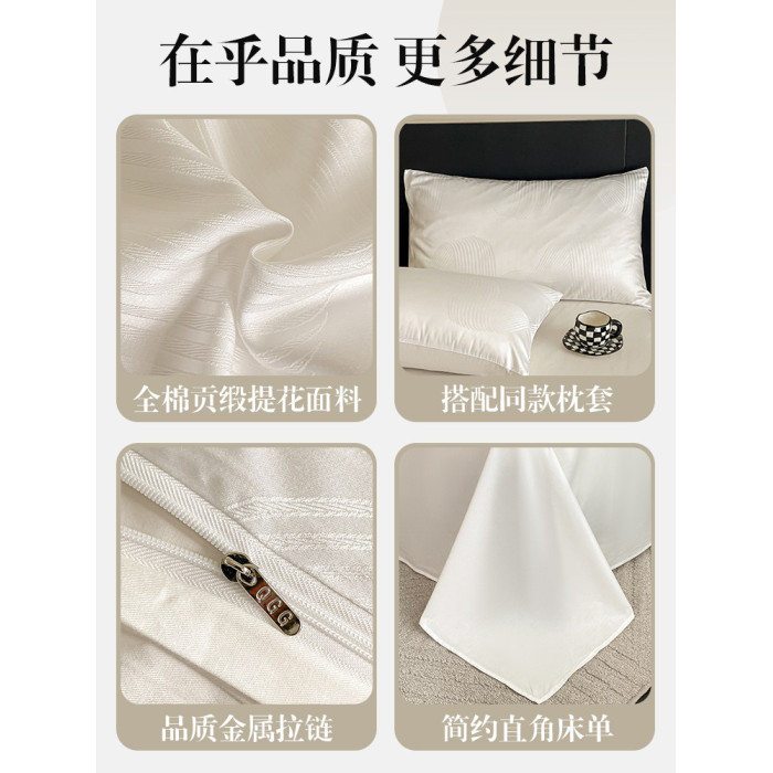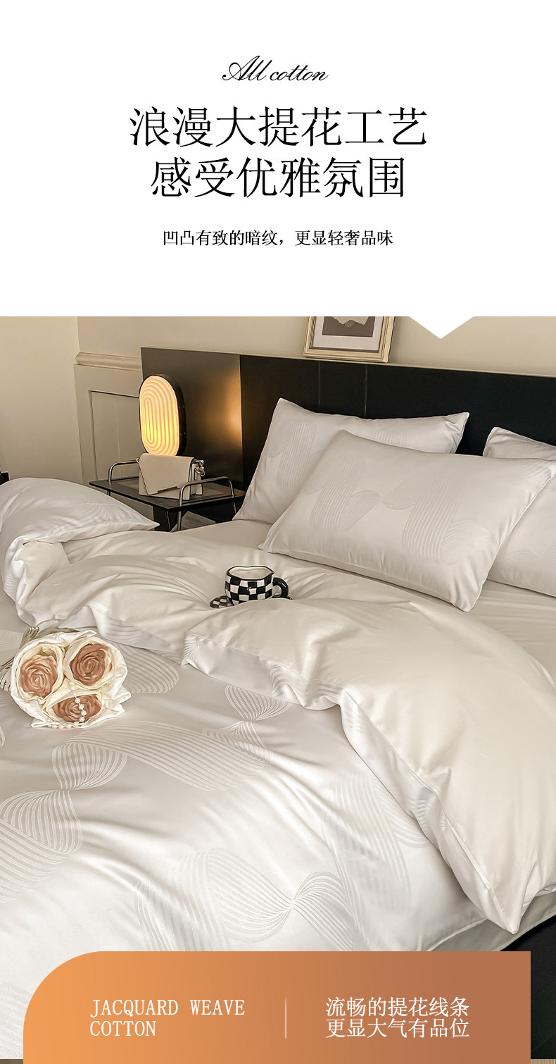 輕奢全棉貢緞提花四件套純棉床上用品絲滑裸睡被套床單三件套床包