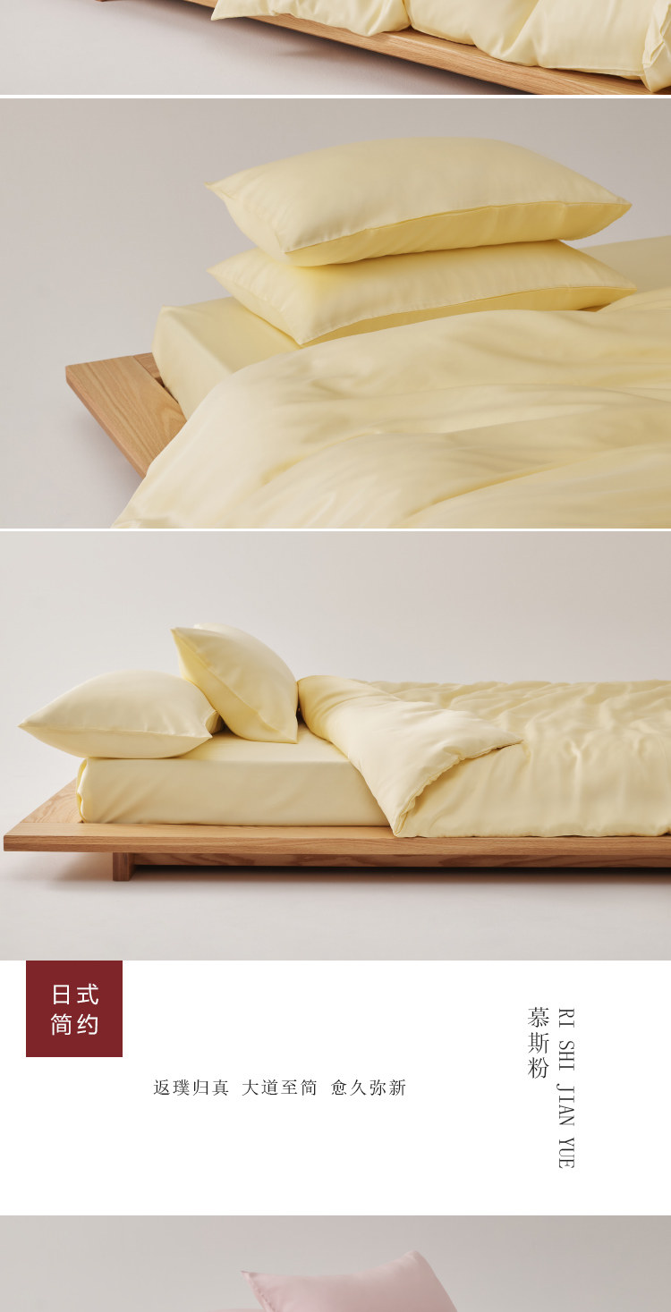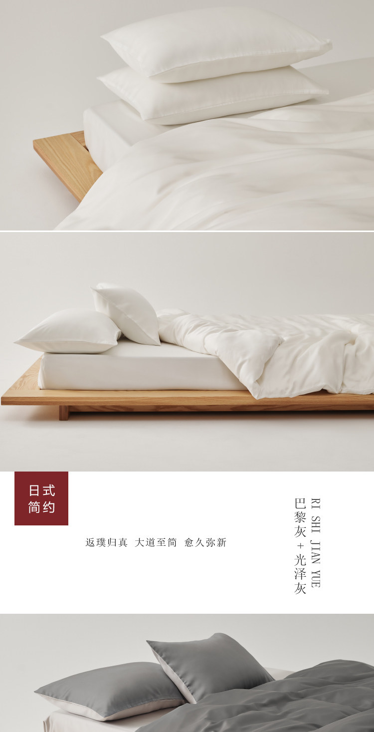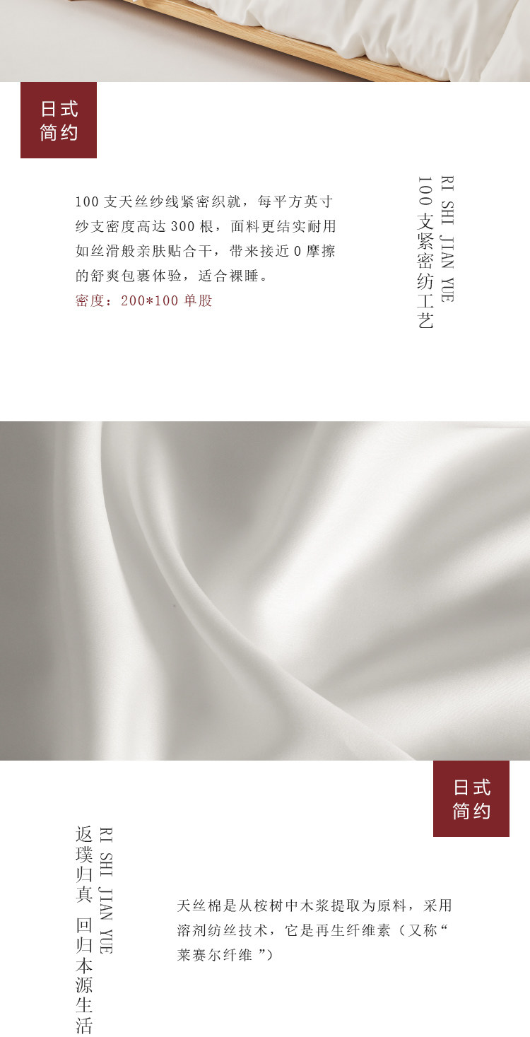 無印日式良品100支蘭精天絲四件套萊賽爾纖維純白色tencel三件套