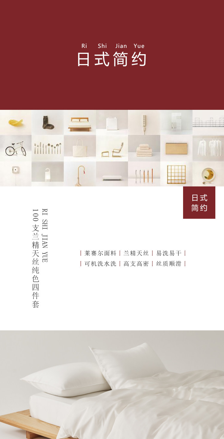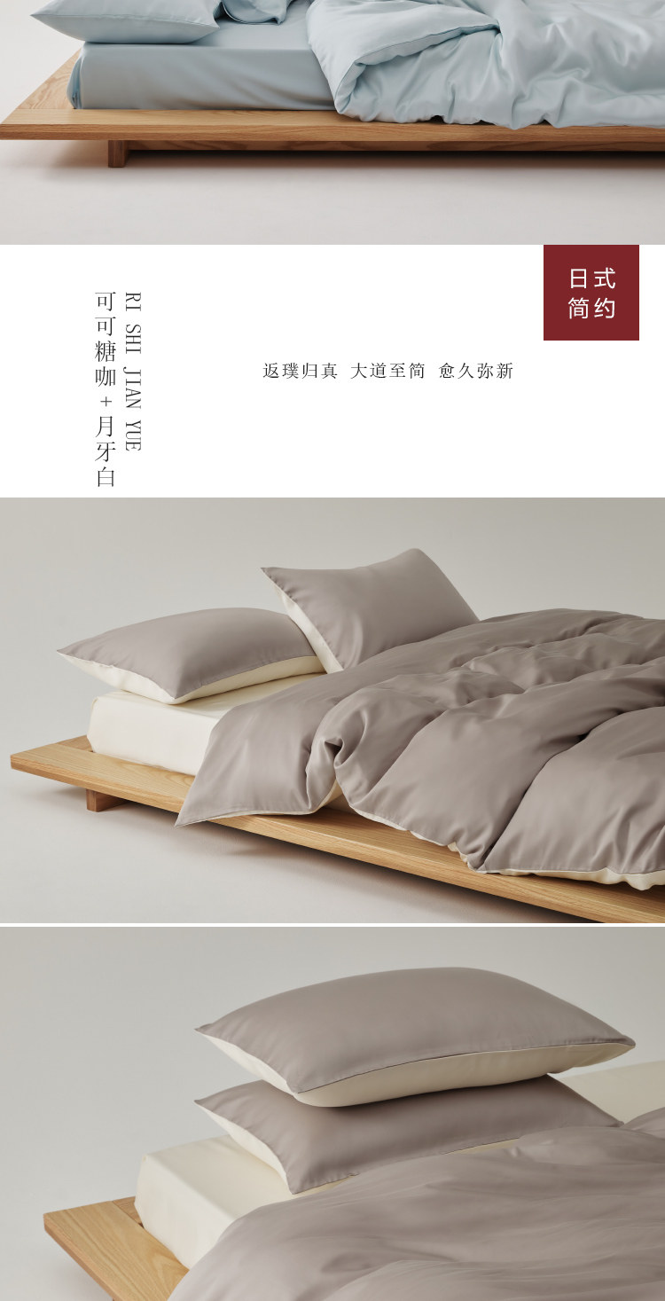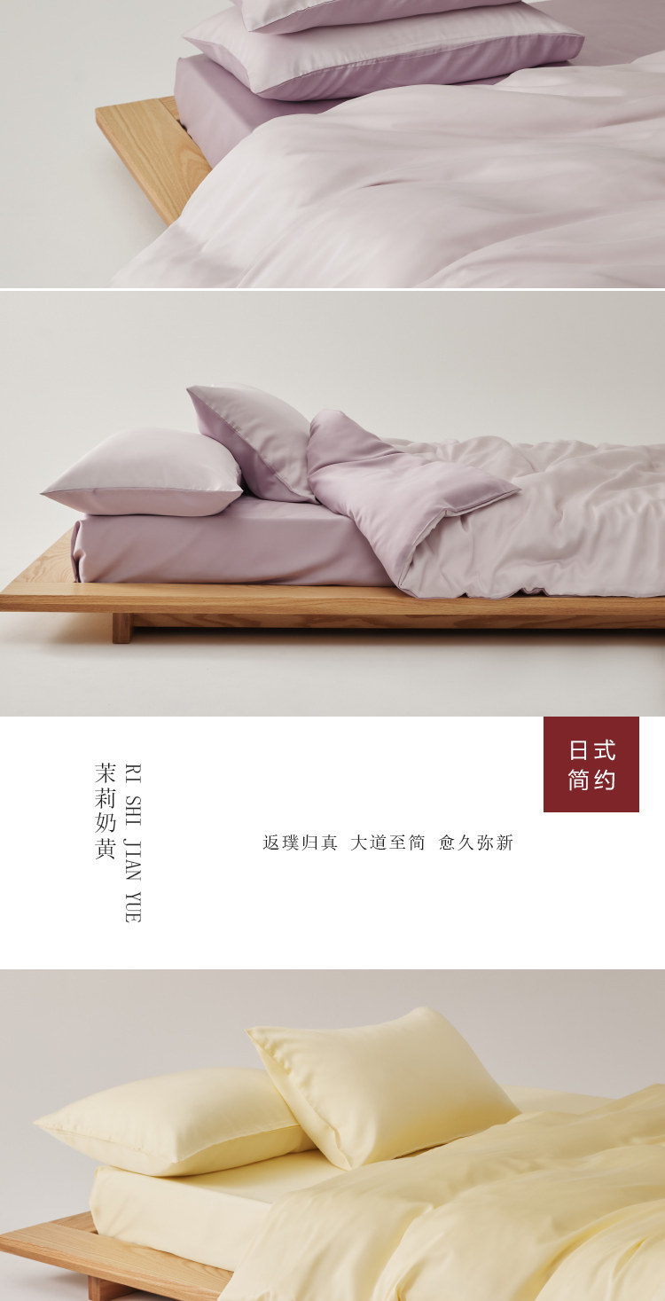 無印日式良品100支蘭精天絲四件套萊賽爾纖維純白色tencel三件套