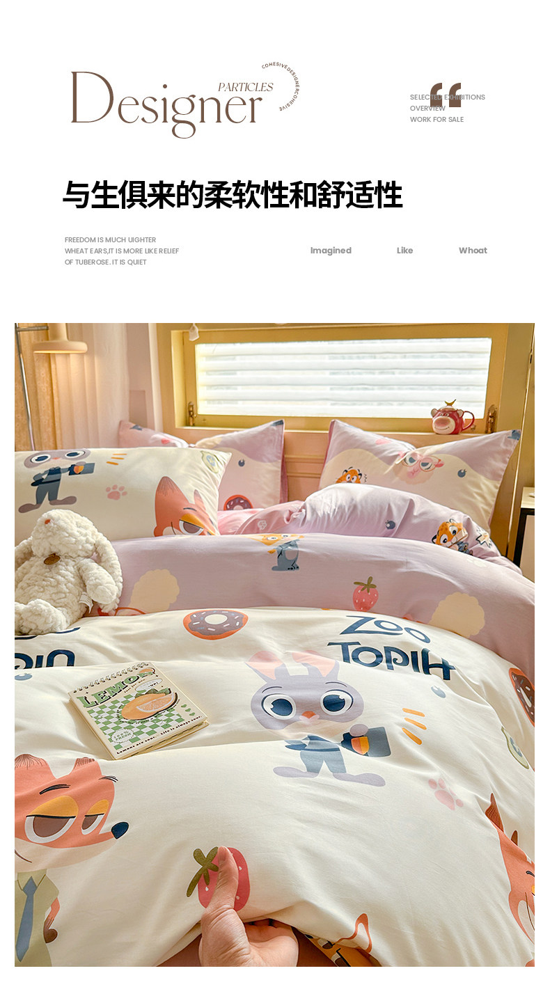 瘋狂動物城床上四件套全棉純棉兒童床品男床單被套床包宿捨三件套