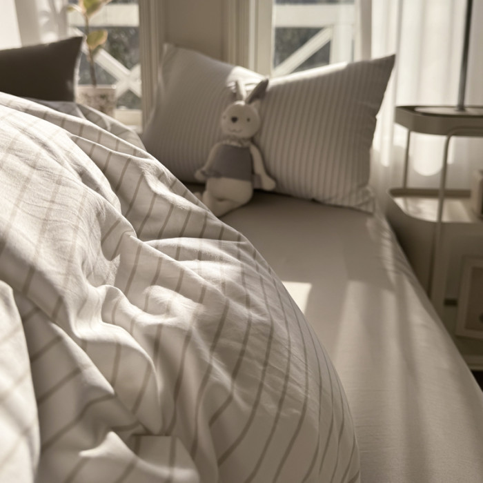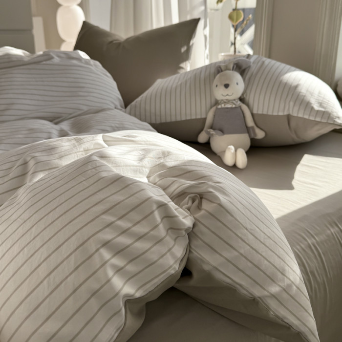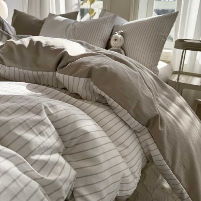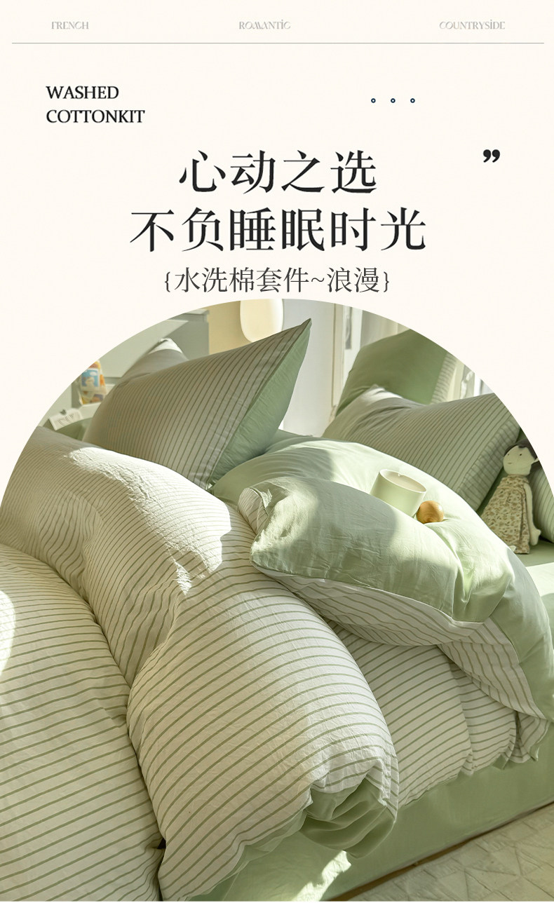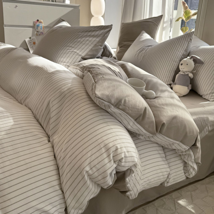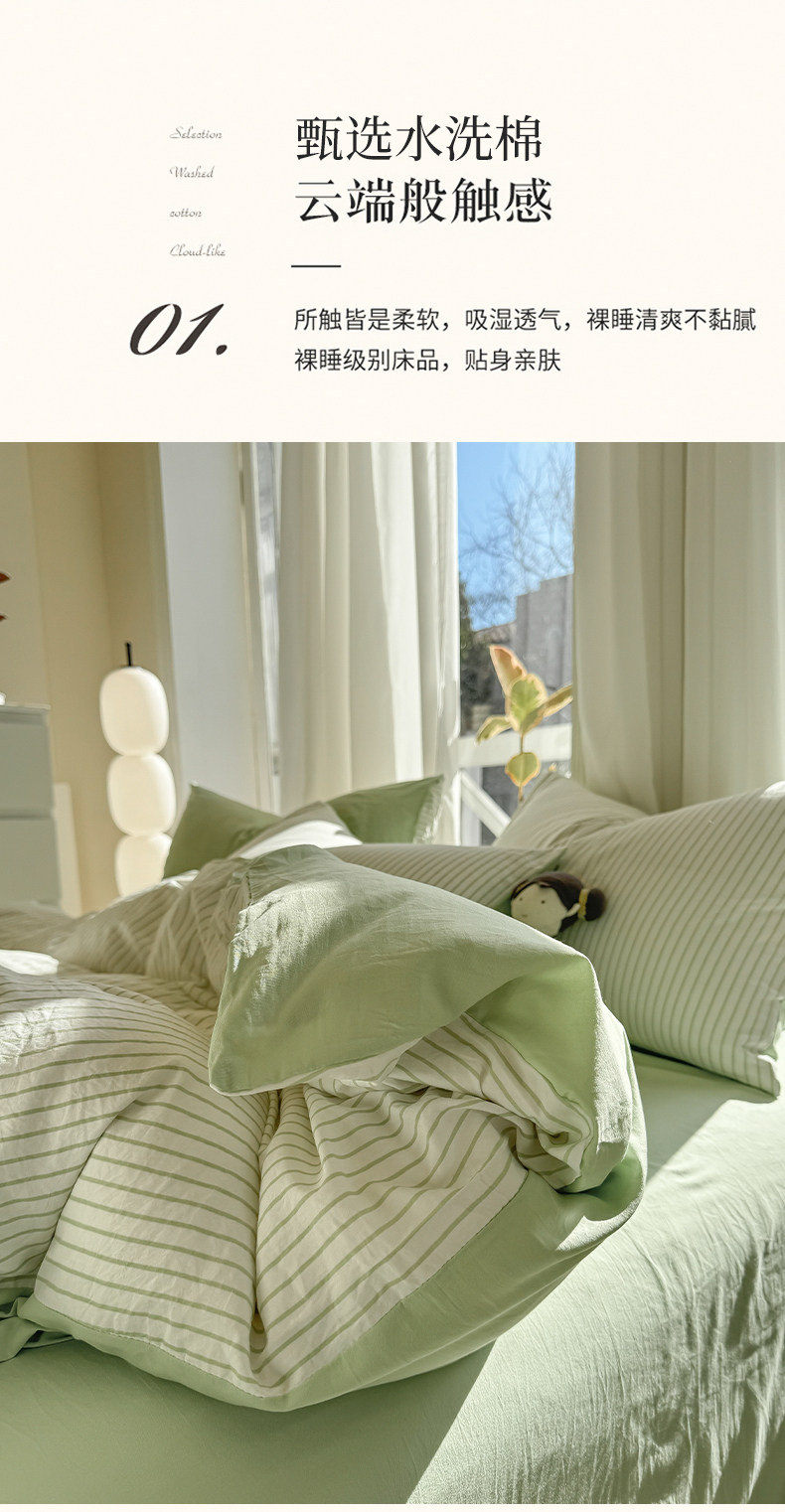 ins風簡約床上四件套非純棉全棉條紋床品學生宿捨床單被套三件套4