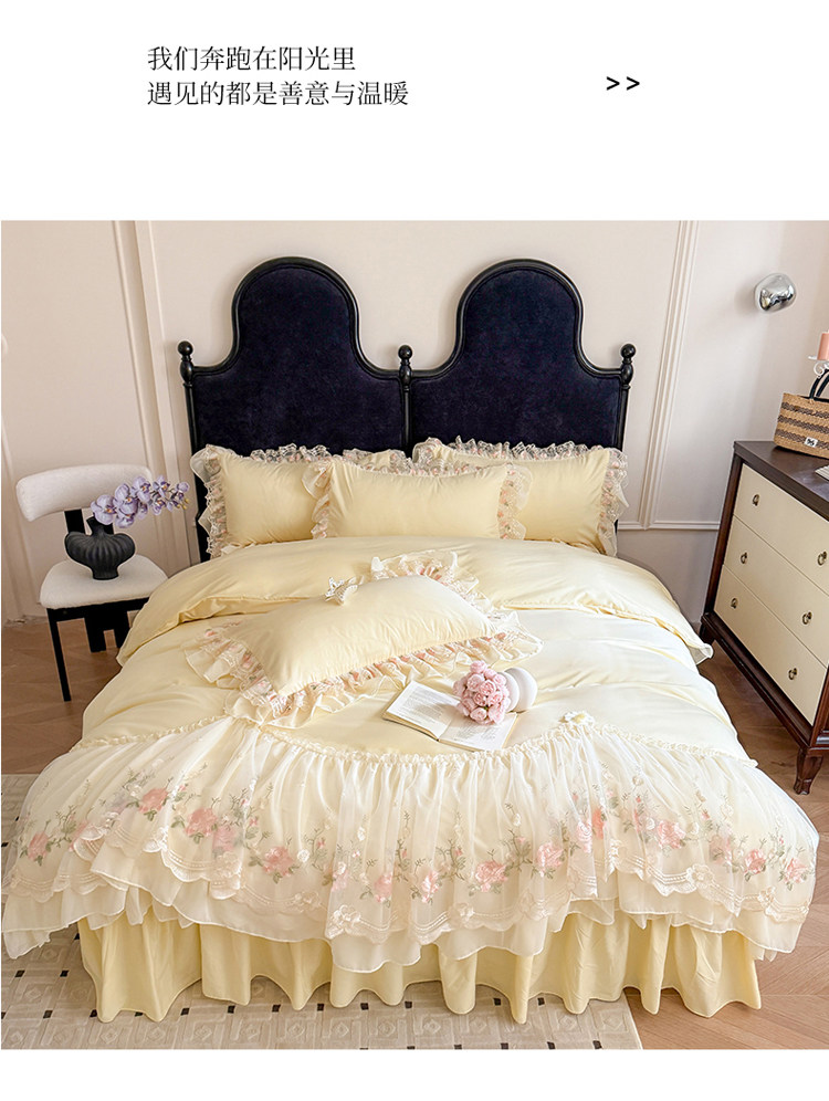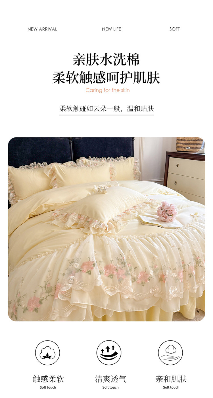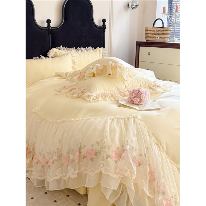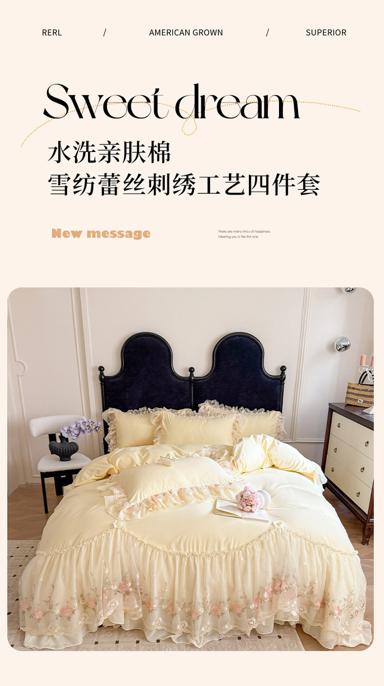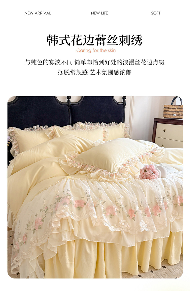 韓式蕾絲花邊公主風床裙四件套全棉純棉2025新款少女裸睡刺綉被套