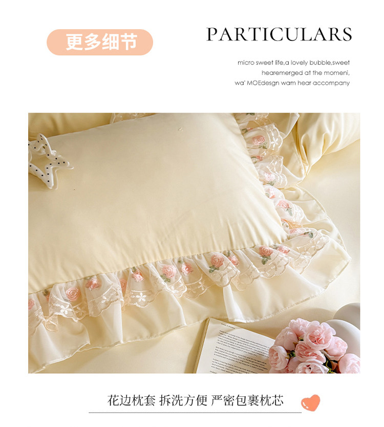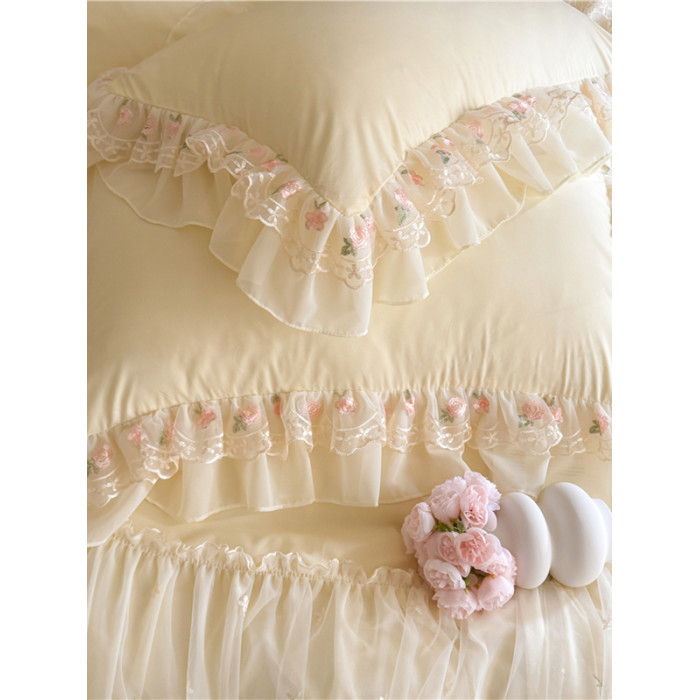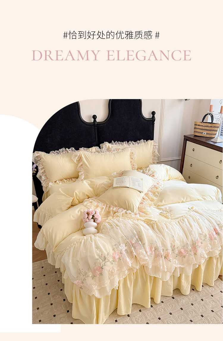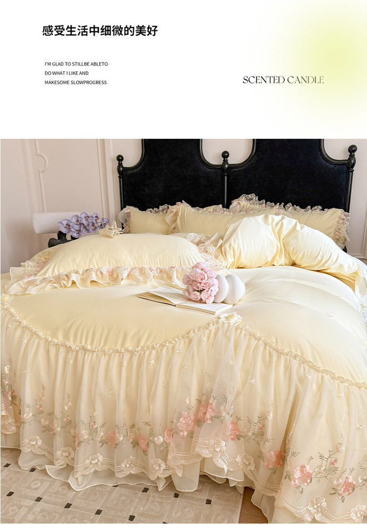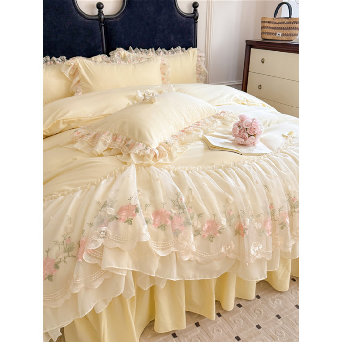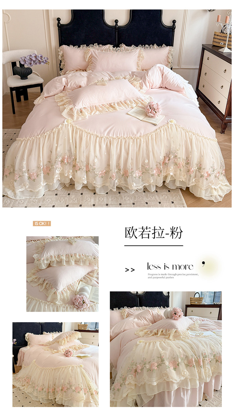 韓式蕾絲花邊公主風床裙四件套全棉純棉2025新款少女裸睡刺綉被套