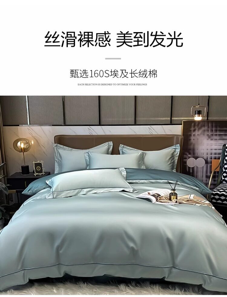 輕奢160支長絨棉四件套全棉100純棉床單被套裸睡春季通用床上用品