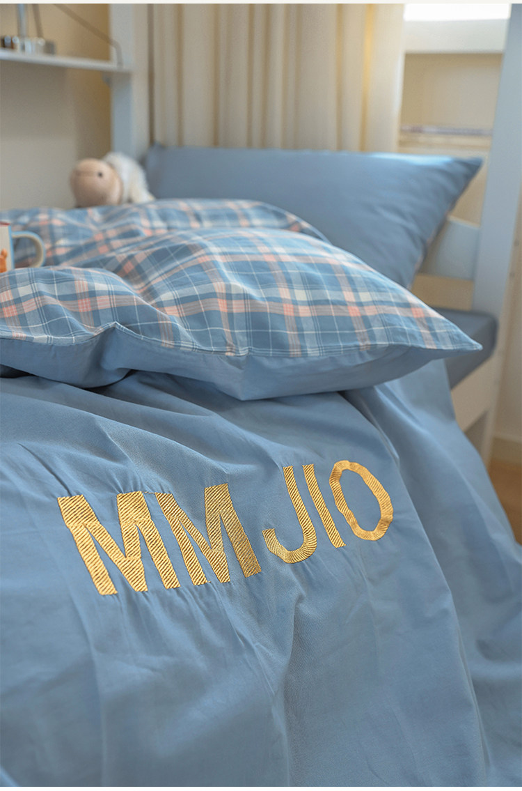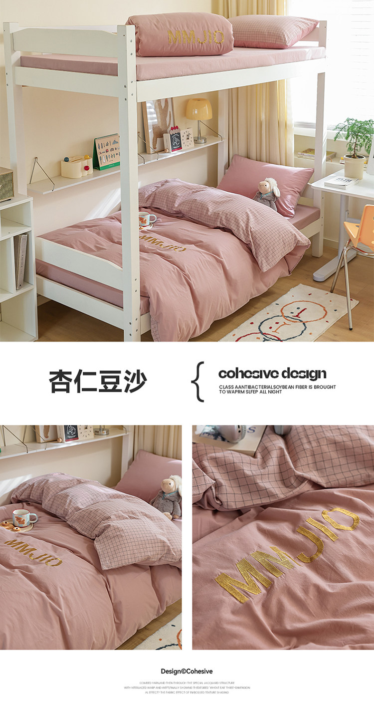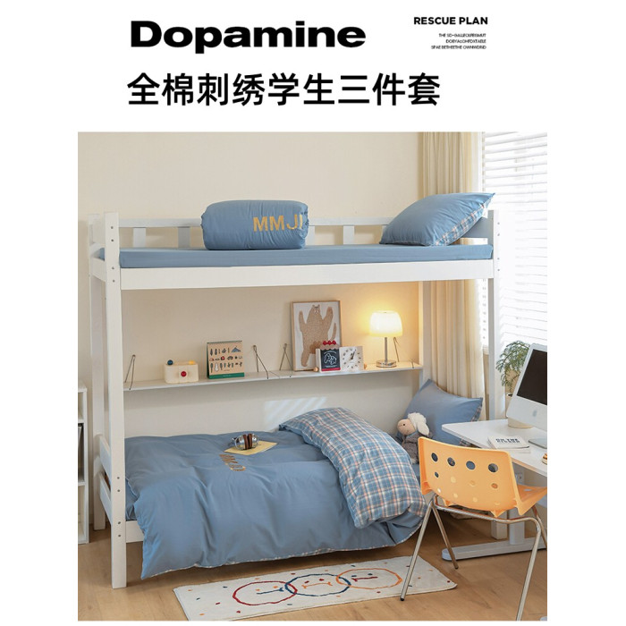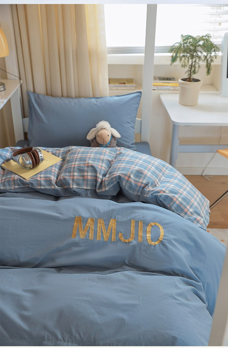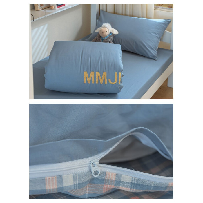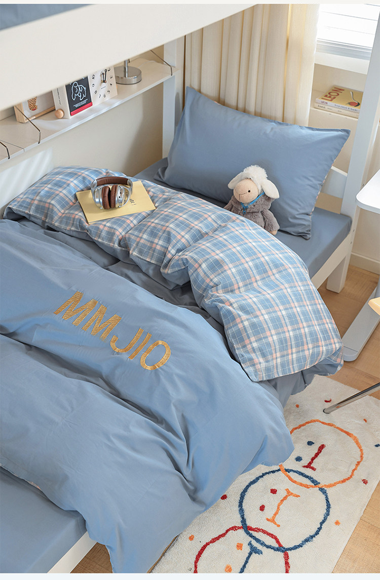 無印良品學生床品宿捨單人床三件套純棉全棉被套純色拼格子四件套