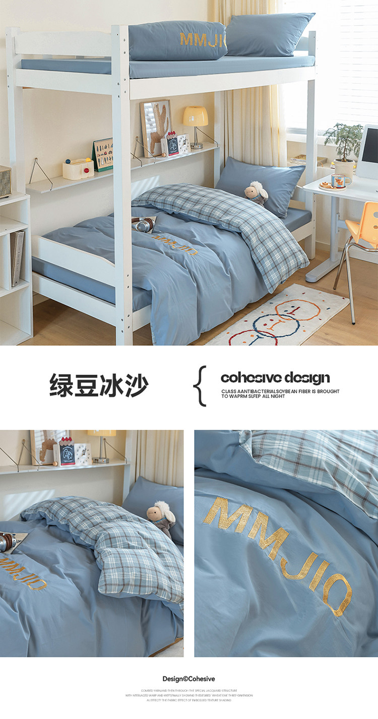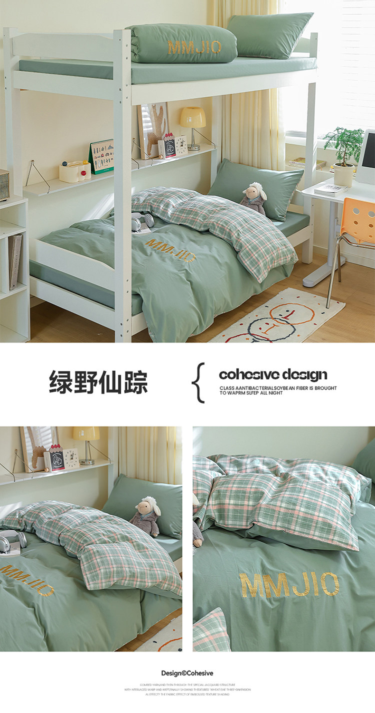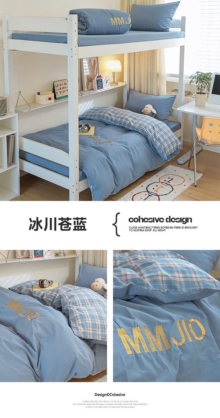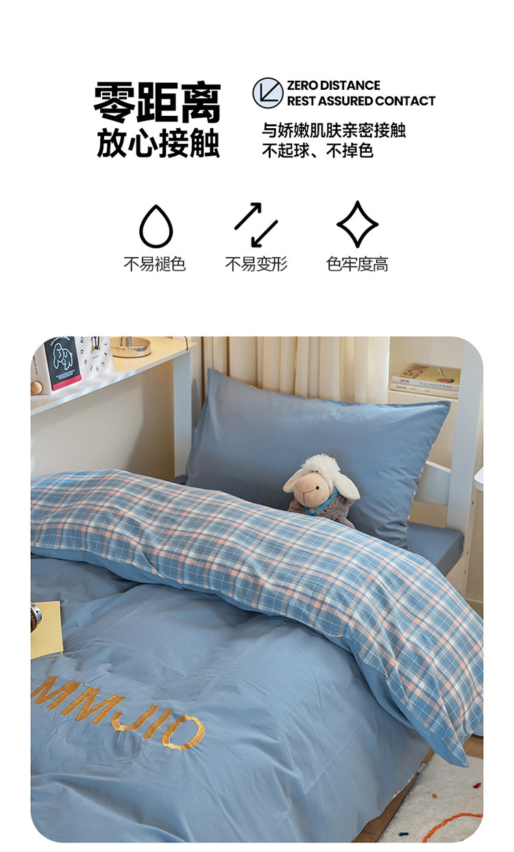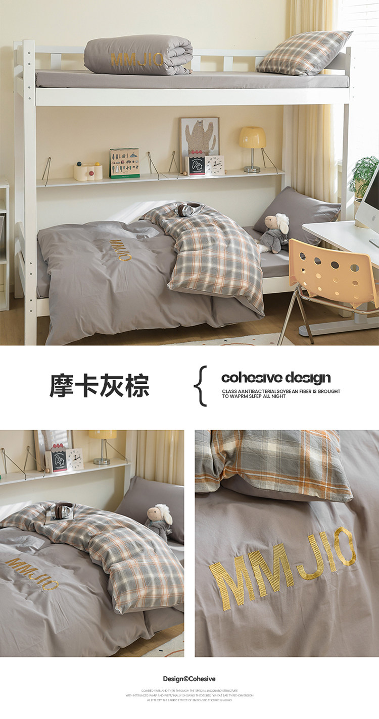 無印良品學生床品宿捨單人床三件套純棉全棉被套純色拼格子四件套